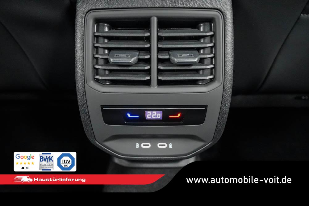 Beifahrersitz höhenverstellbar, Fahrersitz höhenverstellbar, Lederlenkrad, Mittelarmlehne vorne, Sitzbezug Stoff, Sportsitze vorne, Lenkrad höhenverstellbar, Ambiente-Beleuchtung, Beheizbares Lenkrad, Multifunktionslenkrad, Isofix, abgedunkelte Scheiben, 18 Zoll Alufelgen Tempest, Dachreling schwarz, ABS, Alarmanlage, Außenspiegel elektrisch anklappbar, Fensterheber elektrisch, Seitenairbags, Servolenkung, Sitzheizung vorne, ESP, Wegfahrsperre, Zentralverriegelung mit Funk, Beifahrerairbag, Fahrerairbag, Parkpilot hinten, Parkpilot vorne, Reifendruckkontrolle, Digital Cockpit, Anhängekupplung schwenkbar, Tempomat Abstand ACC, Light Assist, LED-Scheinwerfer, LED-Tagfahrlicht, Rückfahrkamera, Elektrische Heckklappe inkl. Virtual Pedal, Kessy, StartStopSystem, Notrufsystem, Klimaautomatik 3-Zonen, Android Auto, Apple Carplay, Freisprecheinrichtung, USB, Bluetooth, Bordcomputer, Navigationssystem, Soundsystem IMMERSIVE by Sennheiser, Full Link, variabler Ladeboden, 3D-Rückleuchten mit Ceremony Light,