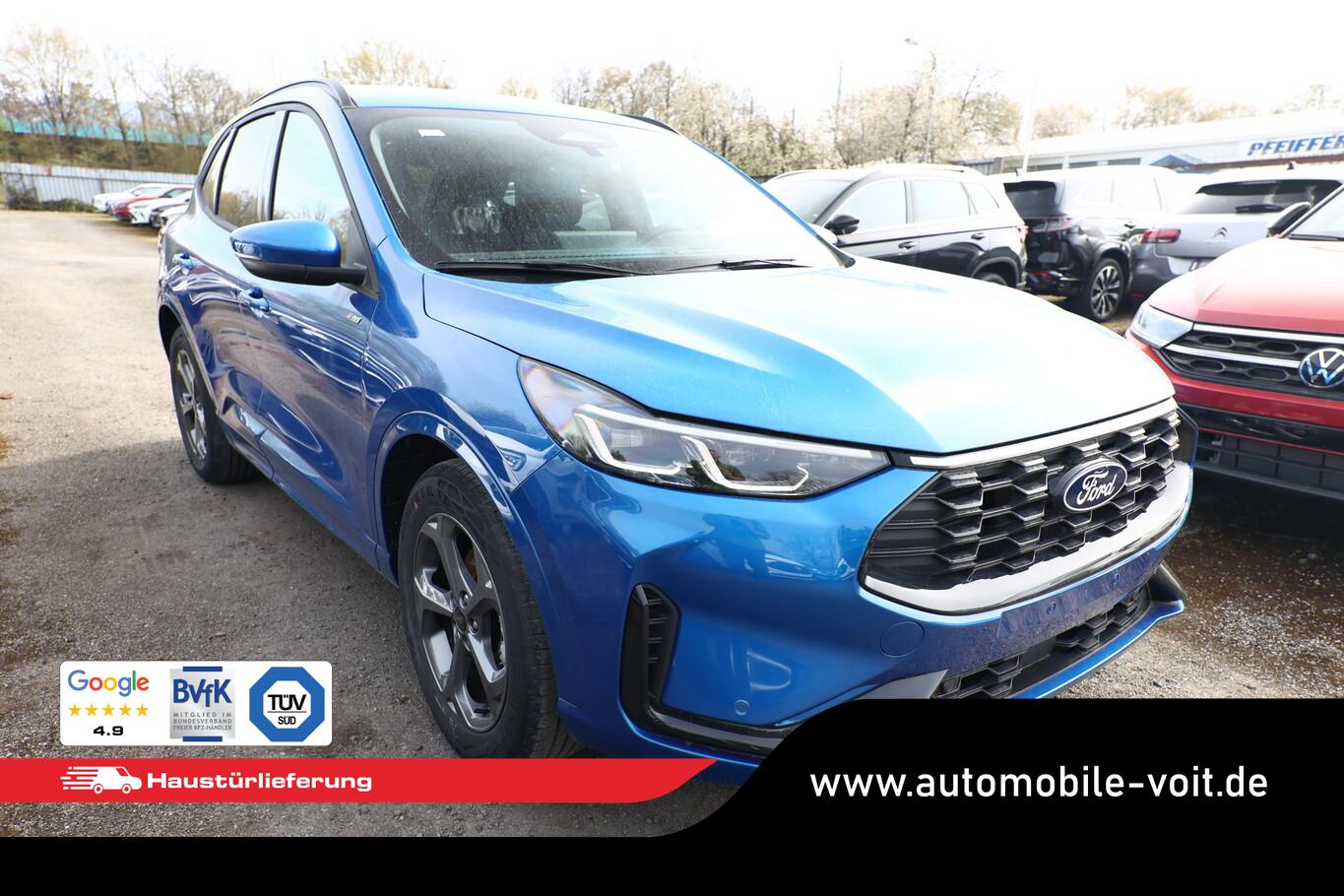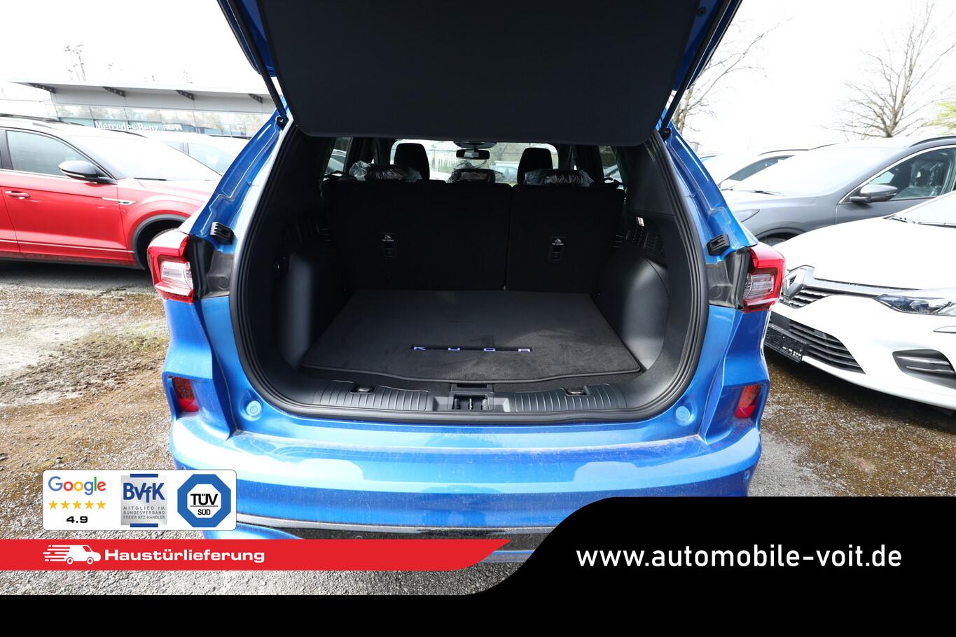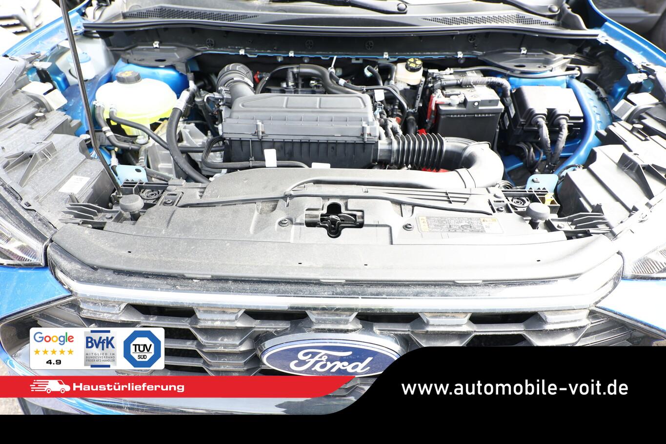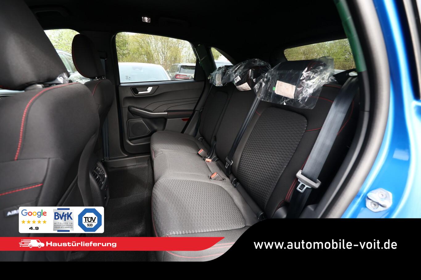 Matrix-LED-Scheinwerfer, Head-up-Display, Winter-Paket (Lenkrad heizbar / Sitzheizung hinten / Frontscheibe heizbar), Verglasung hinten abgedunkelt (Privacy Glass), Reserverad als Notrad, Wendematte Gepäckraum, 4 Verzurrösen, Ablagetaschen an Vordersitzlehnen, Beifahrerairbag deaktivierbar, Fahrassistenz-System: Falschfahrer-Warnfunktion, Fahrassistenz-System: Fernlichtassistent (Scheinwerfer mit Abblendautomatik), Fahrassistenz-System: Müdigkeitserkennungs-Sensor, Fahrassistenz-System: Verkehrsschildassistent, Handschuhfach beleuchtet, Lendenwirbelstütze Sitz vorn links, LM-Felgen 7,5x18, Parkbremse elektrisch, Reifen 225/60 R18, Sitz vorn links verstellbar (4-fach), Touchscreen-Farbdisplay 13,2 Zoll, Body-Styling-Paket (Kühlergrill schwarz / Seitenschweller Wagenfarbe / Stoßfänger Sport-Ausführung), Sitz vorn rechts verstellbar (8-fach) (Lendenwirbelstütze Sitz vorn rechts), Audio-Navigationssystem Ford mit AppLink (6 Lautsprecher / Radioempfang digital (DAB) / Ford SYNC IV mit Navigation / Sprachsteuerung und Bluetooth-Schnittstelle / USB-Anschluss / Audiobedienung am Lenkrad), Fahrassistenz-System: Pre-Collision-System (Fahrassistenz-System: Active City Stop / Fahrassistenz-System: Auffahrwarnsystem), KeyFree-System (Power KeyFree-Startfunktion), Mittelkonsole mit Armlehne (Getränkehalter vorn / Mittelarmlehne vorn mit Staufach und 12V-Anschluß), Geschwindigkeits-Regelanlage (Tempomat) (Intelligenter Geschwindigkeits-Begrenzer), Intelligent Protection System (IPS) (3-Punkt-Sicherheitsgurt hinten / Warnanlage für Sicherheitsgurte hinten / Warnanlage für Sicherheitsgurte vorn / Airbag Fahrer-/Beifahrerseite / Kopf-Schulter-Airbag vorn und hinten / Seitenairbag vorn), Ambiente-Beleuchtung vorn (LED), Dachhimmel Stoff, dunkel, Gepäckraumabdeckung / Rollo, Induktionsladeschale für mobile Endgeräte, Innenspiegel mit Abblendautomatik, Karosserie: 5-türig, Kombiinstrument Digitalanzeige 12,3 Zoll, Lenksäule (Lenkrad) höhen-/längsverstellbar, Motor 1,5 Ltr. - 137 kW EcoBoost KAT, Scheibenrahmen schwarz, Sonnenblende links mit Spiegel (beleuchtet), Sonnenblende rechts mit Spiegel (beleuchtet), Anti-Blockier-System (ABS), Antischlupfregelung (ASR), Antriebsart: Frontantrieb, Elektron. Stabilitäts-Programm (ESP), Getriebe Automatik - Typ: 8F35 (8-Stufen), Klimaautomatik 2-Zonen, Fensterheber elektrisch vorn + hinten mit Komfortschließung, Isofix-Aufnahmen für Kindersitz, Rücksitzlehne geteilt, Rücksitzlehne klappbar, Sitzheizung vorn, Zentralverriegelung mit Fernbedienung, Bordcomputer, Dachreling schwarz, Rückfahrkamera, Lenkrad (Sport/Leder, ST), Servolenkung elektrisch, Außenspiegel elektr. anklappbar, Außenspiegel elektr. verstell- und heizbar, Scheibenwischer mit Regensensor, Scheinwerfer-Assistent mit Tag-/Nachtsensor, Parkpilotsystem vorn und hinten, Fahrassistenz-System: Spurhalteassistent, Reifendruck-Kontrollsystem, Start/Stop-Anlage