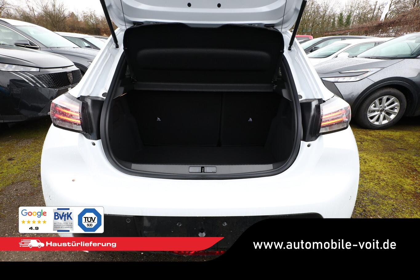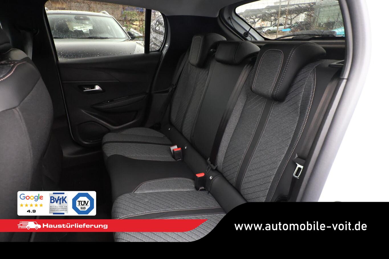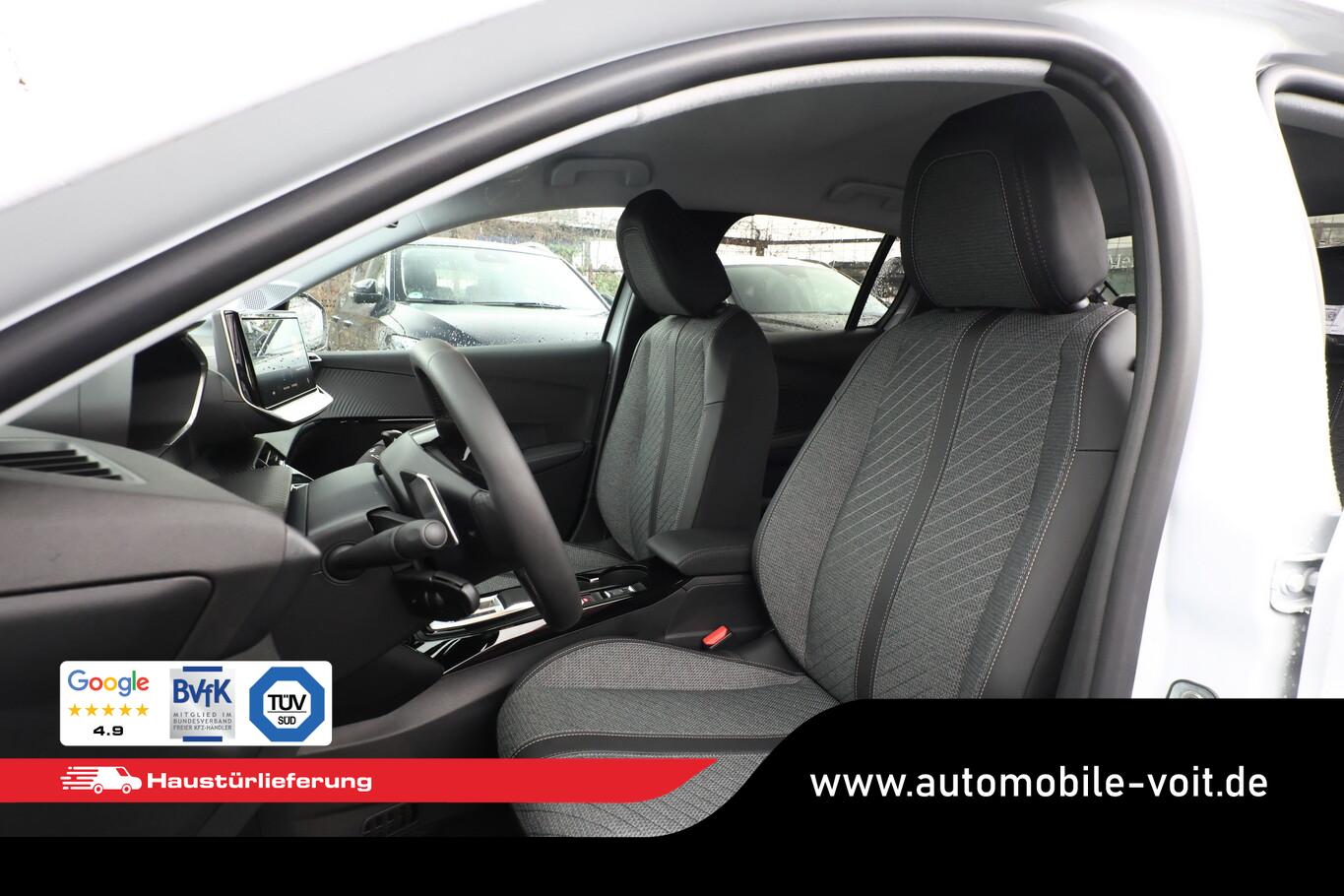 Sicht & Navigations-Paket (Multifunktionsanzeige mit HD Touchscreen-Farbdisplay 10 Zoll / Navigationssystem i-Connect Advanced / USB-Anschlüsse (Typ C und Typ A) / USB-Schnittstelle / Rückfahrkamera mit 360° Umgebungsansicht / Peugeot Connect-Box / SOS-Taste (Notruf für Lokalisierung Fahrzeug) / Fahrassistenz-System: Totwinkel-Assistent (SAM)), Fahrassistenz-System: Spurassistent, Freisprecheinrichtung Bluetooth, Kombiinstrument digital (10"), Leseleuchten vorn, LM-Felgen 16", Reifen 195/55 R16, Schadstoffarm nach Abgasnorm Euro 6e (EU6 EA), Smartphone-Schnittstelle (Apple CarPlay & Android Auto), Fensterheber elektrisch hinten, sequentiell, mit Einklemmschutz (Fensterheber elektrisch vorn / Fensterheber elektrisch vorn links), Radioempfang digital (DAB+) (Radioempfang digital), Sitzbezug / Polsterung: Stoff/Kunstleder (Innenausstattung: Ziernähte farbig), Zentralverriegelung mit Fernbedienung (Fernbedienung für Zentralverriegelung), Außenspiegel elektr. verstell- und heizbar, beide (Außenspiegel elektr. verstell- und heizbar, links / Außenspiegel elektr. verstell- und heizbar, rechts), Außenspiegel mit Abdeckkappen schwarz, Elektr. Bremskraftverteilung, Frontscheibe geräuschdämmend, Innenraumfilter: Staub- und Pollenfilter, Innenspiegel mit Abblendautomatik, Karosserie: 5-türig, Kartentasche an Vordersitze, Mild-Hybrid 81 kW (Motor 1,2 Ltr. - 74 kW), Otto-Partikelfilter (GPF), Parkbremse elektrisch, Reifen-Reparaturkit, Sitz vorn links höhenverstellbar, Türgriffe außen Wagenfarbe, Warnanlage für Sicherheitsgurte, Anti-Blockier-System (ABS), Fahrassistenz-System: Aktiver Notbrems-Assistent (Active Safety Brake), Antischlupfregelung (ASR), Elektron. Stabilitäts-Programm (ESP, Bosch), Getriebe Automatik - Doppelkupplungsgetriebe (6-Stufen, Hybrid), Klimaautomatik, Airbag Beifahrerseite abschaltbar, Airbag Fahrer-/Beifahrerseite, Isofix-Aufnahmen für Kindersitz, Mittelarmlehne vorn, Rücksitzlehne geteilt/klappbar, Seitenairbag vorn, Seitenscheiben hinten und Heckscheibe dunkel getönt, Bordcomputer, Fahrmodusschalter, Fahrassistenz-System: Berganfahrhilfe, Fahrassistenz-System: Verkehrszeichenerkennung, Geschwindigkeits-Regelanlage (Tempomat) inkl. Geschwindigkeits-Begrenzeranlage, Lenkrad (Leder), Lenkrad mit Multifunktion, Servolenkung elektrisch, Außenspiegel elektr. anklappbar, Blinkleuchte in Außenspiegel integriert, Einschaltautomatik für Fahrlicht, Scheibenwischer mit Regensensor, Scheinwerfer Eco-LED, Tagfahrlicht LED, Einparkhilfe vorn und hinten, Fahrassistenz-System: Müdigkeitserkennungs-Sensor, Reifendruck-Kontrollsystem