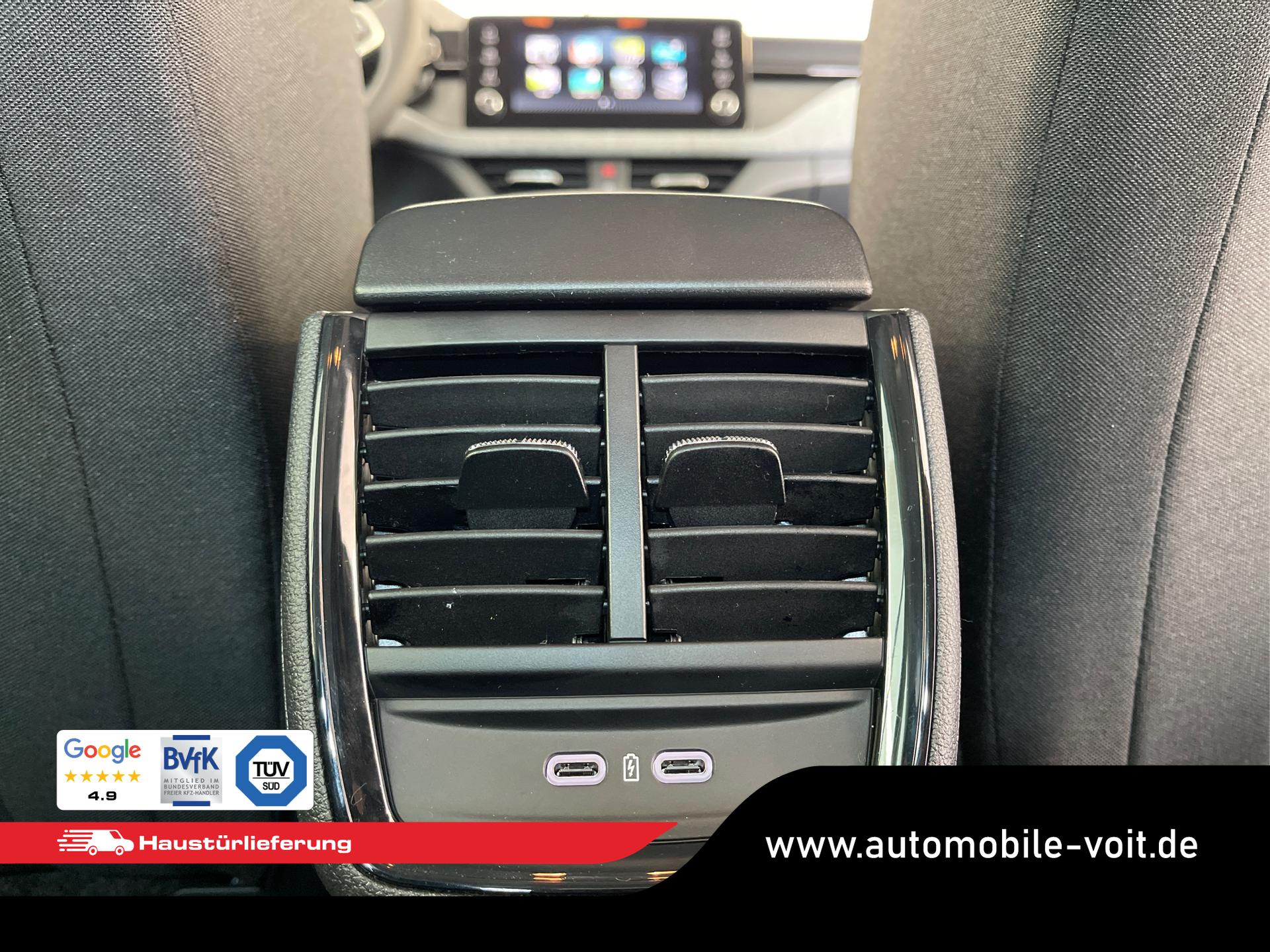 • Front Assist inkl. City-Notbremsfunktion, Mittelarmlehne vorn mit Jumbobox, Scheibenbremsen, ESP, ABS, ASR, Nebelscheinwerfer, Kopfstütze, Heckscheiben Wisch-Waschanlage, Lichtsensor, Airbag für Fahrer und Beifahrer, Seitenairbag vorn mit Kopfairbag, Beifahrerairbag-Deaktivierung, Freisprecheinrichtung Bluetooth, Klimaautomatik 2-Zonen-Climatronic, Geschwindigkeitsregelanlage inkl. Geschwindigkeitsbegrenzung, Lendenwirbelstütze für die Vordersitzlehnen, Fensterheber vorn und hinten elektrisch, Brillenfach, Tire-Mobility-Set, Wireless App-Connect, USB-C Schnittstelle, Waschwasserstandanzeige, Start-Stopp-Anlage, Rücksitzlehne geteilt umklappbar, Scheibenwischer-Intervallschaltung, Reifendruckkontrolle, 8 Lautsprecher, Außenspiegelgehäuse und Türgriffe in Wagenfarbe, Außenspiegel elektrisch einstell- und beheizbar, Notrufsystem eCall, LED-Scheinwerfer inkl. Tagfahrlicht, Coming/Leaving Home Funktion, 12 Volt Steckdose, Radio "Infotainment" (Farbdisplay, Touchscreen), Virtual Cockpit inkl. Bordcomputer, Multifunktions-Lederlenkrad mit Schaltwippen für DSG Getriebe, Wegfahrsperre, Servolenkung, Verkehrszeichenerkennung, Isofix Beifahrersitz, Dreipunkt-Sicherheitsgurte, Vordersitze höhenverstellbar, Sicherheitsinnenspiegel automatisch abblendend, Spurhalteassistent, Front Assist inkl. City-Notbremsfunktion, Ablenkungserkennung, Müdigkeitserkennung, Digitaler Radioempfang DAB, Berganfahrassistent, Fußgängererkennung, Radfahrererkennung