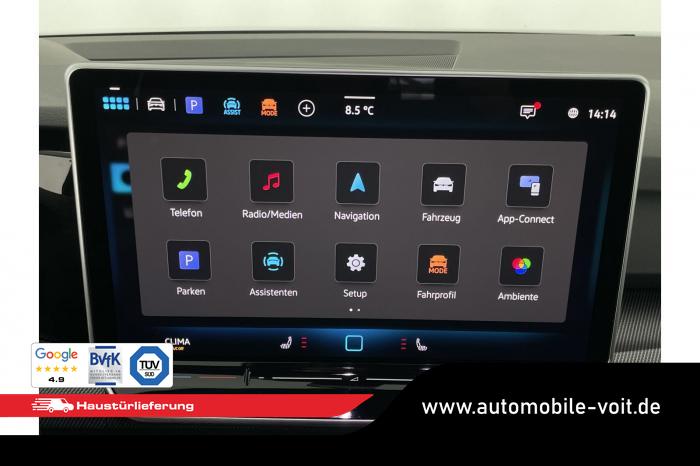 2 USB-C-Schnittstellen vorn, 2 USB-C-Ladebuchsen an der Mittelkonsole hinten, 6+1 Lautsprecher, App-Connect Wireless für Apple CarPlay und Android Auto, Digitaler Radioempfang DAB , Navigationssystem Discover, Telefonschnittstelle Comfort mit induktiver Ladefunktion, Abbiege- und Schlechtwetterlicht, Ambientebeleuchtung 30-farbig inkl. LED-Leuchte im Fußraum vorn, Lichtfarbe wählbar, IQ.LIGHT - LED-Matrix-Scheinwerfer inkl. Licht-und-Sicht-Paket, LED-Rückleuchten mit dynamischer Blinkleuchte, Leuchtweitenregulierung dynamisch, mit dynamischem Kurvenfahrlicht, Seitenscheiben hinten und Heckscheibe abgedunkelt, Innenspiegel automatisch abblendend, Lenkradheizung, Mittelarmlehne vorn, Multifunktions-Sportlenkrad in Leder, mit Schaltwippen, Textilfußmatten vorn und hinten, 3 Klimazonen, Klimaanlage Air Care Climatronic mit Aktiv-Kombifilter, Bedienelementen hinten und 3-Zonen-Temperaturregelung, Assistenzpaket, Design-Paket Black Style inkl. IQ.LIGHT - LED-Matrix-Scheinwerfer, Sitzkomfortpaket, Technikpaket Park & Comfort Pro, Winterpaket, 18 Leichtmetallräder York in Schwarz, Oberfläche glanzgedreht, Airbag für Fahrer und Beifahrer, mit Beifahrerairbag-Deaktivierung, Diebstahlwarnanlage mit Innenraumüberwachung, Back-up-Horn und Abschleppschutz, Elektronische Differenzialsperre XDS, Elektronisches Stabilisierungsprogramm und elektromechanischer Bremskraftverstärker, ISOFIX-Halteösen für Kindersitze auf den äußeren Rücksitzen sowie auf dem Beifahrersitz, i-Size-kompatibel, Kopfairbags vorn und hinten, Seitenairbags vorn, Center-Airbag, Notruf-Service, Wegfahrsperre elektronisch, Lendenwirbelstütze vorn, Rücksitzbank ungeteilt, Lehne asymmetrisch geteilt umklappbar, mit Mittelarmlehne, Vordersitze beheizbar, Vordersitze mit Höheneinstellung, Anschlussgarantie, Laufzeit 3 Jahre im Anschluss an die Herstellergarantie, maximale Gesamtlaufleistung 100 000 km, Easy Open & Close - Heckklappe mit sensorgesteuerter Öffnung und Schließung, mit Fernentriegelung, 12-V-Steckdose im Gepäckraum, Automatische Distanzregelung ACC, Digital Cockpit Pro, mehrfarbig, verschiedene Info-Profile wählbar, Elektronische Parkbremse inkl. Auto-Hold-Funktion, Fahrassistent Travel Assist, Spurhalteassistent Lane Assist und Emergency Assist, Fahrprofilauswahl, Müdigkeitserkennung, Notbremsassistent Front Assist mit Fußgänger- und Radfahrererkennung, Parkassistent Park Assist Pro inkl. Einparkhilfe, Progressivlenkung, Regensensor, Reifenkontrollanzeige, Rückfahrkamera Rear View, Schlüsselloses Schließ- und Startsystem Keyless Access, Verkehrszeichenerkennung, Start-Stopp-System mit Bremsenergie-Rückgewinnung, Außenspiegel elektrisch einstell-, anklapp- und beheizbar [#60] , Außenspiegelgehäuse in Schwarz, Dachreling schwarz, Sportfahrwerk, Volkswagen Logo vorn, Leiste zwischen den Scheinwerfern beleuchtet, EU-Fahrzeug mit Tageszulassung