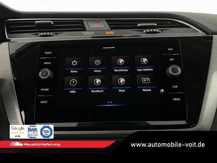 8 Lautsprecher, App-Connect Wireless für Apple CarPlay und Android Auto, DAB (digitaler Radioempfang), Radio Ready 2 Discover inkl. Streaming & Internet, Telefonschnittstelle mit induktiver Ladefunktion, Vorbereitet für VW Connect und VW Connect Plus, Fahrlichtschaltung automatisch, mit Tagfahrlicht, Leaving home-Funktion und manueller Coming home-Funktion, LED-Kennzeichenbeleuchtung, LED-Rückleuchten, LED-Scheinwerfer mit LED-Tagfahrlicht und Kurvenfahrlicht, Leuchtweitenregulierung dynamisch, mit dynamischem Kurvenfahrlicht, Seitenscheiben hinten und Heckscheibe abgedunkelt, Sonnenschutzrollo an den Türscheiben hinten, Ablagefächer in der Dachkonsole, Ausströmer vorn und Lichtdrehschalter mit Chromeinfassung, Beifahrersitzlehne komplett umklappbar, mit Tisch- und Durchladefunktion, Dachhimmel in Grau, Dekoreinlagen New Brushed Design für Instrumententafel und Türverkleidungen vorn, Gepäckraumabdeckung mit Komfortöffnung, auszieh-, herausnehm- und verstaubar, Handschuhfach-Kühlung, Innenspiegel automatisch abblendend, Klapptische an den Rückseiten der Vordersitze, neigungseinstellbar, Make-up-Spiegel beleuchtet in den Sonnenblenden, Mittelarmlehne vorn höhen- und längseinstellbar, mit herausnehmbarer Ablagebox, 2 Ausströmer hinten, Multifunktionslenkrad in Leder, beheizbar, Raucher-Paket, Frontscheibe beheizbar, Klimaanlage Air Care Climatronic mit Aktiv-Kombifilter, Bedienelementen hinten und 3-Zonen-Temperaturregelung, Easy Open & Close-Paket, Assistenzpaket IQ.DRIVE inkl. IQ.LIGHT, Fahrerassistenzpaket VE, Family-Paket, Winterpaket, 17'' Leichtmetallfelgen ''Vallelunga'' 6,5 J x 17 in Schwarz /Oberfläche glanzgedreht, AirStop®-Reifen 215/55 R 17, Airbag für Fahrer und Beifahrer, mit Beifahrerairbag-Deaktivierung, inkl. Knie-Airbag auf der Fahrerseite, Diebstahlwarnanlage mit Innenraumüberwachung, Back-up-Horn und Abschleppschutz, Elektronisches Stabilisierungsprogramm mit Gegenlenkunterstützung, ABS, ASR, EDS, MSR und Gespannstabilisierung, ISOFIX-Halteösen (Vorrichtung zur Befestigung von Kindersitzen auf den Rücksitzen), Kopfairbagsystem für Front- und Fondpassagiere inkl. Seitenairbags vorn, Notrufsystem eCall, Proaktives Insassenschutzsystem in Verbindung mit Front Assist und Side Assist, Servolenkung elektromechanisch, geschwindigkeitsabhängig geregelt, Warnton und -leuchte für nicht angelegte Gurte vorn, Warnleuchte für nicht angelegte Gurte hinten, 2 Einzelsitze in der 3.Sitzreihe, im Gepäckraumboden versenkbar, 3 Einzelsitze in 2. Sitzreihe mit Armlehne, 2 Einzelsitze in 3. Sitzreihe, mit Umklappfunktion Easy Fold, Dreipunkt-Automatiksicherheitsgurte vorn mit Höheneinstellung und Gurtstraffer, Komfortsitze vorn, Lendenwirbelstützen vorn, Schubladen unter den Vordersitzen, Sitzmittelbahnen in Stoff Lasano, Vordersitze beheizbar, Vordersitze mit Höheneinstellung, Anschlussgarantie 2 Jahre / 80.000 Km, Easy Open & Close - Heckklappe mit sensorgesteuerter Öffnung und Schließung, mit Fernentriegelung, 12-V-Steckdose an der Mittelkonsole hinten und im Gepäckraum, Ablenkungs- und Müdigkeitserkennung, Anhängerrangierassistent Trailer Assist inkl. Parklenkassistent Park Assist und Einparkhilfe, Automatische Distanzregelung ACC stop & go, mit Geschwindigkeitsbegrenzer, Digital Cockpit, mehrfarbig, verschiedene Info-Profile wählbar, Dynamischer Fernlichtassistent Dynamic Light Assist, Elektronische Parkbremse inkl. Auto-Hold-Funktion, Fahrassistent Travel Assist, Spurhalteassistent Lane Assist und Emergency Assist, Fußgänger- und Radfahrererkennung sowie aktive Frontklappe, Notbremsassistent Front Assist (für automatische Distanzregelung ACC bis 210 km/h), Regensensor, Reifenkontrollanzeige, Rückfahrkamera Rear View für Trailer Assist, Schlüsselloses Schließ- und Startsystem Keyless Access mit SAFE-Verriegelung, Spurwechselassistent Side Assist und Ausparkassistent, Verkehrszeichenerkennung, Start-Stopp-System mit Bremsenergie-Rückgewinnung, Anhängevorrichtung inkl. Anhängerrangierassistent Trailer Assist, Außenspiegel elektrisch anklappbar,auf Fahrerseite abblendend,Umfeldbeleuchtung und Beifahrerspiegelabsenkung, Außenspiegelgehäuse und Türgriffe in Wagenfarbe, Kühlergrill und Lufteinlass in Schwarz, mit Chromleiste auf den Lamellen, Kühlergrill mit R-Line-Logo, R-Line Exterieur, Zierleisten in Schwarz an den Seitenfenstern, EU-Fahrzeug mit Tageszulassung