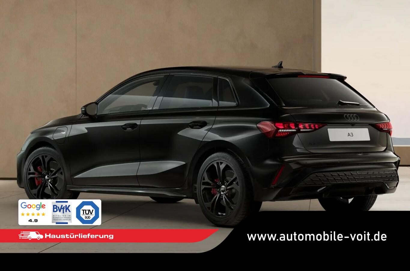 Interieur-Paket: S line mit Sportsitze, Sitzbezug Mikrofaser / Kunstleder, schwarz (Dachhimmel Stoff, schwarz / Innenausstattung: Aluminium-Optik / Kontur / Ambientebeleuchtungs-Paket (pro) / Pedalerie in Edelstahl / Rücksitzlehne geteilt/klappbar (40:20:40) / Sitzbezug / Polsterung: Mikrofaser Dinamica / Kunstleder Kombination mit Logo-Prägung in Vordersitzlehnen / Sportsitze vorn), Infotainment-Paket (Audi Application Store und Smartphone Interface / Audi connect (Internetbasierende Dienste) / Kombiinstrument digital (virtual cockpit plus) / Sound-System DSP / Audi Sound-System / Multi-Media-Interface MMI Navigation Plus mit MMI Touch), LM-Felgen 8x18 (5-Y-Doppelspeichen Schwarz-Metallic), Klima-Paket (Komfort-Klimaautomatik 3-Zonen / Komfort-Standklimatisierung / Sitzheizung vorn), Scheinwerfer LED (Heckleuchten LED mit dynamischem Blinklicht), Assistenz-Paket Fahren (Fahrassistenz-System: Adaptive Geschwindigkeitsregelanlage (Adaptive Cruise Control) mit Autom. Distanzregelung / Rückfahrkamera / Einparkhilfe vorn und hinten, akustisch und optisch mit selektiver Anzeige (APS Plus) / Fahrassistenz-System: Parklenkassistent mit selektiver Anzeige / Fahrassistenz-System: Spurverlassenswarnung inkl. Notfall-Assistent), Ladekabel mit Typ 2-Stecker (Mode 3), Verglasung hinten abgedunkelt (Privacyverglasung), Bluetooth-Freisprecheinrichtung mit Spracherkennung (Audi Phone Box), Fahrassistenz-System: Fernlichtassistent, Ladekabel mit Industriestecker (16 A / 400 V), 4-Wege-Lendenwirbelstütze für die Vordersitze, Außenspiegel elektrisch einstell-, beheiz- und anklappbar, automatisch abblendend, Diebstahl-Warnanlage, e-tron Ladesystem kompakt, Fahrassistenz-System: Abbiege-Assistent, Fahrassistenz-System: Adaptiver Geschwindigkeitsassistent, Fußraumbeleuchtung vorn und hinten, Gepäckraumbeleuchtung, Handschuhfach beleuchtet, Haushaltsstecker Typ E/F, Innenausstattung: Dekoreinlagen Aluminium Spektrum dunkel, Innenspiegel automatisch abblendend, rahmenlos, Komfortöffnung Gepäckraumklappe, Komfortpaket plus, Lenkrad (Sport/Leder - 3-Speichen, unten abgeflacht) mit Multifunktion plus und Schaltfunktion, Leseleuchten vorn und hinten, Mittelarmlehne vorn, Reifen 225/40 R18, Schadstoffarm nach Abgasnorm Euro 6e (EU6 EB), Sonnenblende mit Spiegel (beleuchtet), Motor 1,5 Ltr. - 130 kW (System: 200 kW) TFSI Hybrid (DUCA) (Hybrid 200 kW (Motor 1,5 Ltr. - 130 kW TFSI)), Akustischer Fußgängerschutz, Außensound (e-sound), Bremssättel Rot lackiert, Dachkantenspoiler S-line, Geschwindigkeits-Begrenzeranlage, Heckscheibenwischer, Karosserie: 5-türig, Kindersicherung elektr. betätigt, Kopfstützen hinten (3-fach), Nichtraucher-Paket, On-Board-Ladegerät (bis 11 kW), Optik-Paket schwarz plus, Parkbremse elektro-mechanisch, Radioempfang digital (DAB), Sitzbelegungserkennung für Sicherheitsgurte, Sitze vorn manuell einstellbar, Stoßfänger Sport-Design (S-line), USB-Ladeanschlüsse (2-fach, Typ C) für Fondpassagiere, Fahrassistenz-System: Bremsassistent (Audi pre sense front), Audi Drive Select, Wegfahrsperre (elektronisch), Getriebe 6-Gang - Doppelkupplungsgetriebe S-tronic, Standklimatisierung, Airbag Beifahrerseite abschaltbar, Airbag Fahrer-/Beifahrerseite, Isofix-Aufnahmen für Kindersitz, Kopf-Airbag-System (Sideguard), Schließ-/Startsystem Advanced Key (Komfortschlüssel), Seitenairbag vorn, Seitenairbag vorn mitte (Interaktionsairbag), Wärmeschutzverglasung grün getönt, Fahrassistenz-System: Verkehrszeichenerkennung, Multifunktionskamera, Audi connect (Notruf- und Assistance-System), Fahrassistenz-System: Notfall-Assistent mit automatischem Notruf, Servolenkung elektro-mechanisch, Licht- und Regensensor, Tagfahrlicht, Fahrassistenz-System: Ausweich-Assistent, Fahrassistenz-System: Müdigkeitserkennung (Pausenempfehlung), Reifendruck-Kontrollsystem, Start-Stop-Knopf, Start/Stop-Anlage