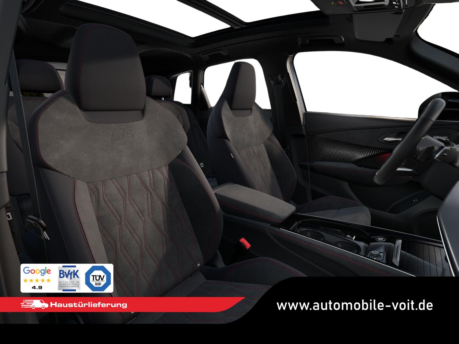 • Interieur S line mit Sportsitzen Mikrofaser (Sportsitze vorn, Sitzmittelbahnen in Mikrofaser Schwarz, Sitzseitenwangen und Kopfstützen in Stoff, Kontrastnähte in Grau, Vordersitze in Rautenmuster, Mikrofaser Dinamica, Ambientebeleuchtung Pro, Ladekantenschutz in Edelstahl, Pedale in Edelstahl)
