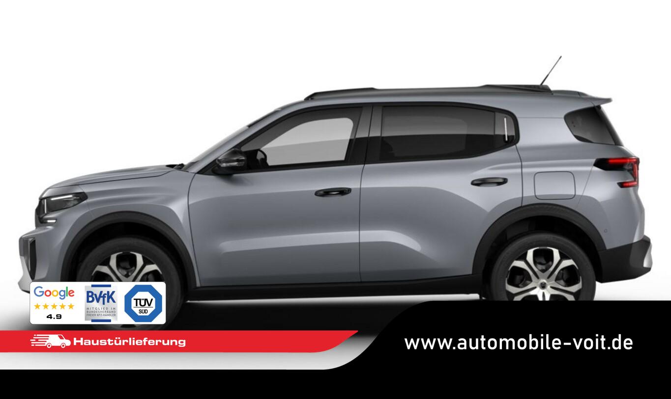 Sitz-Paket 7-Sitzer (2 Zusatzsitze (7 Sitze) / Kopfstützen hinten verstellbar / USB-Anschluss (Typ C)), Ablagetaschen an Rückseite der Vordersitzlehnen, Audiosystem inkl. 10"-Touchscreen, 6 Lautsprecher, USB-Schnittstelle (Typ C), Bordcomputer, Frontscheibe geräuschdämmend, Gepäckraumbeleuchtung, Gurtwarnanlage, Heckspoiler, Innenraumfilter: Staub- & Pollenfilter, Kindersicherung manuell, Kombiinstrument digital (4,2"), Lenkrad mit Multifunktion, Leseleuchten LED vorn und hinten, Navigation in Verbindung mit dem Smartphone (über Apple Carplay / Android Auto /...), Radioempfang digital (DAB), Reifen 215/60 R17, Servolenkung elektrisch, Sitz vorn rechts umklappbar, Smartphone-Schnittstelle (Android Auto & Apple CarPlay), Sonnenblenden mit Spiegel, Steckdose (12V-Anschluss), Verzurrösen (4), Zentralverriegelung mit Türverriegelung automatisch, Fahrassistenz-System: Automatische Fahrlichtschaltung inkl. Fernlichtassistent (Einschaltautomatik für Fahrlicht), Einparkhilfe hinten inkl. Rückfahrkamera (Rückfahrkamera), Sicherheits-Paket (Elektr. Bremskraftverteilung / Anti-Blockier-System (ABS) / Bremsassistent / Fahrassistenz-System: Aktiver Notbrems-Assistent (Active Safety Brake) / Antischlupfregelung (ASR) / Elektron. Stabilitäts-Programm (ESP) / Fahrassistenz-System: Berganfahrhilfe / Geschwindigkeits-Regelanlage (Tempomat) inkl. Geschwindigkeits-Begrenzeranlage / Fahrassistenz-System: Aufmerksamkeits-Assistent (Müdigkeitserkennungs-Sensor) / Fahrassistenz-System: Spurassistent (AFIL)), Citroen Advanced Comfort Sitze, Dach Wagenfarbe, Heckscheibe heizbar, Heckscheibenwischer, Karosserie: 5-türig, Lenksäule (Lenkrad) mech. höhen-/längsverstellbar, Motor 1,2 Ltr. - 74 kW, Otto-Partikelfilter (GPF), Radstand 2670 mm, Sitz vorn links höhenverstellbar, Sitzbezug / Polsterung: Stoff, Stahlfelgen 7x17, Antriebsart: Frontantrieb, Getriebe 6-Gang, Klimaautomatik, Airbag Beifahrerseite abschaltbar, Airbag Fahrer-/Beifahrerseite, Kopf-Airbag-System und Seitenairbag, Fensterheber elektrisch hinten, Fensterheber elektrisch vorn, Isofix-Aufnahmen für Kindersitz an Rücksitz, Rücksitzlehne geteilt/klappbar 1/3-2/3, Seitenscheiben hinten und Heckscheibe dunkel getönt, Zentralverriegelung mit Fernbedienung, Head-up-Display (Kombiinstrument hochgesetzt), Dachreling schwarz, Fahrassistenz-System: Verkehrszeichenerkennung, Außenspiegel elektr. verstell-, heiz- und anklappbar, Scheibenwischer mit Regensensor, Scheinwerfer Eco-LED, Tagfahrlicht LED, Reifendruck-Kontrollsystem, Stop-Start-Anlage