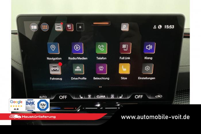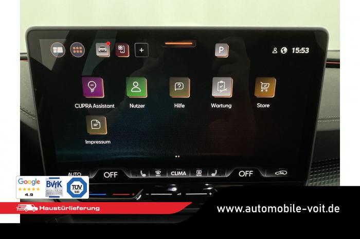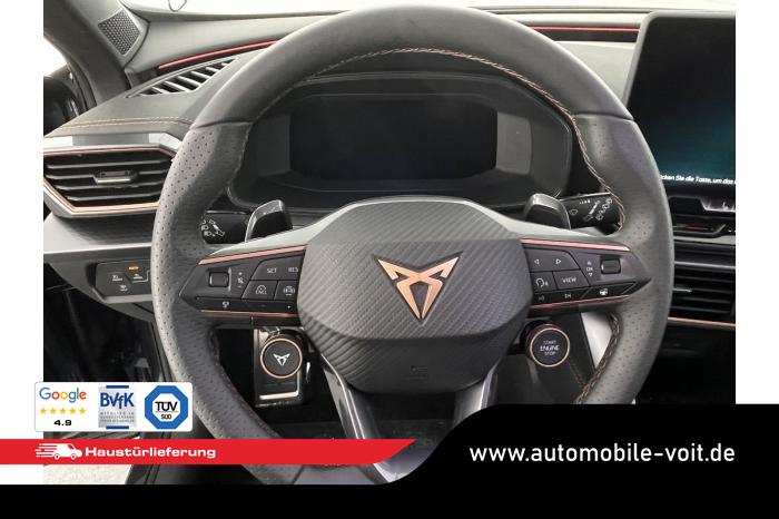 Connectivity Box inkl. Wireless Charger, Cupra Full Link, DAB (Digital Audio Broadcasting), Navigationssystem, Tuner/Radio, LED Matrix Scheinwerfer, Seitenscheiben hinten und Heckscheibe abgedunkelt, Lederlenkrad, Lenkradheizung, Multifunktionslenkrad, variabler Ladeboden, 3 Klimazonen, Klimaautomatik, Winterpaket, 19'' Leichtmetallfelgen ''Sandstorm'', Pre-Crash-Assist, ABS (Antiblockiersystem), ESP (Elektronisches Stabilitätsprogramm), Fahrerairbag, Vorder- und Seitenairbags, Vordere Airbags, Elektrisch verstellbarer Fahrersitz mit Memory, Fahrersitz höhenverstellbar, Schalensitze vorne, Sitzheizung vorne, Herstellergarantie 5 Jahre/100.000 km, 360-Grad-Kamera, Automatische Distanzregelung ACC, Digital Cockpit, Elektrische Heckklappe inkl. Virtual Pedal, Exit Assist , Fernlichtassistent, IntelligentPark-Assistent, Keyless Go, KeylessEntry, Müdigkeitserkennung, Notbremsassistent, Parkpilot vorne und hinten, Spurhalteassistent plus, Stauassistent, Totwinkelassistent, Verkehrszeichenerkennung, Zentralverriegelung, Adaptive Fahrwerksregelung DCC, Anhängekupplung schwenkbar, Außenspiegel elektrisch anklappbar, Außenspiegel elektrisch beheizbar, Außenspiegel elektrisch einstellbar, Dachreling schwarz, EU-Fahrzeug mit Tageszulassung