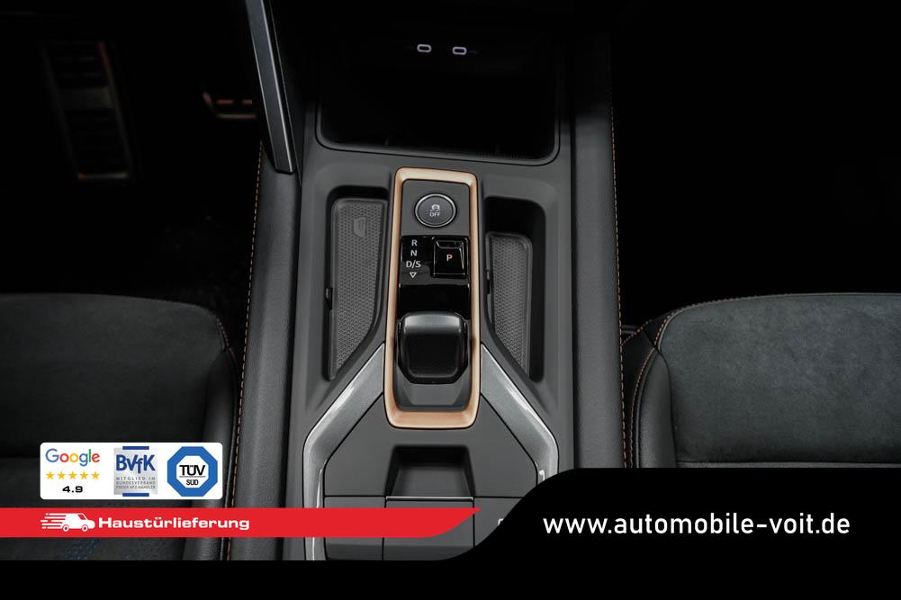 Beifahrersitz höhenverstellbar, Fahrersitz höhenverstellbar, Lederlenkrad, Lendenwirbelstütze, Mittelarmlehne vorne, Sportsitze, Gepäckraumabdeckung, geteilt umklappbare Rücksitzlehne, Lenkrad höhenverstellbar, Sitzbezug Dinamica, Ambiente-Beleuchtung, Elektrisch verstellbarer Fahrersitz, Beheizbares Lenkrad, Supersportlenkrad, Isofix, Isofix Beifahrersitz, abgedunkelte Scheiben, 19 Zoll Alufelgen Sandstorm Kupfer, Dachreling schwarz, ABS, Alarmanlage, Außenspiegel elektrisch anklappbar, Fensterheber elektrisch, Kopfairbags, Nebelscheinwerfer, Schiebedach, Seitenairbags, Servolenkung, Sitzheizung, DCC, ESP, Wegfahrsperre, Außenspiegel beheizbar, Beifahrerairbag, Fahrerairbag, Parkpilot hinten, Parkpilot vorne, Reifendruckkontrolle, Regensensor, Lichtsensor, Digital Cockpit, Anhängekupplung schwenkbar, Tempomat Abstand ACC, Fernlichtassistent, Spurhalteassistent plus, Totwinkelassistent, Verkehrszeichenerkennung, LED Matrix Scheinwerfer, Tagfahrlicht LED, Pannenset, Rückfahrkamera, Intelligent Park-Assistent, Panoramadach, Elektrische Heckklappe inkl. Virtual Pedal, KeylessEntry, StartStopSystem, Innenspiegel automatisch abbl., Müdigkeitswarnsystem, Notrufsystem, Schaltwippen, Klimaautomatik 3-Zonen, 360-Grad-Kamera, Geschwindigkeitsbegrenzer, Freisprecheinrichtung, Induktionsladestation, Sprachsteuerung, USB, Radio DAB, Bluetooth, Bordcomputer, Radio-Navigationssystem, Full Link, Stauassistent, Pre-Crash, erweiterte Herstellergarantie 4 Jahre/120.000km,