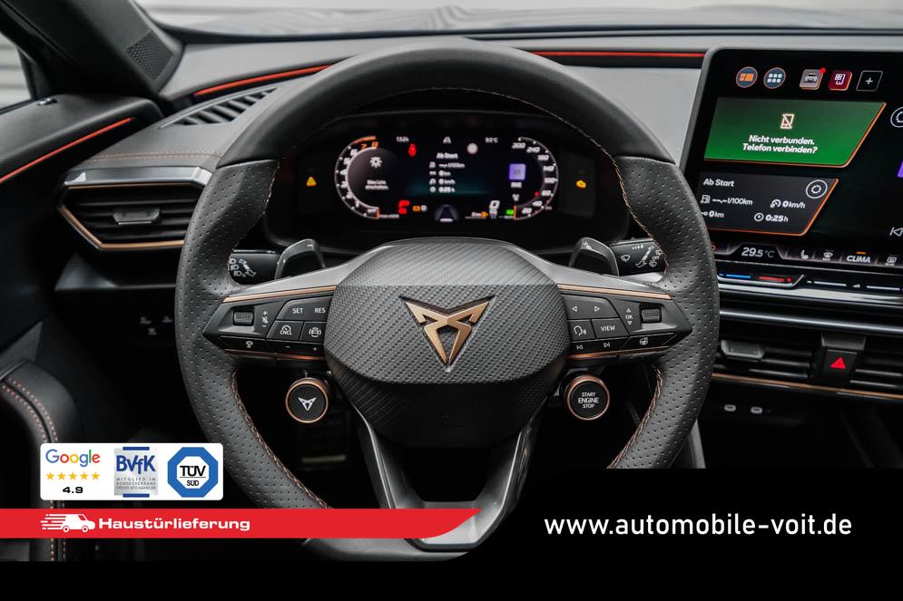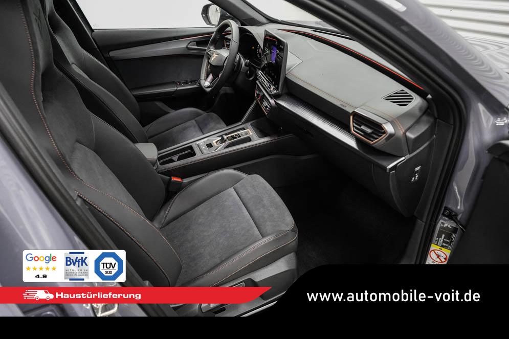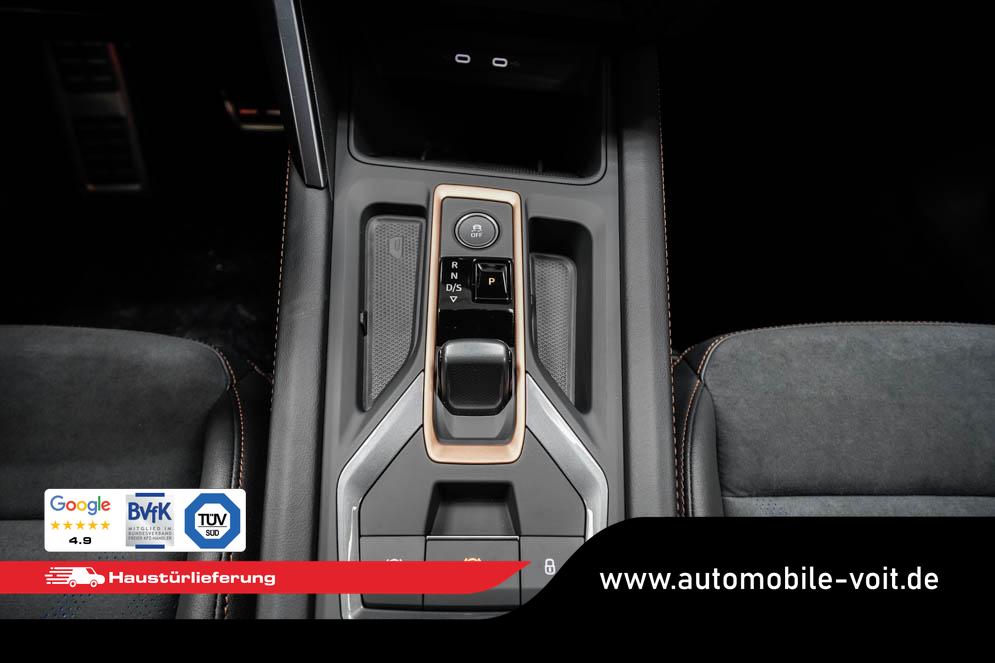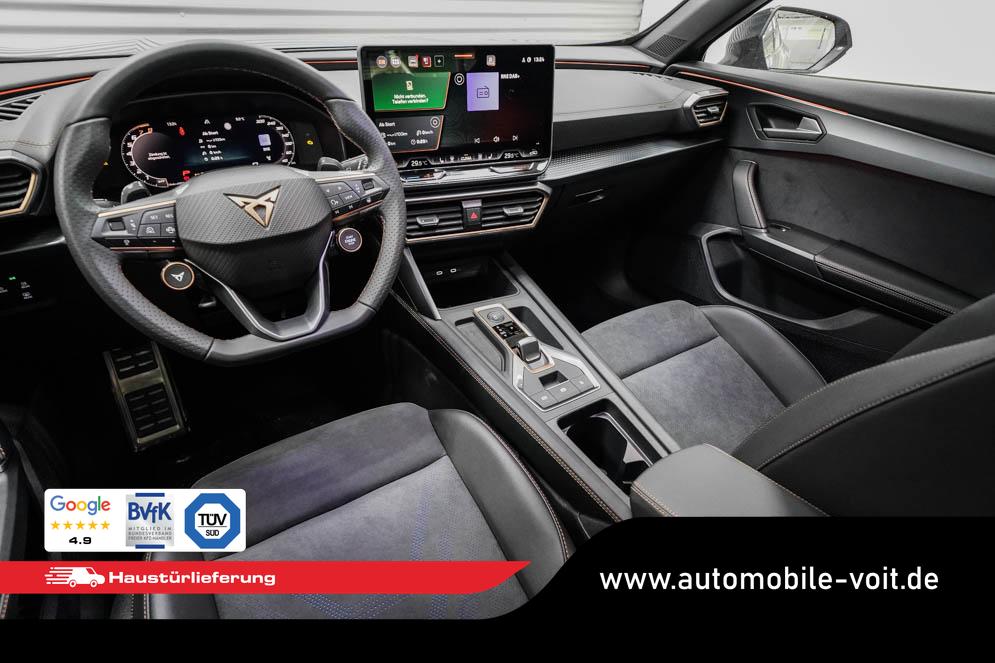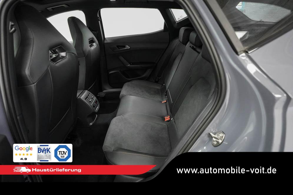 Beifahrersitz höhenverstellbar, Fahrersitz höhenverstellbar, Lederlenkrad, Lendenwirbelstütze, Mittelarmlehne vorne, Sportsitze, geteilt umklappbare Rücksitzlehne, Lenkrad höhenverstellbar, Sitzbezug Dinamica, Ambiente-Beleuchtung, Elektrisch verstellbarer Fahrersitz mit Memory, Beheizbares Lenkrad, Multifunktionslenkrad mit Satellitentasten, Isofix, Isofix Beifahrersitz, abgedunkelte Scheiben, 19 Zoll Alufelgen Sandstorm, Dachreling schwarz, ABS, Alarmanlage, Außenspiegel elektrisch, Fensterheber elektrisch, Kopfairbags, Nebelscheinwerfer, Schiebedach, Seitenairbags, Servolenkung, Sitzheizung vorne, DCC, ESP, Wegfahrsperre, Außenspiegel beheizbar, Beifahrerairbag, Fahrerairbag, Parkpilot hinten, Parkpilot vorne, Reifendruckkontrolle, Regensensor, Lichtsensor, Digital Cockpit, Anhängekupplung schwenkbar, Tempomat Abstand ACC, Fernlichtassistent, Spurhalteassistent, Verkehrszeichenerkennung, Full LED-Scheinwerfer, Tagfahrlicht LED, Pannenset, Rückfahrkamera, Panoramadach, Elektrische Heckklappe inkl. Virtual Pedal, KeylessEntry, StartStopSystem, Innenspiegel automatisch abbl., Müdigkeitswarnsystem, Notrufsystem, Schaltwippen, Klimaautomatik 3-Zonen, Geschwindigkeitsbegrenzer, Android Auto, Apple Carplay, Freisprecheinrichtung, Induktionsladestation, Sprachsteuerung, USB, Radio, Radio DAB, Bluetooth, Bordcomputer, Schalensitze vorne, Cupra Full Link, variabler Ladeboden, erweiterte Herstellergarantie 5 Jahre/100.000km,