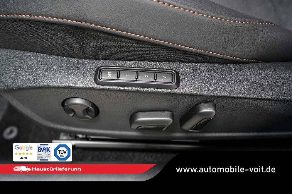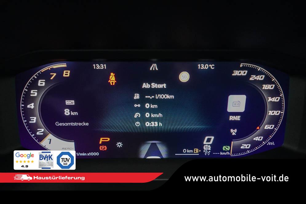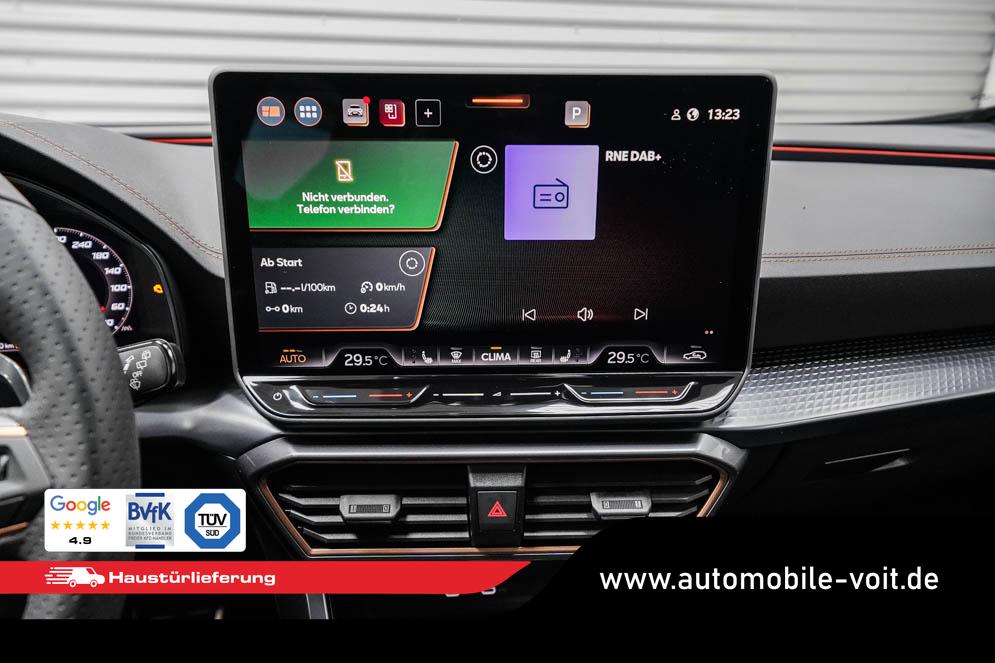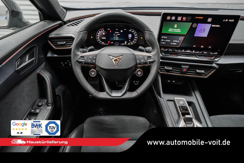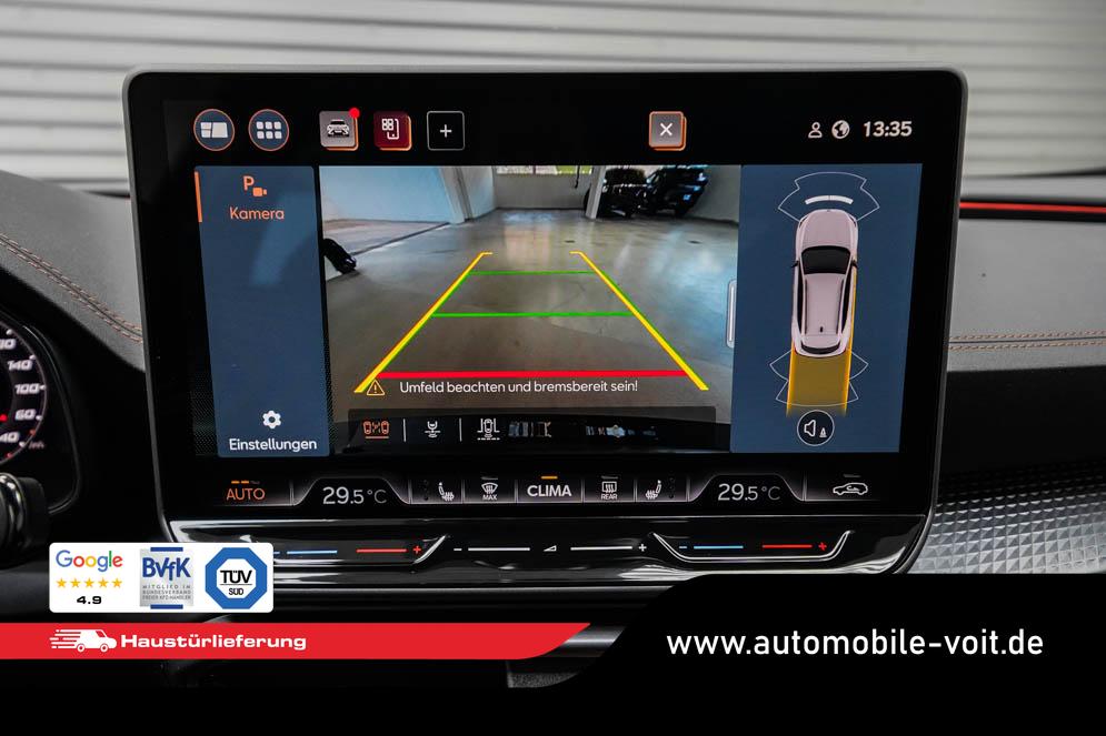 Beifahrersitz höhenverstellbar, Fahrersitz höhenverstellbar, Lederlenkrad, Lendenwirbelstütze, Mittelarmlehne vorne, Sportsitze, geteilt umklappbare Rücksitzlehne, Lenkrad höhenverstellbar, Sitzbezug Dinamica, Ambiente-Beleuchtung, Elektrisch verstellbarer Fahrersitz mit Memory, Beheizbares Lenkrad, Multifunktionslenkrad mit Satellitentasten, Isofix, Isofix Beifahrersitz, abgedunkelte Scheiben, 19 Zoll Alufelgen Sandstorm, Dachreling schwarz, ABS, Alarmanlage, Außenspiegel elektrisch, Fensterheber elektrisch, Kopfairbags, Nebelscheinwerfer, Schiebedach, Seitenairbags, Servolenkung, Sitzheizung vorne, DCC, ESP, Wegfahrsperre, Außenspiegel beheizbar, Beifahrerairbag, Fahrerairbag, Parkpilot hinten, Parkpilot vorne, Reifendruckkontrolle, Regensensor, Lichtsensor, Digital Cockpit, Anhängekupplung schwenkbar, Tempomat Abstand ACC, Fernlichtassistent, Spurhalteassistent, Verkehrszeichenerkennung, Full LED-Scheinwerfer, Tagfahrlicht LED, Pannenset, Rückfahrkamera, Panoramadach, Elektrische Heckklappe inkl. Virtual Pedal, KeylessEntry, StartStopSystem, Innenspiegel automatisch abbl., Müdigkeitswarnsystem, Notrufsystem, Schaltwippen, Klimaautomatik 3-Zonen, Geschwindigkeitsbegrenzer, Android Auto, Apple Carplay, Freisprecheinrichtung, Induktionsladestation, Sprachsteuerung, USB, Radio, Radio DAB, Bluetooth, Bordcomputer, Schalensitze vorne, Cupra Full Link, variabler Ladeboden, erweiterte Herstellergarantie 5 Jahre/100.000km,