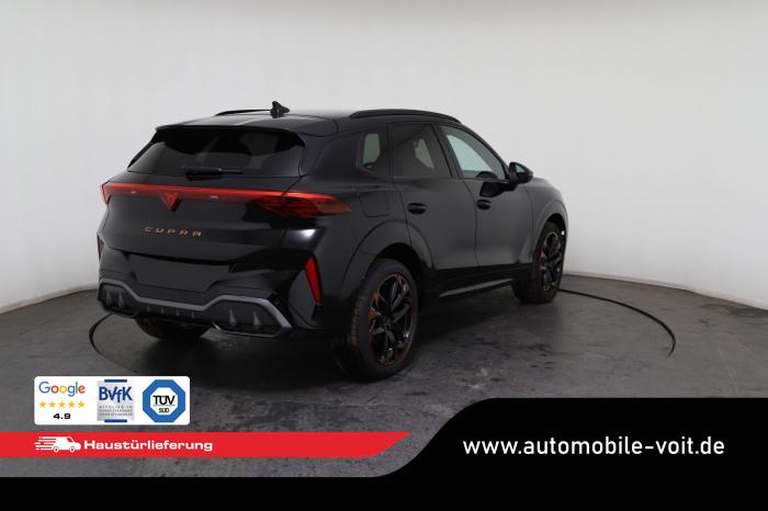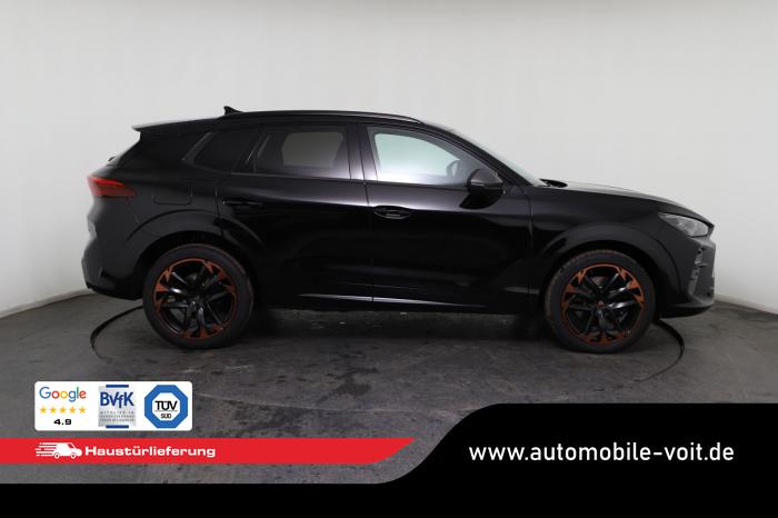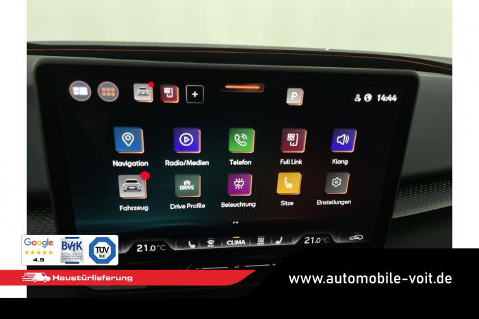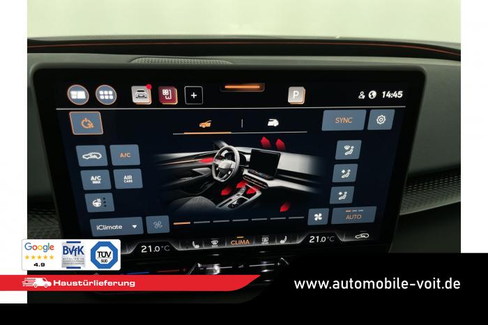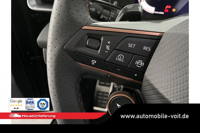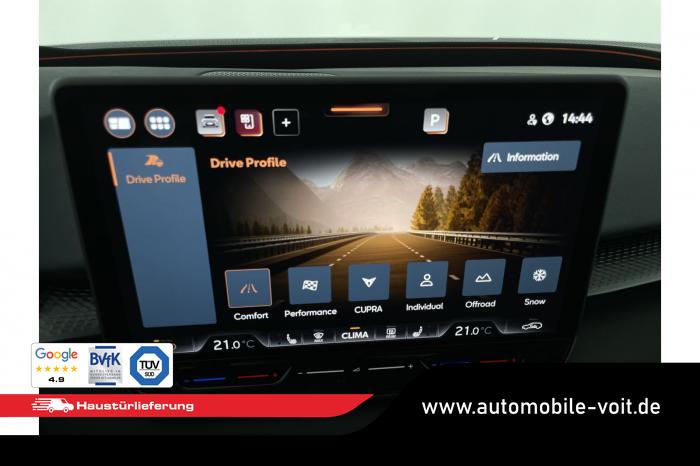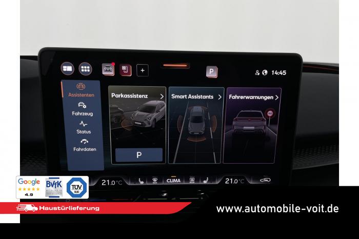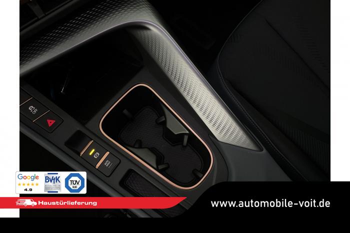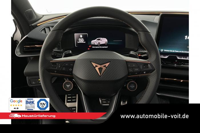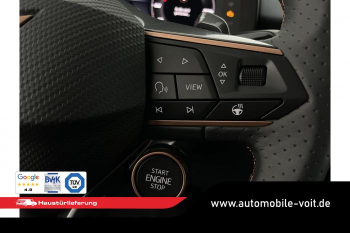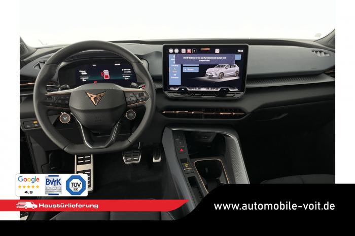 2 USB-C-Schnittstellen vorn und 2 USB-C-Ladebuchsen für die 2. Sitzreihe, 9 Lautsprecher, Connectivity Box mit Wireless Charger, Digitaler Radioempfang DAB , Full Link Wireless für Andorid Auto und Apple CarPlay, Media System Plus mit 12,9 Farb-Touch-Screen, Navigationssystem, Sprachsteuerung, 3D LED-Heckleuchten mit dynamischen Blinkleuchten und bleuchtetem CUPRA Logo, HD-Matrix-Scheinwerfer mit Projektionsfunktion und Welcome Ceremony, LED-Nebelscheinwerfer mit Abbiegelicht-Funktion, Smart Ambiente Light, Tagfahrlicht in LED-Technologie, Türeinstiegsleisten beleuchtet, vorne, Welcome Light, Fensterheber vorn und hinten elektrisch, mit Einklemmschutz und One-Touch-Funktion, Seitenscheiben ab 2. Sitzreihe und Heckscheibe dunkel getönt, Dachhimmel in Schwarz, Innenspiegel automatisch abblendend, Lenkrad beheizbar, Mittelarmlehne hinten, Mittelarmlehne vorn, Multifunktionslenkrad in Leder mit Schaltwippen, Sportpedalerie in Aluminiumoptik, Variabler Gepäckraumboden, Klimaanlage Climatronic mit 3-Zonen-Temperaturregelung, Digital Drive Paket, Edge Paket, 20 Leichtmetallräder Vortex Copper, glanzgedreht [Z0C] , Performance-Reifen 255/40 R20, Airbag für Fahrer und Beifahrer, mit Beifahrerairbag-Deaktivierung, Diebstahl-Warnanlage inkl. Innenraumüberwachung, Back-up-Horn und Abschleppschutz, Elektronisches Stabilisierungsprogramm und elektromechanischer Bremskraftverstärker, ISOFIX-Kindersitz-Sicherungssystem für den Beifahrersitz und in der 2. Sitzreihe links und rechts inkl. Top Thether Verankerungspunkte, Kopfairbag-System vorn und hinten, Seitenairbags vorn, Center Airbag, Notruf-Service, Wegfahrsperre, elektronisch, Lendenwirbelstütze für Fahrer und Beifahrer, Rücksitzlehne asymmetrisch geteilt umklappbar, Sportsitze vorn, Vordersitze beheizbar, Vordersitze mit Höheneinstellung, Anschlussgarantie 3 Jahre/ 100.000 km, CUPRA CONNECT Plus (3 Jahre), Ablenkungs- und Müdigkeitserkennung, Automatische Distanzregelung ACC, Berganfahrassistent, CUPRA Drive Profile, Einparkhilfe vorne und hinten, Elektronische Parkbremse inkl. Auto-Hold-Funktion, Head-up Display, Kreuzungsassistent, Notbremsassistent Front Assist mit Fußgänger- und Radfahrererkennung, Progressivlenkung, Rückfahrkamera, Schlüsselloses Schließ- und Startsystem Kessy, Spurhalteassistent, Umstellung Infotainment / Bordcomputer auf DE, Verkehrszeichenerkennung, Volldigitales Kombiinstrument mit 10,25 TFT Display, Adaptive Fahrwerksregelung DCC, Anhängevorrichtung, schwenkbar mit elektrischer Entriegelung, Außenspiegel elektrisch einstell-, anklapp- und beheizbar mit Memory-Funktion, Dachreling in Schwarz, Heckklappe elektrisch betätigt (Öffnung & Schließung) inkl. Sensorgesteuerter Öffnung & Schließung (Virtual Pedal), EU-Fahrzeug mit Tageszulassung