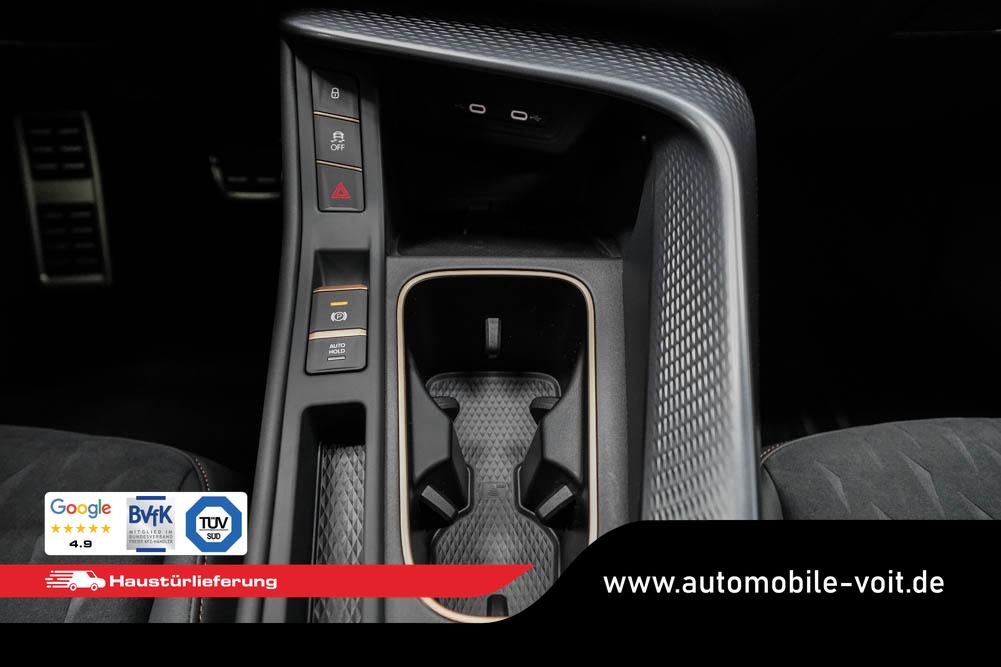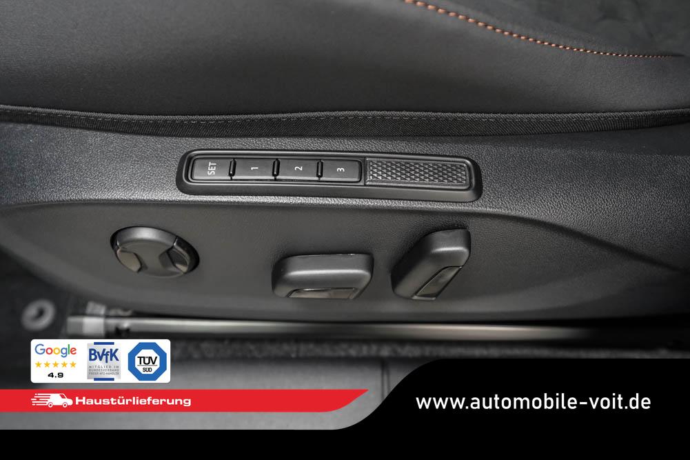Beifahrersitz höhenverstellbar, Fahrersitz höhenverstellbar, Lederlenkrad, Lendenwirbelstütze, Mittelarmlehne vorne, Sitzbezug Dinamica, Sportsitze, Gepäckraumabdeckung, geteilt umklappbare Rücksitzlehne, Lenkrad höhenverstellbar, Ambiente-Beleuchtung, Elektrisch verstellbarer Fahrersitz mit Memory Funktion, Beheizbares Lenkrad, Multifunktionslenkrad, Isofix, Isofix Beifahrersitz, abgedunkelte Scheiben, 20 Zoll Alufelgen Hadron Kupfer, Dachreling schwarz, ABS, Alarmanlage, Außenspiegel elektrisch anklappbar, Fensterheber elektrisch, Kopfairbags, Nebelscheinwerfer, Schiebedach, Seitenairbags, Servolenkung, Sitzheizung, DCC, ESP, Wegfahrsperre, Außenspiegel beheizbar, Beifahrerairbag, Fahrerairbag, Parkpilot hinten, Parkpilot vorne, Reifendruckkontrolle, Head-up Display, Regensensor, Lichtsensor, Digital Cockpit, Tempomat Abstand ACC, Fernlichtassistent, Spurhalteassistent plus, Totwinkelassistent, Verkehrszeichenerkennung, LED Matrix Scheinwerfer, Tagfahrlicht LED, Pannenset, Rückfahrkamera, Park-Assistent, Panoramadach, Elektrische Heckklappe inkl. Virtual Pedal, KeylessEntry, StartStopSystem, Innenspiegel automatisch abbl., Müdigkeitswarnsystem, Notrufsystem, Schaltwippen, Klimaautomatik 3-Zonen, 360-Grad-Kamera, Geschwindigkeitsbegrenzer, Android Auto, Apple Carplay, Freisprecheinrichtung, Induktionsladestation, Sprachsteuerung, USB, Radio DAB, Bluetooth, Bordcomputer, Radio-Navigationssystem, variabler Ladeboden, Full Link, erweiterte Herstellergarantie 5 Jahre/100.000km, Schalensitze vorn, Exit Assist,