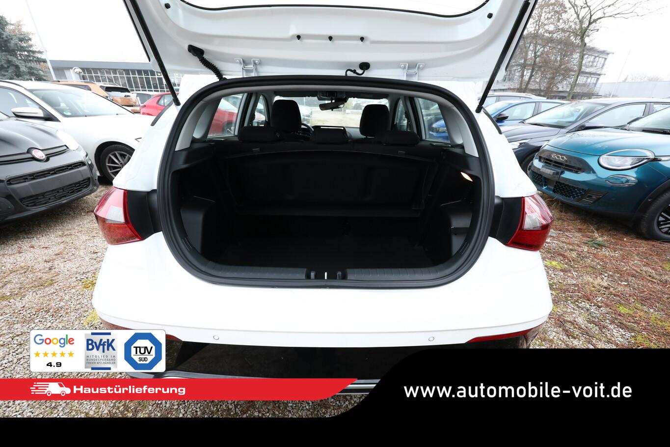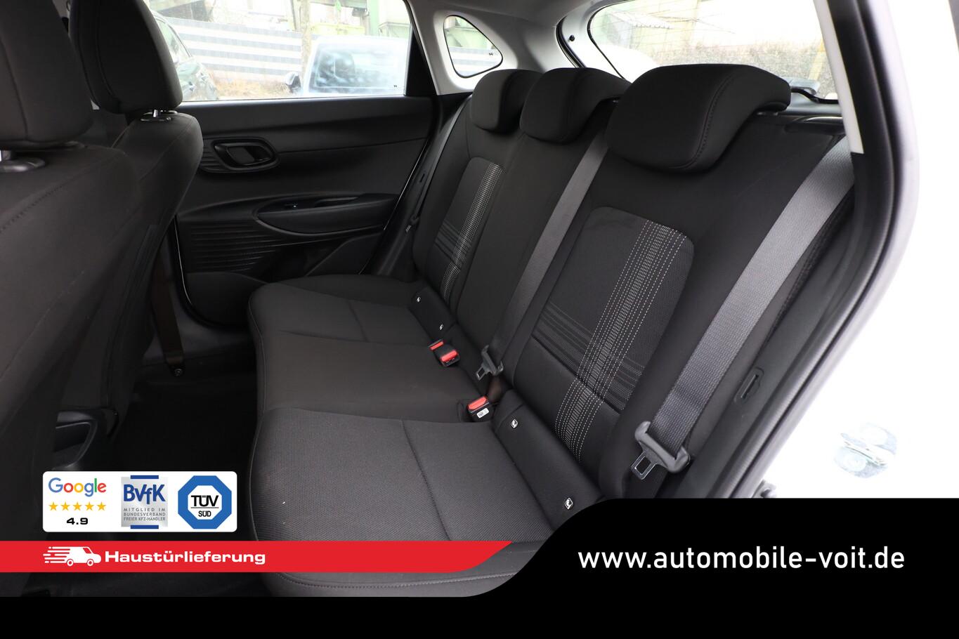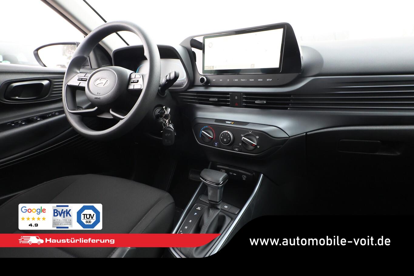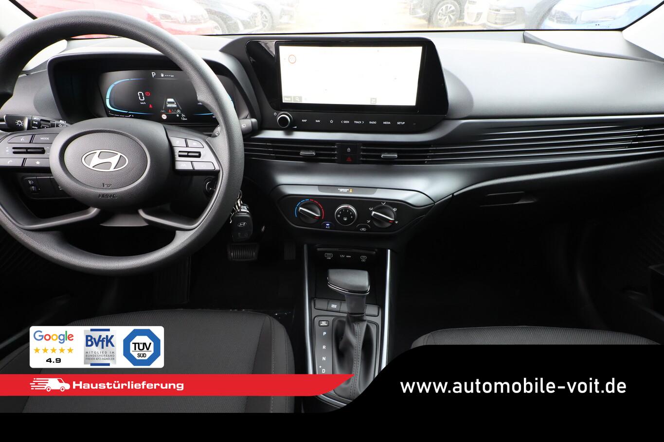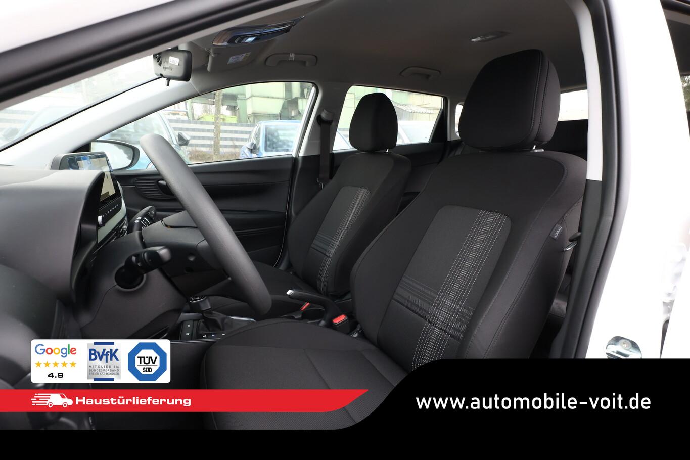 4 Lautsprecher inkl. Hochtöner, Innenspiegel abblendbar, Isofix-Aufnahmen für Kindersitz, Kopfstützen vorn verstellbar, Lenkrad mit Multifunktion, Reifen 185/65 R15, Schadstoffarm nach Abgasnorm Euro 6e (EU6 EA), SmartLink (Apple CarPlay und Android Auto), Stahlfelgen 15 Zoll, Audio-Navigationssystem (Touchscreen-Farbdisplay (10,25 Zoll)), Service-System: Remote Services (Blue Link) (Service-System: Online Update OTA (Over The Air)), Fahrassistenz-System: Autonome Notbremsfunktion inkl. Frontkollisionswarnung (FCA) (Fahrassistenz-System: Autonome Notbremsfunktion inkl. Fahrradfahrererkennung (FCA-Cyc.) / Fahrassistenz-System: Autonome Notbremsfunktion inkl. Fußgängererkennung (FCA-Ped.)), Außenspiegel lackiert, Fahrassistenz-System: Insassenalarm (ROA), Fahrassistenz-System: Multikollisionsbremse (Multi Collision Brake), Heckscheibe heizbar, Karosserie: 5-türig, Kopfstützen hinten verstellbar, Lenksäule (Lenkrad) höhenverstellbar, Lenksäule (Lenkrad) längsverstellbar, Motor 1,0 Ltr. - 74 kW TGDI KAT, Otto-Partikelfilter (OPF), Radioempfang digital (DAB+), Sitz vorn links höhenverstellbar, Sitzbezug / Polsterung: Stoff, Steckdose (12V-Anschluß) vorn, Türgriffe außen Wagenfarbe, Freisprecheinrichtung Bluetooth, USB-Anschluss (Typ C), USB-Anschluss Mittelkonsole, Anti-Blockier-System (ABS), Elektron. Stabilitätskontrolle (ESC) mit Bremsassistent, Wegfahrsperre (elektronisch), Getriebe 7-Gang - Doppelkupplungsgetriebe DCT, Klimaanlage, Airbag Beifahrerseite, Airbag Beifahrerseite abschaltbar, Airbag Fahrerseite, Fensterheber elektrisch hinten, Fensterheber elektrisch vorn, Kopf-Airbag-System, Rücksitzlehne geteilt/klappbar, Seitenairbag vorn, Zentralverriegelung mit Fernbedienung, Fahrassistenz-System: Berganfahrhilfe, Fahrassistenz-System: Verkehrszeichenerkennung, erweitert (Geschwindigkeits-Regel-/Begrenzeranlage), Geschwindigkeits-Regelanlage (Tempomat), Rückfahrkamera, Fahrassistenz-System: Sicherheitssystem mit automatischem Notruf (ERA GLONASS / eCall), Servolenkung, Außenspiegel elektr. verstell- und heizbar, beide, Einschaltautomatik für Fahrlicht / Lichtsensor, Einparkhilfe hinten, Fahrassistenz-System: aktiver Spurhalteassistent (LKAS, Lane Keep Assist System), Reifendruck-Kontrollsystem, Alarmanlage, Start/Stop-Anlage