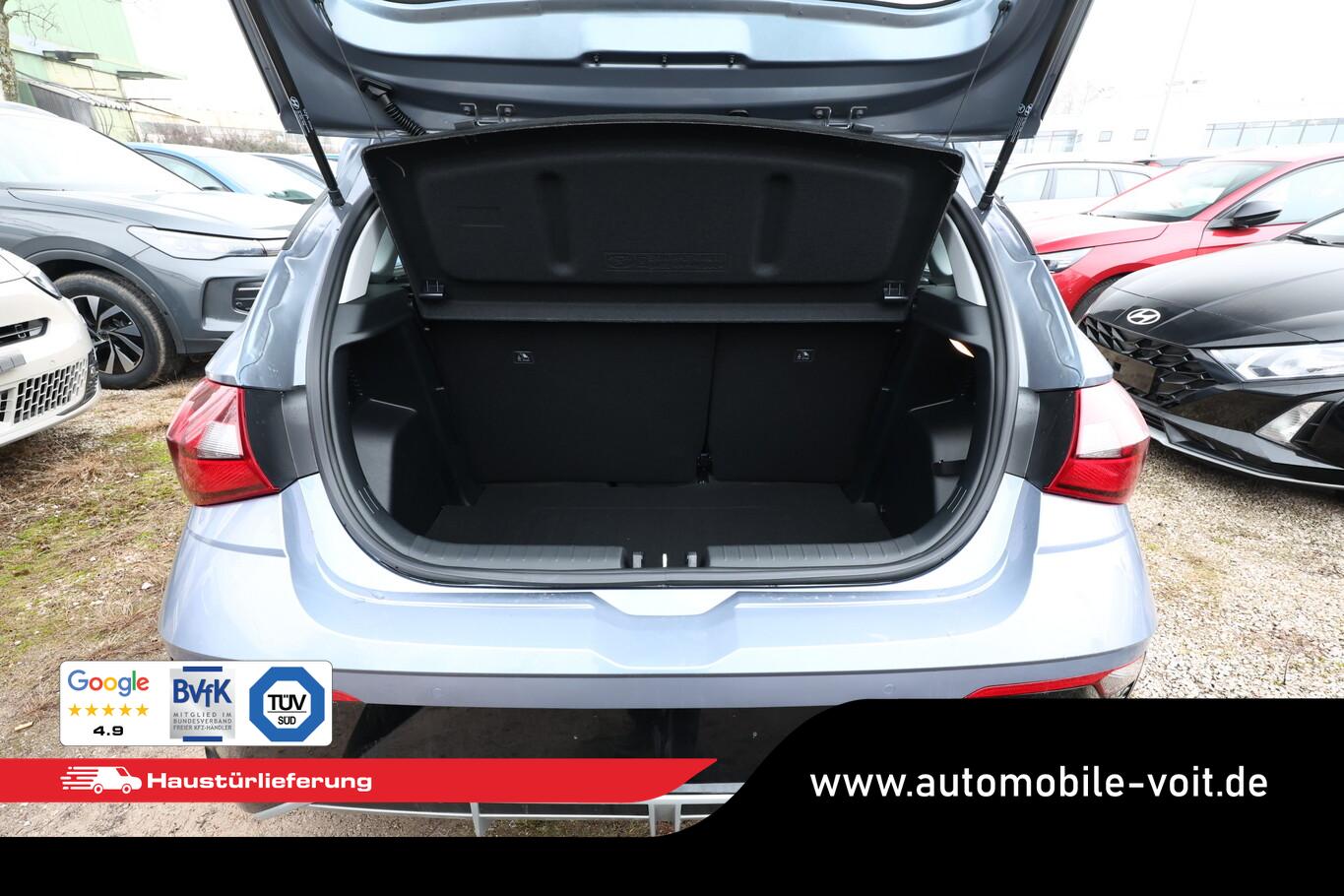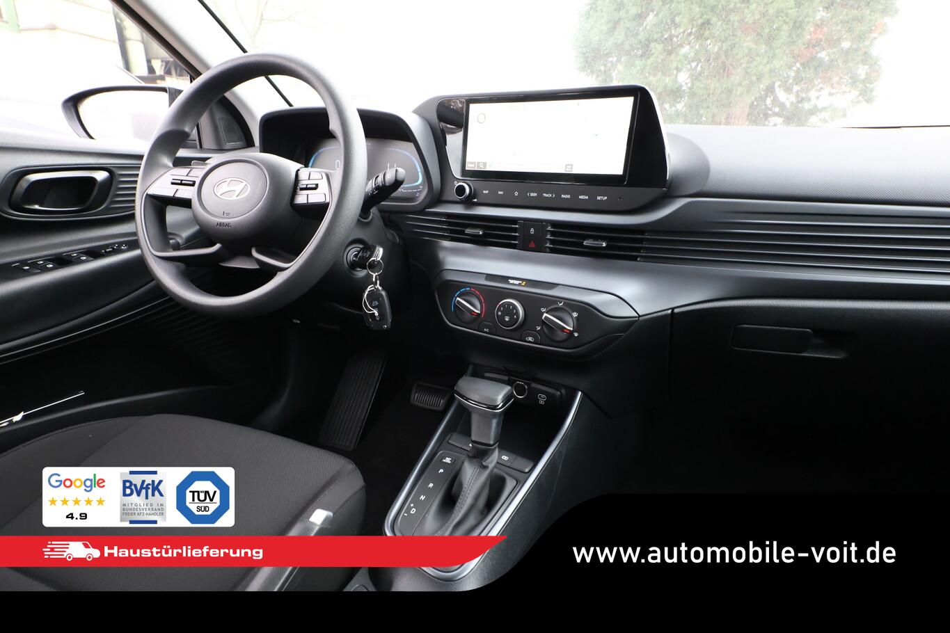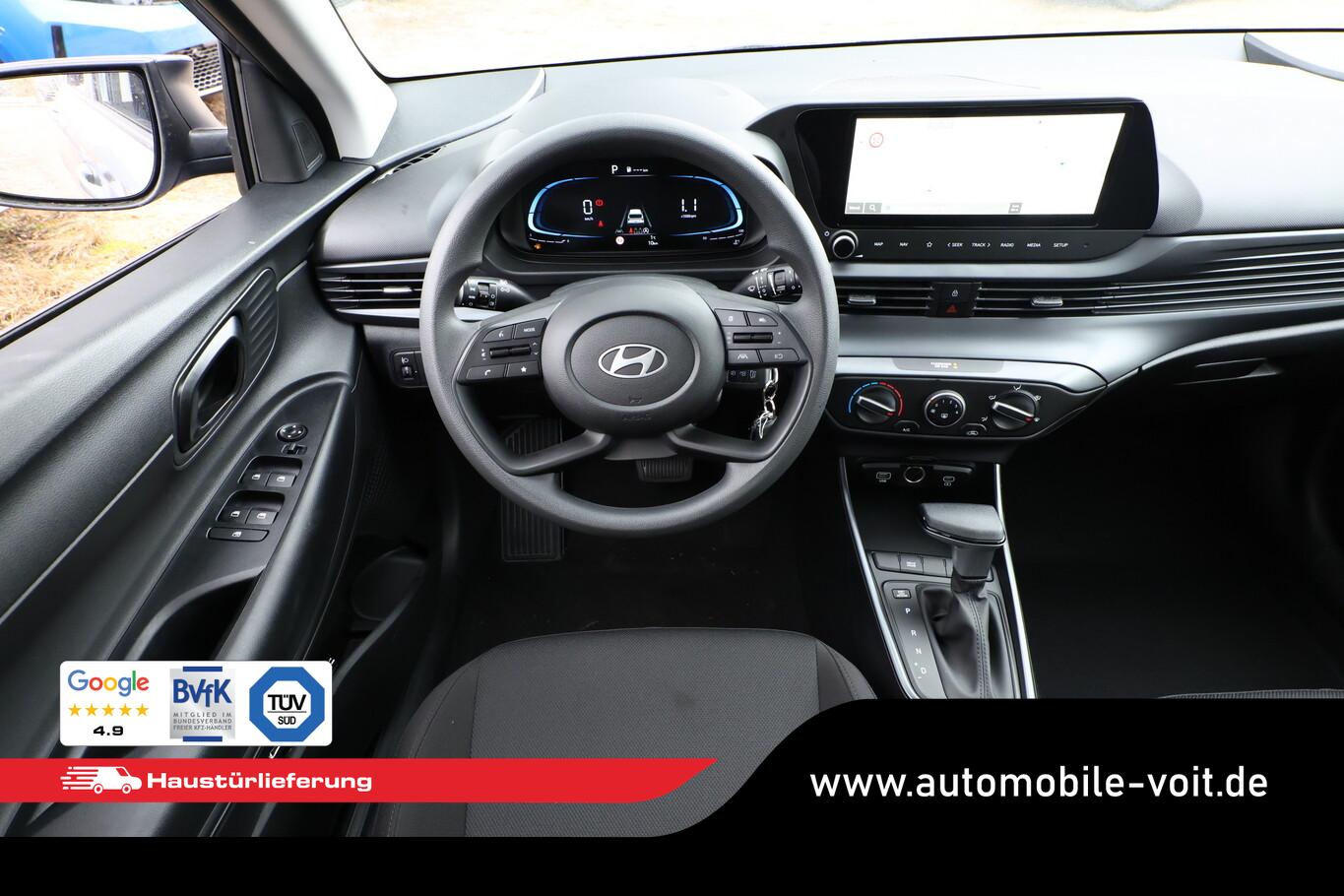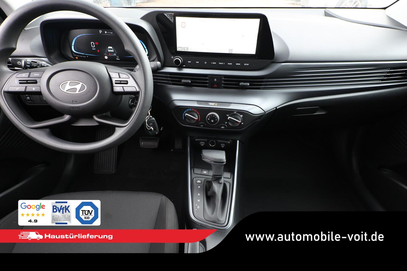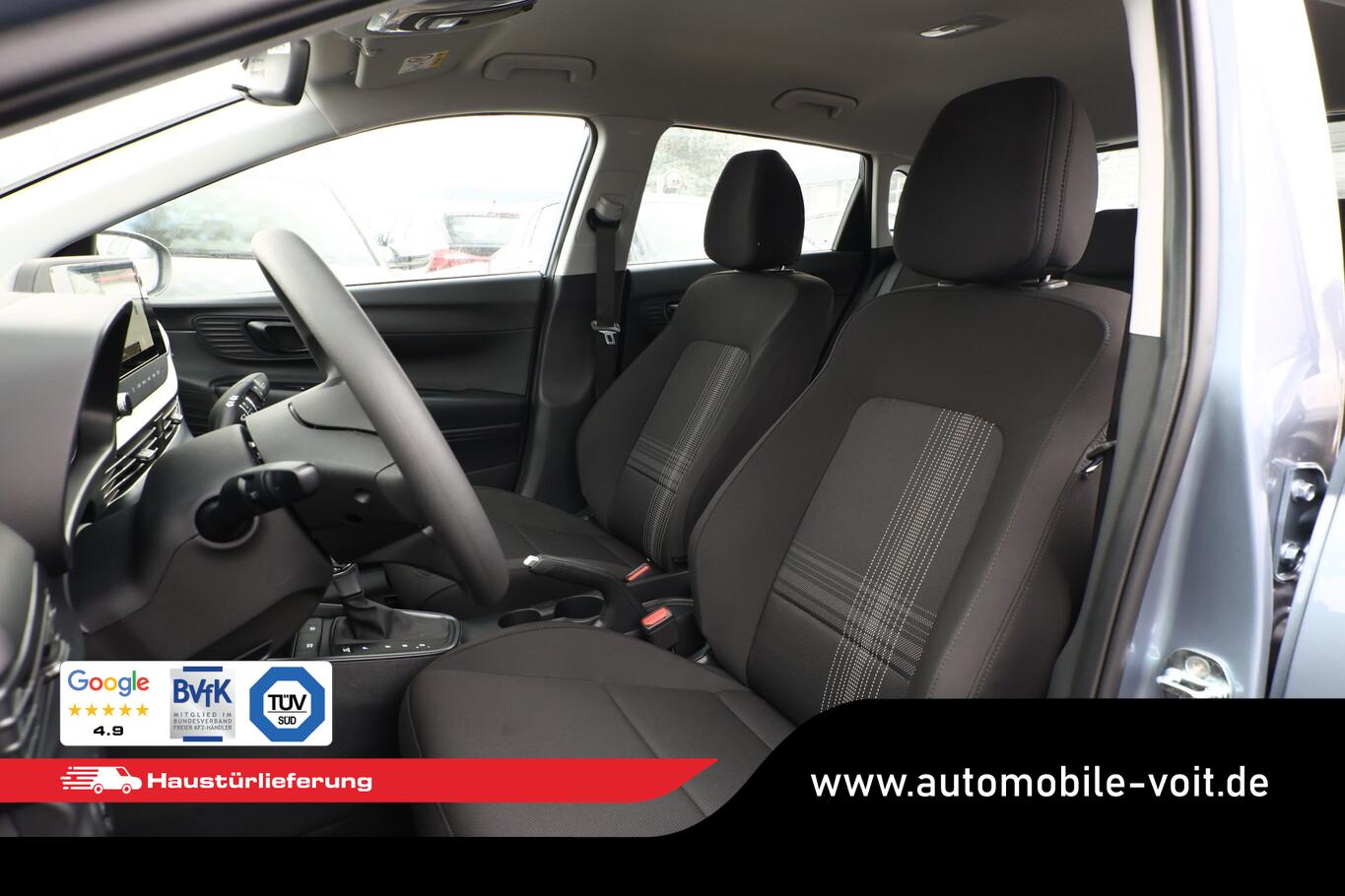 4 Lautsprecher inkl. Hochtöner, Innenspiegel abblendbar, Isofix-Aufnahmen für Kindersitz, Kopfstützen vorn verstellbar, Lenkrad mit Multifunktion, Reifen 185/65 R15, Schadstoffarm nach Abgasnorm Euro 6e (EU6 EA), SmartLink (Apple CarPlay und Android Auto), Stahlfelgen 15 Zoll, Audio-Navigationssystem (Touchscreen-Farbdisplay (10,25 Zoll)), Service-System: Remote Services (Blue Link) (Service-System: Online Update OTA (Over The Air)), Fahrassistenz-System: Autonome Notbremsfunktion inkl. Frontkollisionswarnung (FCA) (Fahrassistenz-System: Autonome Notbremsfunktion inkl. Fahrradfahrererkennung (FCA-Cyc.) / Fahrassistenz-System: Autonome Notbremsfunktion inkl. Fußgängererkennung (FCA-Ped.)), Außenspiegel lackiert, Fahrassistenz-System: Insassenalarm (ROA), Fahrassistenz-System: Multikollisionsbremse (Multi Collision Brake), Heckscheibe heizbar, Karosserie: 5-türig, Kopfstützen hinten verstellbar, Lenksäule (Lenkrad) höhenverstellbar, Lenksäule (Lenkrad) längsverstellbar, Motor 1,0 Ltr. - 74 kW TGDI KAT, Otto-Partikelfilter (OPF), Radioempfang digital (DAB+), Sitz vorn links höhenverstellbar, Sitzbezug / Polsterung: Stoff, Steckdose (12V-Anschluß) vorn, Türgriffe außen Wagenfarbe, Freisprecheinrichtung Bluetooth, USB-Anschluss (Typ C), USB-Anschluss Mittelkonsole, Anti-Blockier-System (ABS), Elektron. Stabilitätskontrolle (ESC) mit Bremsassistent, Wegfahrsperre (elektronisch), Getriebe 7-Gang - Doppelkupplungsgetriebe DCT, Klimaanlage, Airbag Beifahrerseite, Airbag Beifahrerseite abschaltbar, Airbag Fahrerseite, Fensterheber elektrisch hinten, Fensterheber elektrisch vorn, Kopf-Airbag-System, Rücksitzlehne geteilt/klappbar, Seitenairbag vorn, Zentralverriegelung mit Fernbedienung, Fahrassistenz-System: Berganfahrhilfe, Fahrassistenz-System: Verkehrszeichenerkennung, erweitert (Geschwindigkeits-Regel-/Begrenzeranlage), Geschwindigkeits-Regelanlage (Tempomat), Rückfahrkamera, Fahrassistenz-System: Sicherheitssystem mit automatischem Notruf (ERA GLONASS / eCall), Servolenkung, Außenspiegel elektr. verstell- und heizbar, beide, Einschaltautomatik für Fahrlicht / Lichtsensor, Einparkhilfe hinten, Fahrassistenz-System: aktiver Spurhalteassistent (LKAS, Lane Keep Assist System), Reifendruck-Kontrollsystem, Alarmanlage, Start/Stop-Anlage