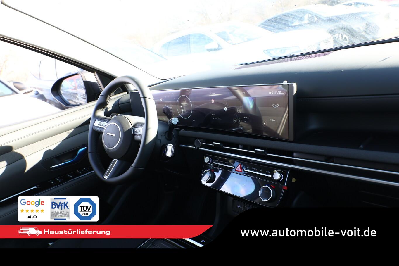 Design-Paket (Kühlergrill in dunkler Optik / Heckleuchten LED / Tagfahrlicht LED in dunkler Optik), Fahrassistenz-System: Autonome Notbremsfunktion inkl. Frontkollisionwarnung (FCA), Fahrassistenz-System: Spurfolgeassistent (LFA), Fahrassistenz-System: Totwinkel-Assistent (BCW), Frontscheibe mit Wärmeschutzverglasung, Kombiinstrument digital, Lenkrad mit Schaltfunktion, Lenksäule (Lenkrad) höhen-/längsverstellbar, LM-Felgen 17", Reifen 215/65 R17, Schadstoffarm nach Abgasnorm Euro 6e (EU6 EA), Scheinwerfer LED, Seitenscheiben hinten und Heckscheibe abgedunkelt, Smartphone-Schnittstelle (Apple CarPlay & Android Auto), Dachspoiler (3. Bremsleuchte), Lenkrad (Leder) (Lenkrad (Leder) 3-Speichen / Lenkrad (Leder) mit Multifunktion), Fahrassistenz-System: Einparkhilfe vorn und hinten (Einparkhilfe hinten), 6 Lautsprecher, Aktives Bremslicht (ESS), Anhänger-Stabilisierungs-Programm (TSA), Außenspiegel lackiert, Fahrassistenz-System: Insassenalarm (RSA), Fahrassistenz-System: Multikollisionsbremse (Multi Collision Brake), Geschwindigkeits-Begrenzeranlage (Speed-Limiter), Heckscheibe heizbar, Hybrid 158 kW (Motor 1,6 Ltr. - 118 kW T-GDI), Induktionsladeschale für Smartphone, Innenspiegel mit Abblendautomatik, Karosserie: 5-türig, Kopfstützen hinten verstellbar, Lendenwirbelstütze Sitz vorn links, elektr. verstellbar, Nebelschlussleuchte, Otto-Partikelfilter (OPF), Parkbremse elektrisch (EPB), Radioempfang digital (DAB+), Radstand 2680 mm, Schalt-/Wählhebel (Shift by Wire), Sitz vorn links höhenverstellbar, Sitzbezug / Polsterung: Stoff, Touchscreen-Farbdisplay (12,25 Zoll), Türgriffe außen Wagenfarbe, Verglasung Akustikglas, Warnanlage für Sicherheitsgurte, Fahrer-/Beifahrerseite, Audio-Navigationssystem, Freisprecheinrichtung Bluetooth, USB-Anschluss Mittelkonsole, Anti-Blockier-System (ABS), Antriebsart: Frontantrieb, Elektron. Stabilitätskontrolle (ESC) mit Bremsassistent, LM-Felgen, Wegfahrsperre (elektronisch), Getriebe Automatik - (6-Stufen), Klimaautomatik 2-Zonen, Airbag Beifahrerseite, Airbag Fahrerseite, Fensterheber elektr. mit Einklemmschutz, Fensterheber elektrisch vorn und hinten, mit Auf-/Ab-Automatik, Isofix-Aufnahmen für Kindersitz, Kopf-Airbag-System, Mittelarmlehne vorn, Rücksitzlehne geteilt/klappbar, Seitenairbag vorn, Seitenairbag vorn mitte (Central Airbag), Smart-Key, Zentralverriegelung mit Fernbedienung, Dachreling, Verglasung getönt, Fahrassistenz-System: Berganfahrhilfe, Fahrassistenz-System: Verkehrszeichenerkennung, erweitert (Geschwindigkeits-Regel-/Begrenzeranlage), Geschwindigkeits-Regelanlage (Tempomat) mit Abstandsregelung ACC, Rückfahrkamera, Fahrassistenz-System: Sicherheitssystem mit automatischem Notruf (ERA GLONASS / eCall), Service-System: Remote Services (Blue Link), Servolenkung, Außenspiegel elektr. anklappbar, Außenspiegel elektr. verstell- und heizbar, beide, Einschaltautomatik für Fahrlicht / Lichtsensor, Fahrassistenz-System: Fernlichtassistent, Scheibenwischer mit Regensensor, Fahrassistenz-System: aktiver Spurhalteassistent (LKAS, Lane Keep Assist System), Fahrassistenz-System: Aufmerksamkeits-Assistent, Reifendruck-Kontrollsystem, Start-Stop-Knopf