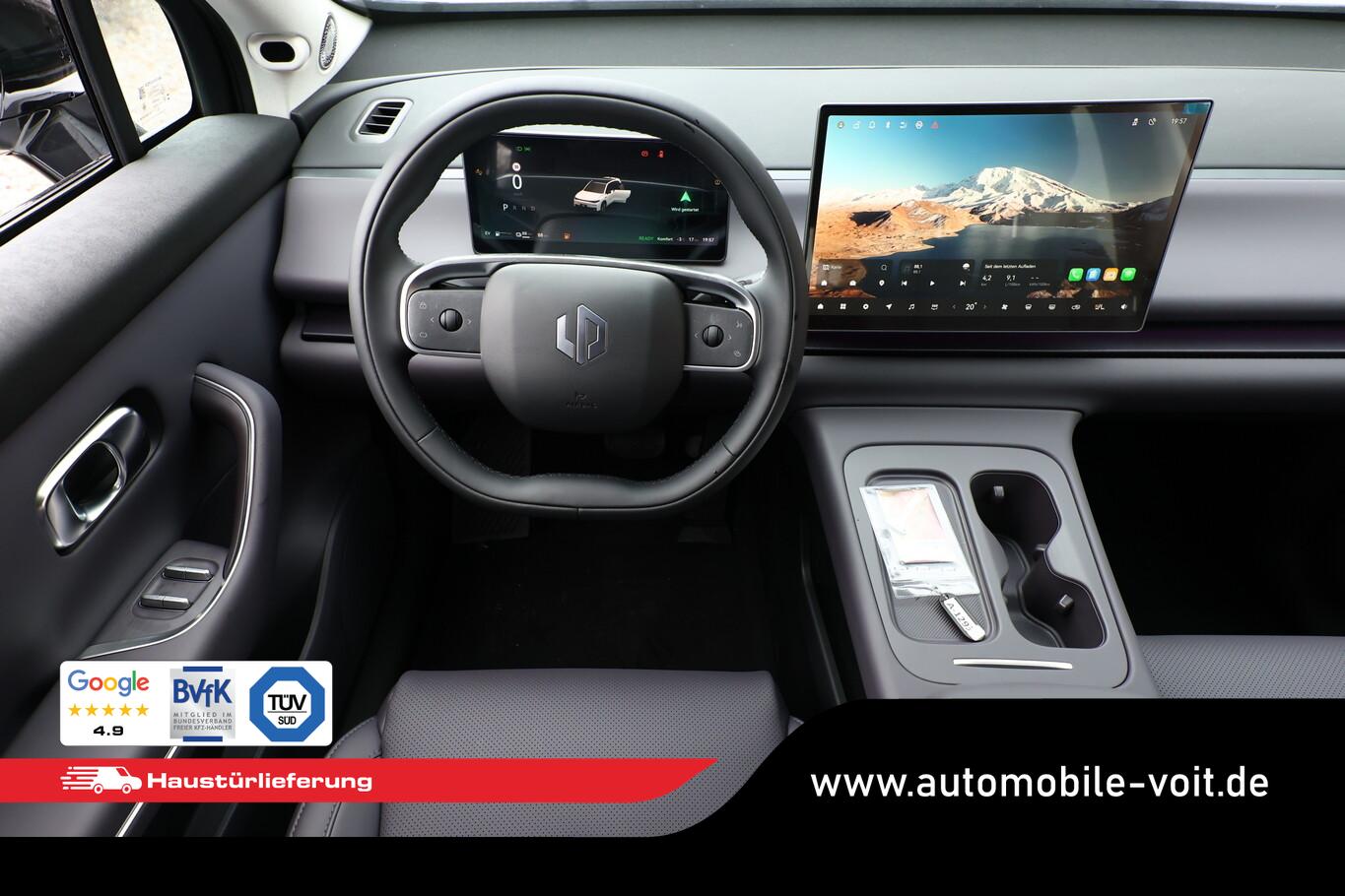 LM-Felgen 20", Ambiente-Beleuchtung, Anschlussgarantie 2 Jahre oder 100.000 km, Einparkhilfe hinten, Fahrassistenz-System: Querverkehrswarnung hinten (RCTA), Gepäckraumbeleuchtung, Getränkehalter vorn, Heckklappe elektr. betätigt, Heckscheibe heizbar, Innenausstattung: Interieur Midnight Aurora, Lenkrad heizbar, Leseleuchten vorn und hinten, Reifen 245/45 R20, Scheibenwischer mit Regensensor, Seitenscheiben hinten und Heckscheibe abgedunkelt, Sitz vorn links elektr. verstellbar, Sitzbelüftung vorn, Sitzheizung vorn, Smartphone Schnittstelle (Apple CarPlay & Android Auto), Sonnenblenden mit Spiegel (beleuchtet), Digitaler Fahrzeugschlüssel im Smartphone, Elektromotor 158 kW (Hybridantrieb), Elektromotor mit Range Extender 158 kW (Motor 1,5 Ltr. - 58 kW), Fahrassistenz-System: 360-Grad-Rundumschutz (Surround-Kamerasystem), Feststellbremse elektrisch, Induktionsladeschale für Smartphone (Wireless Charging), Infotainment-System mit Touchscreen-Farbdisplay 14,6 Zoll, Instrumentenanzeige Farbdisplay, 10,25 Zoll, Karosserie: 5-türig, Ladekabel mit Typ 2-Stecker (Mode 2), Ladekabel mit Typ 2-Stecker (Mode 3), Lenkrad (Kunstleder), NFC Schlüsselkarte, Radioempfang digital (DAB), Radstand Standard, Sound-System Surround, Steckdose (12V-Anschluß), Wärmepumpe für Heizungs-/Klimaanlage, Audio-Navigationssystem: Online, Bluetooth-Schnittstelle, Sprachsteuerungs-System, USB-Anschlüsse vorn und hinten, Anti-Blockier-System (ABS), Fahrassistenz-System: Frontkollisionswarnung, Fahrassistenz-System: Kollisionswarnsystem hinten, Antriebsart: Heckantrieb, Elektron. Stabilitätskontrolle (ESC), Elektron. Traktionskontrolle, Getriebe für Elektrofahrzeug, Klimaautomatik 2-Zonen, Airbag Fahrer-/Beifahrerseite, Fensterheber elektrisch, Isofix-Aufnahmen für Kindersitz, Keyless-Start, Kopf-Airbag-System (Windowbag), Mittelarmlehne vorn und hinten, Rücksitzlehne geteilt/klappbar (60:40), Seitenairbag vorn, Sitz vorn rechts elektr. verstellbar (4-fach), Sitzbezug / Polsterung: Kunstleder, Zentralverriegelung mit Fernbedienung, Fahrassistenz-System: Fahrprofilauswahl (Fahrmodi), Panoramadach (Glas), Adaptive Geschwindigkeitsregelanlage (ACC), Fahrassistenz-System: Berganfahr-Assistent (Hill-Holder), Fahrassistenz-System: Intelligente Geschwindigkeitsanpassung (ISA), Fahrassistenz-System: Stauassistent, Lenkrad mit Multifunktion, Außenspiegel elektr. verstell-, heiz- und anklappbar, mit Memory, Einschaltautomatik für Fahrlicht, Fahrassistenz-System: Totwinkel-Assistent (BSD), Heckleuchten LED, Nebelscheinwerfer LED, Scheinwerfer LED, Tagfahrlicht LED, Fahrassistenz-System: aktiver Spurhalteassistent (LKA), Fahrassistenz-System: Aufmerksamkeits-Assistent (Müdigkeitserkennungs-Sensor), Fahrassistenz-System: Autonomer Notbrems-Assistent (AEB), Fahrassistenz-System: Spurverlassenswarnung (LDW), Reifendruck-Kontrollsystem (TPMS)