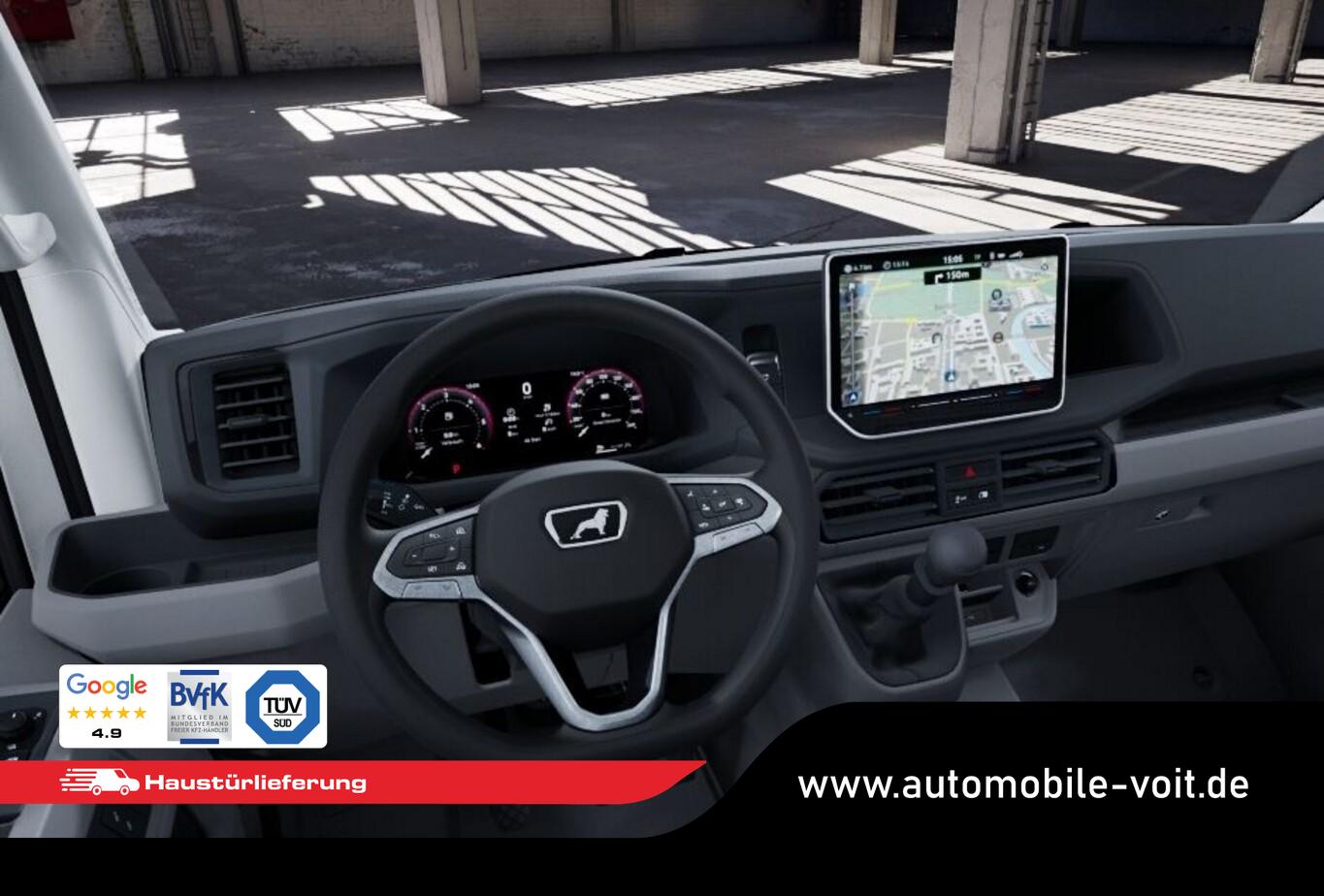 Klimaanlage Climatic (Fahrerhaus), Geschwindigkeits-Regelanlage (Tempomat) inkl. Geschwindigkeits-Begrenzeranlage, Sitze im Fahrerhaus: Beifahrerdoppelsitz mit Stau-/Ablagefach, Rückfahrkamera, Vorbereitung Anhängerkupplung (Steckdose und Kabel) (Anhänger-Stabilisierungs-Programm), Außenspiegel elektr. verstell- und heizbar, Batterie 520 A (92 Ah), Elektrische Klemmleiste und Vorbereitung für Funktionssteuergerät (KFG), Feststellbremse elektrisch, Kombiinstrument digital, MAN Media Van inkl. 10,4"-Touchscreen, 4 Lautsprecher, MAN SmartLink (Apple CarPlay & Android Auto), Navigation in Verbindung mit dem Smartphone (über Apple Carplay / Android Auto /...), Reifen 205/75 R16, Schadstoffarm nach Abgasnorm Euro 6e (EU6 EA), Schlüsselloses Startsyste Keyless Go, Stahlfelgen 6,5x16, Ablage-Paket 2 (Ablagen: 2 DIN-Schacht vorn unter Dachhimmel / Innenleuchten im Fahrerhaus: Leseleuchte vorn), Fahrassistenz-System: Umfeldbeobachtungssystem (Front Assist) mit City-Notbremsfunktion (Fahrassistenz-System: City-Notbremsfunktion), Außenspiegel konvex, links, Außenspiegel konvex, rechts, Blinkleuchten LED in Außenspiegel integriert, Doppelscheinwerfer, Einstiegsgriff an Hecksäule hinten links, Einstiegsgriff an Hecksäule hinten rechts, Frontscheibe Verbundglas, Funkschlüssel (2) klappbar, Heckflügeltüren ohne Verglasung, Innenleuchten im Lade-/FG-Raum: LED, Karosserie/Aufbau: Kasten Hochraum Standard, Karosserievariante: Hochdach in Wagenfarbe, Kraftstofftank: 75 Ltr., Kühlergrill mit Chromleiste oben, LKW-Zulassung, Motor 2,0 Ltr. - 130 kW TDI, Radioempfang digital (DAB+), Radstand 3640 mm, Schiebetür Lade-/Fahrgastraum rechts, SCR-System (AdBlue-Technologie), Sitzbezug / Polsterung: Stoff, Sitze im Fahrerhaus: Fahrersitz verstellbar, Steckdosen (12V-Anschluß) im Fahrerhaus (2 Stück), Stoßfänger vorn in Grau, Warnanlage für Sicherheitsgurte (Fahrer-/Beifahrerseite), Zul. Gesamtgewicht 3,50 t, Mobiltelefon Schnittstelle Bluetooth, Multimedia-Schnittstelle 2 x USB (Typ C) vorn, Anti-Blockier-System (ABS), Antriebsart: Frontantrieb, Elektron. Stabilitäts-Programm (ESP), Wegfahrsperre (elektronisch), Getriebe 6-Gang, Airbag Fahrer-/Beifahrerseite, Beifahrerairbag abschaltbar, Laderaumtrennwand hoch ohne Fenster, Zentralverriegelung mit Fernbedienung und Innenbetätigung, Wärmeschutzverglasung, Fahrassistenz-System: Berganfahr-Assistent, Notrufsystem, Lenkrad mit Multifunktion, Servolenkung elektro-mechanisch, Automatische Fahrlichtschaltung, Regensensor, Tagfahrlicht, Fahrassistenz-System: Einparkhilfe vorn und hinten, Fahrassistenz-System: Müdigkeitserkennungs-Sensor, Fahrassistenz-System: Seitenwind-Assistent, Fahrassistenz-System: Spurhalteassistent (Lane Assist), Reifendruck-Kontrollsystem, Rußpartikelfilter, Start/Stop-Anlage Motor