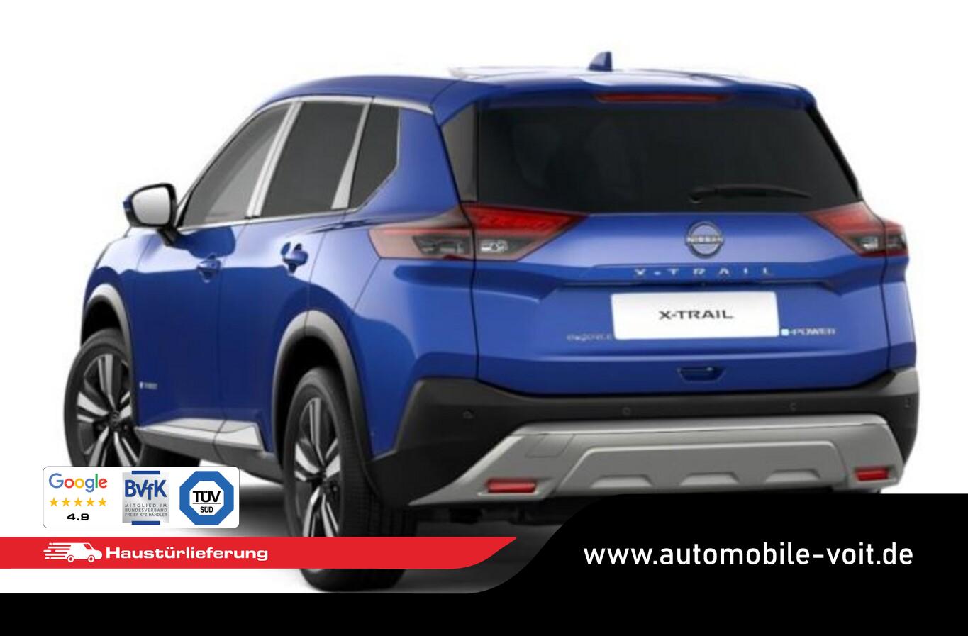 Panorama-Glasdach, 2 USB-Anschlüsse vorn, Einparkhilfe seitlich, Fahrassistenz-System: Kreuzungsassistent, Fahrmodi: Standard, Sport, Eco, Snow, Off-Road, Frontscheibe heizbar, Geschwindigkeits-Begrenzeranlage, Klimaautomatik 3-Zonen, Lendenwirbelstützen vorn elektr. verstellbar, Lenkrad heizbar, LM-Felgen 19", Reifen 235/55 R19, Sitz vorn links und rechts höhenverstellbar, Sitzheizung vorn und hinten, Sonnenschutzrollo an Türscheiben hinten, Fahrassistenz-System: ProPilot mit Navi-Link (Fahrassistenz-System: Autonomer Lenk-Assistent für selbstständiges Spurhalten / Fahrassistenz-System: Autom. Distanzregelung mit vorausschauender Geschw.-Regelung / Fahrassistenz-System: Stauassistent inkl. Stop&Go-Funktion), Ausstattungs-Paket: Nissan Connect Navigationssystem (Radioempfang digital (DAB) / Touchscreen-Farbdisplay (12,3 Zoll) / Bluetooth-Schnittstelle / Freisprechanlage Bluetooth / Navigationssystem / Smartphone Schnittstelle (Apple CarPlay & Android Auto) / Sprachbediensystem Spracherkennung / Around View Monitor (360° Umgebungsansicht) / Kamerasystem Around View / Service-System: Amazon Alexa / Service-System: Google Services / Service-System: Nissan Connect Services), Scheinwerfer Voll-LED (Fahrassistenz-System: Adaptiver Fernlichtassistent), Ambiente-Beleuchtung Mittelkonsole, Ambiente-Beleuchtung Türverkleidung vorn, Elektr. Bremskraftverteilung (EBD), Elektromotor 150 kW (Hybridantrieb), Elektromotor mit Range Extender 157 kW (Motor 1,5 Ltr. - 116 kW), Fahrassistenz-System: ProPilot Park, Induktionsladeschale für Smartphone, Innenspiegel mit Abblendautomatik, Instrumentenanzeige TFT-Farbdisplay (12,3 Zoll), Karosserie: 5-türig, Otto-Partikelfilter (OPF), Parkbremse elektrisch, Radstand 2705 mm, USB-Anschluss im Fond, Anti-Blockier-System (ABS), Antriebsart: Allradantrieb, Elektron. Stabilitäts-Programm (ESP), Getriebe für Elektrofahrzeug, Airbag Fahrer-/Beifahrerseite, Isofix-Aufnahmen für Kindersitz, Keyless-Entry, Kopf-Airbag-System, Rücksitzbank verschiebbar, Rücksitzlehne geteilt (40:20:40), Schließ-/Startsystem intelligent key, Seitenairbag vorn, Seitenairbag vorn mitte (Center-Airbag), Sitz vorn links elektr. verstellbar (mit Memory), Sitz vorn rechts elektr. verstellbar (mit Memory), Sitzbezug / Polsterung: Kunstleder, Verglasung hinten abgedunkelt, Fahrmodusschalter, Head-up-Display, Dachreling, Heckklappe/-Deckel elektr. betätigt (Öffnung, sensorgesteuert), Auto-Hold-Funktion, Fahrassistenz-System: Auffahrwarnsystem (Forward Collision Warning, FCW), Fahrassistenz-System: Verkehrszeichenerkennung, Rückfahrkamera, Fahrassistenz-System: Sicherheitssystem ERA GLONASS mit automatischem Notruf, Lenkrad (Leder) mit Multifunktion, Außenspiegel elektr. anklappbar, Außenspiegel elektr. verstell- und heizbar, Fahrassistenz-System: Totwinkel-Assistent, Heckleuchten LED, Licht- und Regensensor, Tagfahrlicht LED, Einparkhilfe hinten, Einparkhilfe vorn, Fahrassistenz-System: Intelligenter Parklenkassistent, Fahrassistenz-System: Autonomer Notbrems-Assistent, Fahrassistenz-System: Müdigkeitserkennungs-Sensor, Fahrassistenz-System: Querverkehrs-Assistent Heck (Rear Cross Traffic Alert, RCTA), Reifendruck-Kontrollsystem