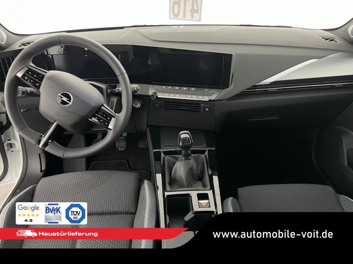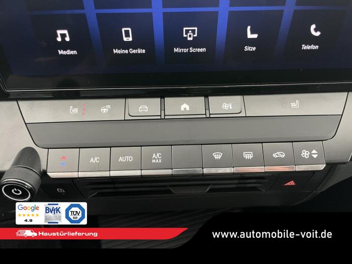 Multimedia Infotainment System mit 10?-Fahrerinfodisplay und 10?-Touchscreen-Farbdisplay (Pure Panel), 6 Lautsprecher, Digitaler Radioempfang (DAB+), Freisprecheinrichtung via Bluetooth-Schnittstelle, Haifischflossenantenne in Hochglanz-schwarz, Kabellose Smartphone-Integration via Apple CarPlay und Android Auto, USB-Anschluss und USB-Ladegerät, Automatisches Abblendlicht, Fernlicht-Assistent, LED-Blinker, LED-Innenraumbeleuchtung inkl. Leseleuchten, vorn und hinten, sowie Kofferraumbeleuchtung, LED-Rückleuchten, LED-Scheinwerfer, LED-Tagfahrlicht, manuelle Scheinwerfer-Leuchtweitenregulierung, Solar Protect®-Wärmeschutzverglasung, stark getönt, im Fond, Innenrückspiegel, autom. abblendend, Lenkrad aus veganem Kunstleder, abgeflacht, mit Lenkradfernbedienung, Lenkradheizung, Mittelkonsole mit Getränkehalter, Staufächer, Ein-Zonen-Klimatisierungsautomatik, Komfort-Paket Edition, 16''-Leichtmetallfelgen mit Allwetterreifen, Reifen-Reparatur-Set, Not- und Pannenruf, 2-Wege-Kopfstützen, Beifahrersitz 6-fach einstellbar (Länge, Höhe, Lehnenneigung), Fahrersitz: Ergonomischer Sport-Aktiv-Sitz (AGR1), 10-fach einstellbar (Länge, Höhe, Lehnenneigung, Sitzkissenneigung, Oberschenkelauflage, Sitzheizung, merhstufig für Fahrer und Beifahrer, Automatischer Geschwindigkeits-Assistent, Frontkollisionswarner mit automatischer Gefahrenbremsung, Fußgängererkennung, Müdigkeitserkennung, Regensensor, Schlüsselloses Startsystem ?Keyless Start?, Spurhalte-Assistent, Verkehrsschilderkennung, Außenspiegel: elektrisch einstell- und beheizbar, manuell anklappbar, Außenspiegelgehäuse in Schwarz, Dach-Designlinie in Schwarz, Dachreling, Opel Vizor mit Rahmen in Hochglanzschwarz, EU-Fahrzeug mit Tageszulassung