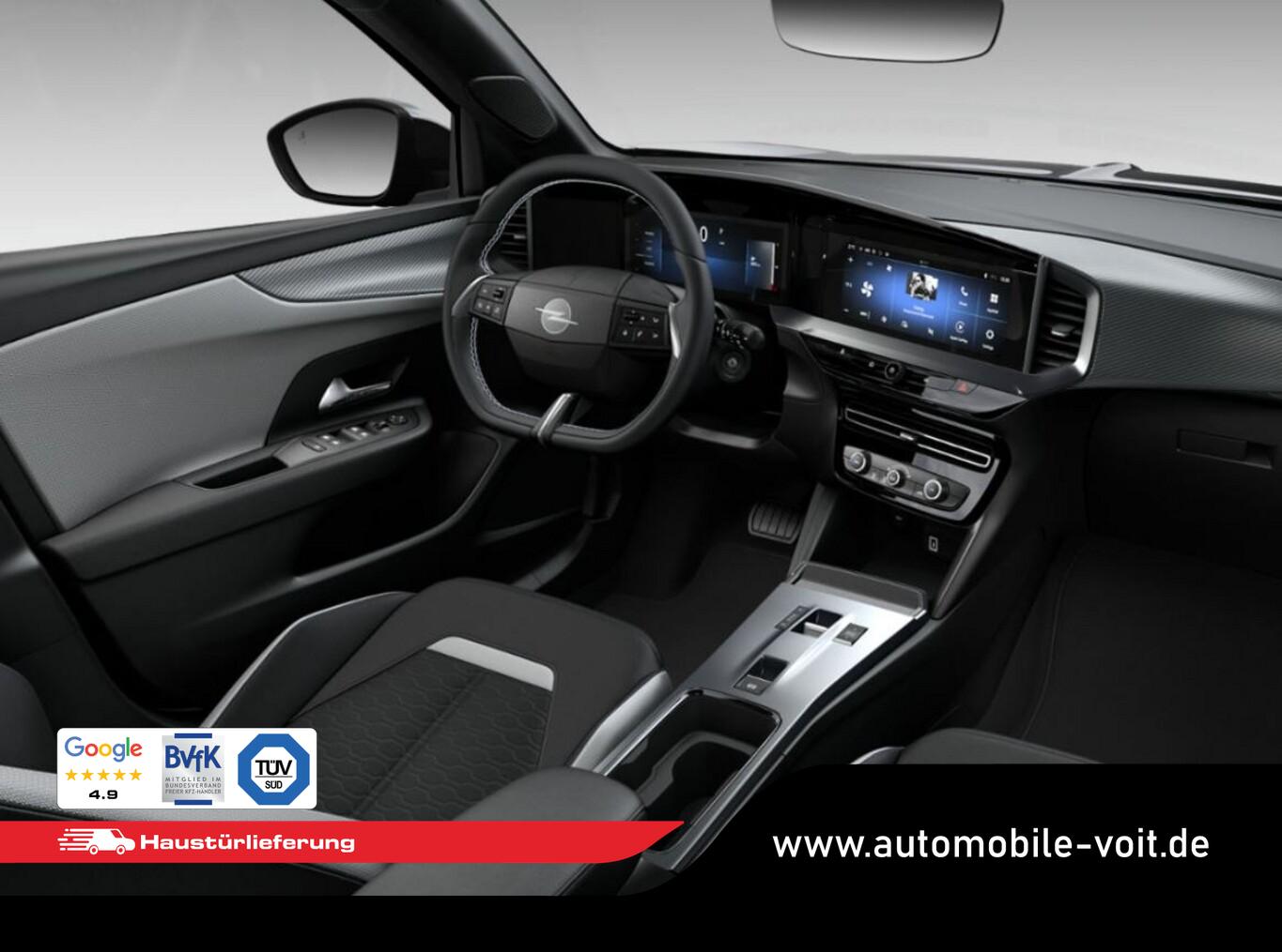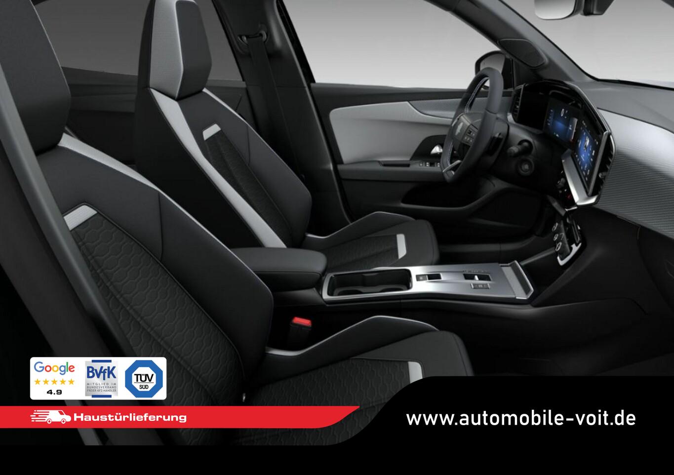 Winter-Paket (Lenkrad heizbar / Sitzheizung vorn), Komfort-Paket (Fahrzeugschlüssel (2) beide klappbar / Gepäck-/Laderaumboden doppelt / Innenspiegel rahmenlos mit Abblendautomatik / USB-Schnittstelle hinten (2-fach) / Mittelarmlehne vorn mit Ablagefach / Seitenscheiben hinten abgedunkelt / Wärmeschutzverglasung hinten abgedunkelt (Solar-Protect)), Parkpilotsystem hinten, Airbag Fahrer-/Beifahrerseite, Außenspiegel elektr. verstell- und heizbar, Außenspiegelgehäuse in Schwarz, Beifahrersitz 4-fach manuell einstellbar, Fahrassistenz-System: Autonomer Notbremsassistent, Fahrassistenz-System: Berganfahrassistent, Fahrassistenz-System: Spurhalteassistent, Fahrersitz 6-fach manuell einstellbar, Fensterheber elektr. vorn + hinten, Geschwindigkeits-Begrenzeranlage, Geschwindigkeits-Regelanlage (Tempomat), Isofix-Aufnahmen für Kindersitz, Kabellose Smartphone-Schnittstelle (Apple CarPlay & Android Auto), Klimaautomatik, Kombiinstrument digital (10"), Lenkrad (Kunstleder), Leseleuchten vorn und hinten, Multimedia Infotainment inkl. 10"-Touchscreen, 6 Lautsprecher, Navigation in Verbindung mit dem Smartphone (über Apple Carplay / Android Auto /...), Notrufsystem, Opel Blitz vorne in Silber, hinten und Modellname hinten in Schwarz, Reifendruckkontrollsystem, Rücksitzlehne geteilt/umklappbar (60:40), Scheibenwischer mit Regesensor, Servolenkung (elektrisch), Sommerreifen 215/65 R16, Sonnenblenden mit Spiegel, Start/Stopp System, USB-Anschluss (Typ C), Zentralverriegelung mit Fernbedienung, Bluetooth Audio-Streaming, DAB-Tuner (Radioempfang digital), Dach Wagenfarbe, Dachhimmel schwarz, Dachspoiler, Feststellbremse elektrisch, Karosserie: 5-türig, Mild-Hybrid 107 kW (Motor 1,2 Ltr. - 100 kW), Radstand 2557 mm, Sitzbezug / Polsterung: Stoff, Stahlfelgen 6,5x16, Freisprecheinrichtung Bluetooth, Anti-Blockier-System (ABS), Antriebsart: Frontantrieb, Elektron. Stabilitäts-Programm Plus (ESP), Getriebe Automatik - Doppelkupplungsgetriebe (6-Stufen, Hybrid), Kopf-Airbag-System, Seitenairbag vorn, Fahrassistenz-System: Verkehrszeichenerkennung, Einschaltautomatik für Fahrlicht, Fahrassistenz-System: Fernlichtassistent, Heckleuchten LED, Scheinwerfer LED, Tagfahrlicht LED, Fahrassistenz-System: Müdigkeitserkennungs-Sensor