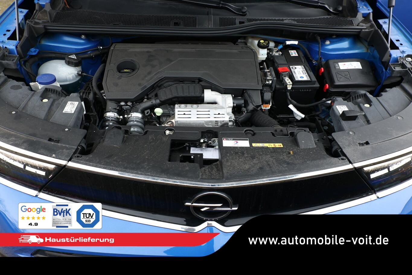 Wärmeschutzverglasung hinten abgedunkelt (Solar-Protect), Airbag Fahrer- und Beifahrerseite, Ambiente-Beleuchtung LED, Audiosystem Multimedia inkl. 7"-Touchscreen, Einschaltautomatik für Fahrlicht, Fahrassistenz-System: Notbremsassistent, Fahrassistenz-System: Spurhalteassistent (Lane Assist), Fensterheber elektrisch vorn + hinten, Gepäcktaschen an Rückseite der Vordersitzlehnen, Geschwindigkeits-Regelanlage (Tempomat), Innenspiegel mit Abblendautomatik, Isofix-Aufnahmen für Kindersitz, Kombiinstrument digital (7 Zoll), Lenkrad (Leder) mit Multifunktion, LM-Felgen 17", Mittelarmlehne vorn, Navigation in Verbindung mit dem Smartphone (über Apple Carplay / Android Auto /...), Reifen 215/60 R17, Reifendruck-Kontrollsystem, Rücksitzlehne geteilt/klappbar (60:40), Schadstoffarm nach Abgasnorm Euro 6e (EU6 EA), Sitze vorn verstellbar (6-fach), Smartphone-Schnittstelle (Apple CarPlay & Android Auto), Parkpilotsystem hinten (Rückfahrkamera mit 180° Umgebungsansicht), Bluetooth Audio-Streaming, DAB-Tuner (Radioempfang digital), Feststellbremse elektrisch, Karosserie: 5-türig, Motor 1,2 Ltr. - 74 kW, Opel Connect, Otto-Partikelfilter (OPF), Radstand 2557 mm, Freisprecheinrichtung Bluetooth, Anti-Blockier-System (ABS), Antriebsart: Frontantrieb, Elektron. Stabilitäts-Programm Plus (ESP), Getriebe 6-Gang, Klimaanlage, Kopf-Airbag-System, Seitenairbag vorn, Fahrassistenz-System: Verkehrszeichenerkennung, Heckleuchten LED, Scheinwerfer LED, Fahrassistenz-System: Müdigkeitserkennungs-Sensor