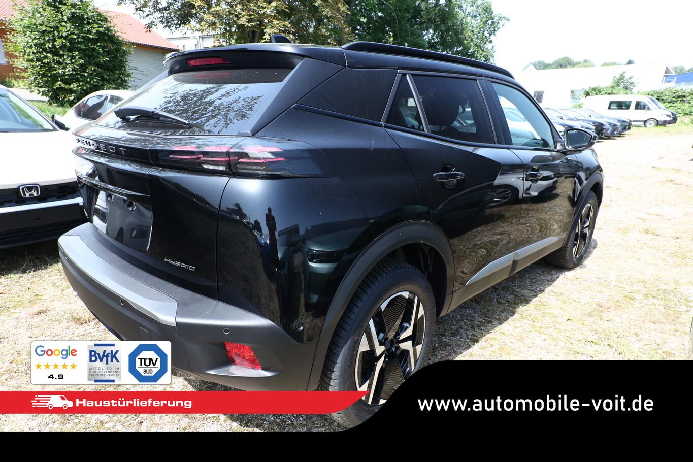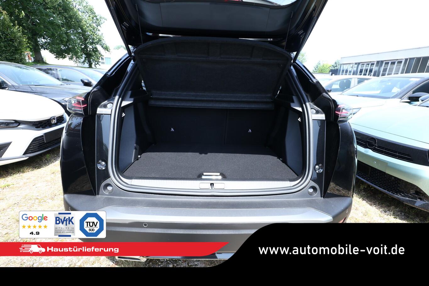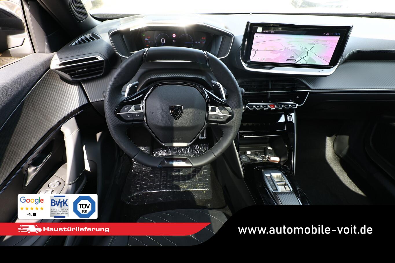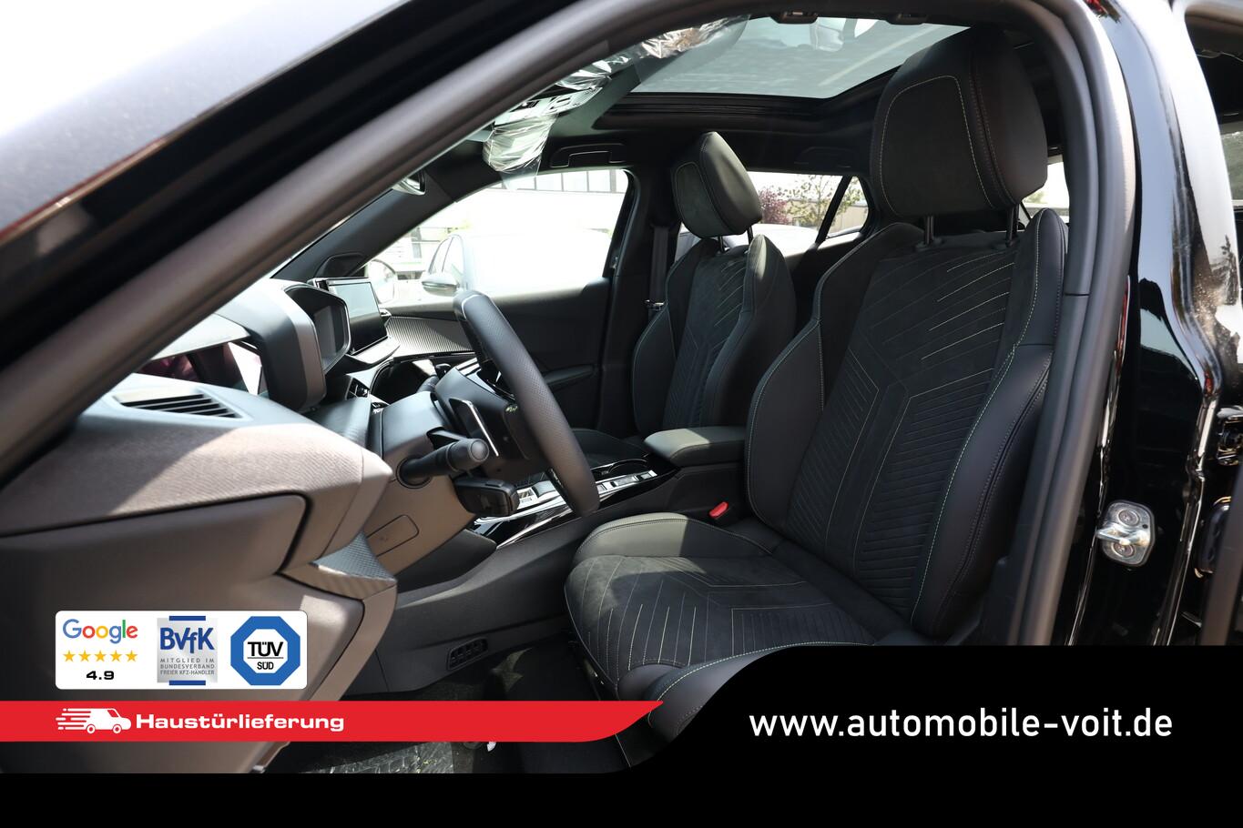 Alcantara-Paket (Lendenwirbelstütze Sitz vorn links, elektr. verstellbar / Sitz vorn links mit Einstiegs- und Massagefunktion / Sitzbezug / Polsterung: Alcantara / Kunstleder / Sitz vorn links elektr. verstellbar / Sitzheizung vorn), Schiebe-/Hebedach elektrisch (Glas), Ausstattungs-Paket: Vision, Navigation und Drive Assist (Induktionsladeschale für Smartphone / Multifunktionsanzeige mit Farbdisplay (DGT10CHD) / Navigationssystem i-Connect Advanced / Fahrassistenz-System: Aktiver Notbrems-Assistent (Active Safety Brake Plus) / Adaptive Geschwindigkeitsregelanlage (ACC) / Fahrassistenz-System: Autom. Distanzregelung (ACC inkl. Stop&Go-Funktion) / Rückfahrkamera mit 360° Umgebungsansicht / Peugeot Connect-Box / SOS-Taste (Notruf für Lokalisierung Fahrzeug) / Außenspiegel mit Umfeldleuchte / Fahrassistenz-System: Totwinkel-Assistent (SAM) / Fahrassistenz-System: aktiver Spurpositionierungsassistent), Grip-Control-Paket (Fahrmodusschalter (Adaptives Traktionssystem) / Fahrassistenz-System: Bergabfahrhilfe), 6 Lautsprecher, Allwetterbereifung, BT-Freisprechanlage, Fensterheber elektr. hinten, Kombiinstrument digital, Lenkrad (Leder), LM Felgen 17 Zoll (schwarz), Reifen 215/60 R17, Schadstoffarm nach Abgasnorm Euro 6e (EU6 EA), USB-Schnittstelle, Pedale Aluminium (Einstiegsleisten (Edelstahl - gebürstet)), Seitenscheiben hinten und Heckscheibe dunkel getönt (Heckscheibe getönt), Zentralverriegelung / Startanlage Keyless System (Startanlage Keyless System), Außenspiegel elektr. anklappbar (Außenspiegel anklappbar / Außenspiegel mit Umfeldleuchte), Scheinwerfer Full-LED (Leuchtweitenregelung elektrisch), Einparkhilfe vorn und hinten (Einparkhilfe hinten), Ambiente-Beleuchtung LED, Außenspiegel mit Abdeckkappen schwarz, Dachhimmel schwarz, Elektr. Bremskraftverteilung, Fensterzierleisten schwarz glänzend, Fußraumleuchte Fahrer, Beifahrer, Innenraumfilter: Staub- und Pollenfilter, Innenspiegel mit Abblendautomatik, Karosserie: 5-türig, Kartentasche an Vordersitze, Mobile Online Dienste MirrorLink und AppinCar (Mirror Screen), Otto-Partikelfilter (GPF), Parkbremse elektrisch, Pyrotechnischer Gurtstraffer, Radstand 2605 mm, Sitze vorn höhenverstellbar, Sonnenblenden mit Spiegel (beleuchtet), Türgriffe außen Wagenfarbe, Warnanlage für Sicherheitsgurte, Anti-Blockier-System (ABS), Fahrassistenz-System: Aktiver Notbrems-Assistent (Active Safety Brake), Antischlupfregelung (ASR), Antriebsart: Frontantrieb, Elektron. Stabilitäts-Programm (ESP, Bosch), Getriebe Automatik - Doppelkupplungsgetriebe (6-Stufen, Hybrid), Klimaautomatik, Airbag Beifahrerseite abschaltbar, Airbag Fahrer-/Beifahrerseite, Fensterheber elektr. vorn, links mit Impulsgeber, Isofix-Aufnahmen für Kindersitz, Isofix-Aufnahmen für Kindersitz an Beifahrersitz, Kopf-Airbag-System, Kopf-Airbag-System hinten, Mittelarmlehne vorn, Seitenairbag vorn, Verzurrösen Laderaum, Zentralverriegelung inkl. Türverriegelung automatisch, Zentralverriegelung mit Fernbedienung, Bordcomputer, Dachreling schwarz, Fahrassistenz-System: Berganfahrhilfe, Lenkrad mit Multifunktion, Servolenkung elektrisch, Außenspiegel elektr. verstell- und heizbar, beide, Blinkleuchte in Außenspiegel integriert, Einschaltautomatik für Fahrlicht, Fahrassistenz-System: Fernlichtassistent, Scheibenwischer mit Regensensor, Tagfahrlicht LED, Fahrassistenz-System: aktiver Spurassistent (Lenkunterstützung), Fahrassistenz-System: Müdigkeitserkennungs-Sensor, Reifendruck-Kontrollsystem