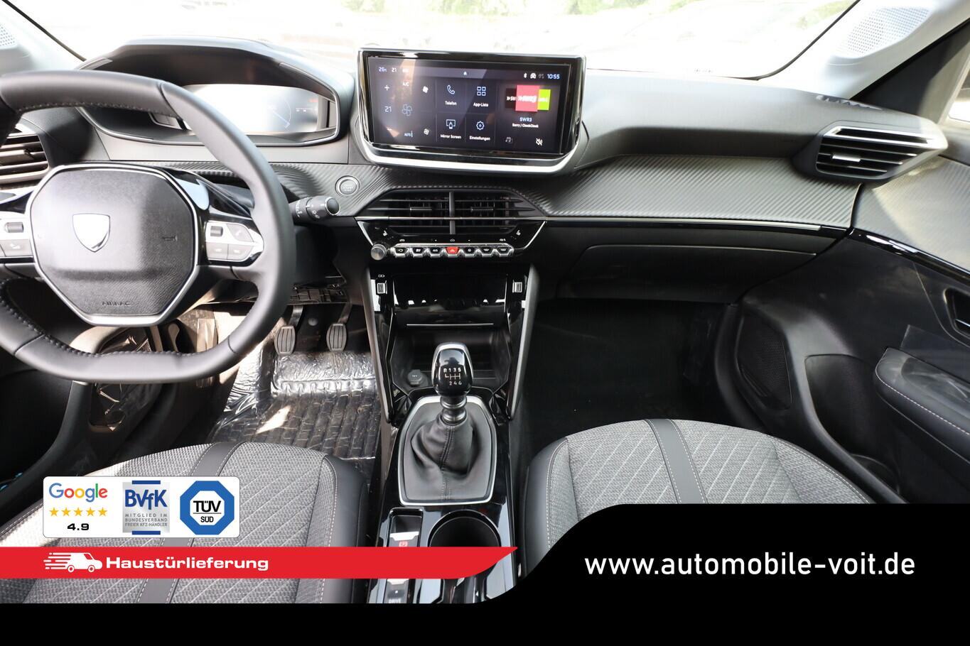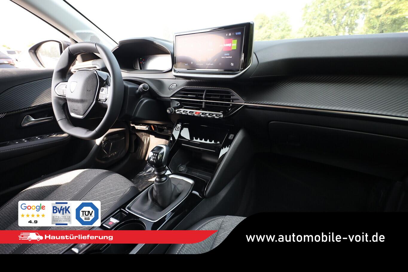 Sicht & Navigations-Paket (Multifunktionsanzeige mit HD Touchscreen-Farbdisplay 10 Zoll / Navigationssystem i-Connect Advanced / USB-Anschlüsse (Typ C und Typ A) / USB-Schnittstelle / Rückfahrkamera mit 360° Umgebungsansicht / Peugeot Connect-Box / SOS-Taste (Notruf für Lokalisierung Fahrzeug) / Fahrassistenz-System: Totwinkel-Assistent (SAM)), Reifen-Reparaturkit, 6 Lautsprecher, Bluetooth-Freisprechanlage, Kombiinstrument digital 10 Zoll, Kopf-Airbag-System vorn, Laderaumbeleuchtung, LM-Felgen 16 Zoll, MirrorLink (Android Auto/Apple Carplay), Navigation in Verbindung mit dem Smartphone (über Apple Carplay / Android Auto / ...), Reifen 195/55 R16, Elektrik-Paket (Fensterheber elektrisch hinten, sequentiell, mit Einklemmschutz / Innenspiegel mit Abblendautomatik / Fensterheber elektrisch vorn / Fensterheber elektrisch vorn links / Außenspiegel elektr. anklappbar / Außenspiegel mit Umfeldleuchte), Komfort-Paket (Klimaautomatik / Scheibenwischer mit Regensensor), Radioempfang digital (DAB+) (Radioempfang digital), Fensterheber elektr. vorn, rechts mit Impulsgeber (Fensterheber elektrisch vorn rechts), Zentralverriegelung mit Fernbedienung (Fernbedienung für Zentralverriegelung), Außenspiegel elektr. verstell- und heizbar, beide (Außenspiegel elektr. verstell- und heizbar, links / Außenspiegel elektr. verstell- und heizbar, rechts), Außenspiegel mit Abdeckkappen schwarz, Frontscheibe geräuschdämmend, Heckscheibe heizbar, Heckspoiler, Innenraumfilter: Staub- und Pollenfilter, Karosserie: 5-türig, Kartentasche an Vordersitze, Mobile Online Dienste Mirror Screen, Motor 1,2 Ltr. - 74 kW PureTech, Otto-Partikelfilter (GPF), Parkbremse elektrisch, Pyrotechnischer Gurtstraffer, Sitz vorn links höhenverstellbar, Steckdose (12V-Anschluß) in Mittelkonsole, Türgriffe außen Wagenfarbe, Warnanlage für Sicherheitsgurte, Anti-Blockier-System (ABS), Fahrassistenz-System: Aktiver Notbrems-Assistent (Active Safety Brake), Antischlupfregelung (ASR), Elektron. Stabilitäts-Programm (ESP, Bosch), Getriebe 6-Gang, Airbag Beifahrerseite abschaltbar, Airbag Fahrer-/Beifahrerseite, Fensterheber elektrisch vorn links, sequentiell, Isofix-Aufnahmen für Kindersitz, Kopf-Airbag-System hinten, Mittelarmlehne vorn, Seitenairbag vorn, Seitenscheiben hinten und Heckscheibe dunkel getönt, Sitzheizung vorn, Zentralverriegelung inkl. Türverriegelung automatisch, Fahrmodusschalter, Fahrassistenz-System: Berganfahrhilfe, Geschwindigkeits-Regelanlage (Tempomat) inkl. Geschwindigkeits-Begrenzeranlage, Lenkrad (Leder), Lenkrad mit Multifunktion, Servolenkung elektrisch, Blinkleuchte in Außenspiegel integriert, Einschaltautomatik für Fahrlicht, Scheinwerfer Eco-LED, Tagfahrlicht LED, Einparkhilfe vorn und hinten, Fahrassistenz-System: aktiver Spurassistent (Lenkunterstützung), Fahrassistenz-System: Müdigkeitserkennungs-Sensor, Reifendruck-Kontrollsystem, Start/Stop-Anlage