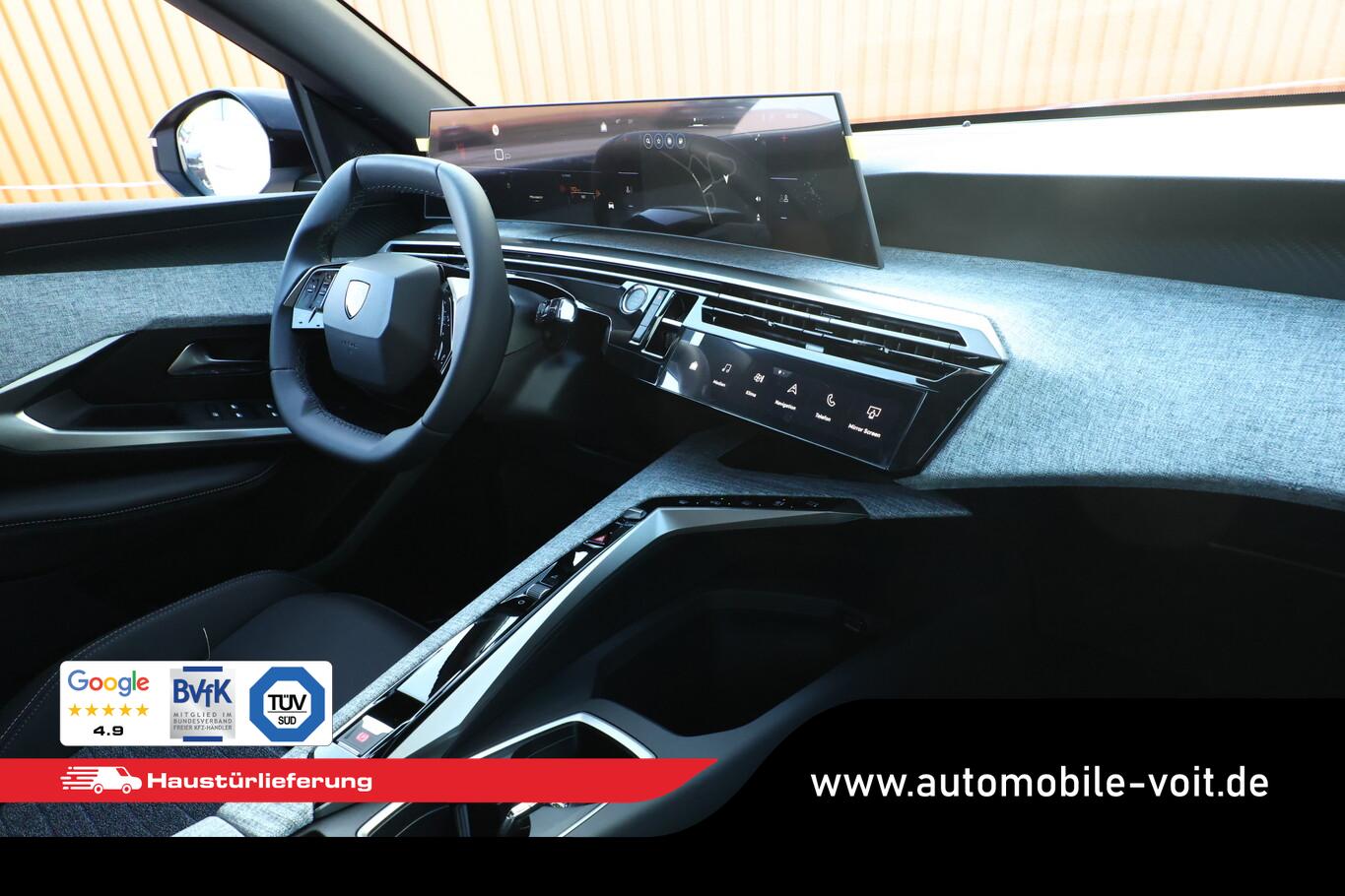 Drive-Assist-Paket (Lenkrad heizbar / Fahrassistenz-System: Autom. Distanzregelung (ACC inkl. Stop&Go-Funktion) / Rückfahrkamera mit 360° Umgebungsansicht / Fahrassistenz-System: Automatische Fahrlichtschaltung inkl. Fernlichtassistent / Fahrassistenz-System: Totwinkel-Assistent (SAM) / Einparkhilfe hinten / Einparkhilfe vorn und hinten / Fahrassistenz-System: Querverkehrs-Assistent Heck (Rear Cross Traffic Alert, RCTA) / Alarmanlage und Safesicherung), Panorama Navigations-Paket (Induktionsladeschale für Smartphone / Radioempfang digital (DAB+) / Freisprecheinrichtung Bluetooth / Navigationssystem i-Connect Advanced / USB-Anschluss (Typ C, 2-fach) / USB-Ladeanschlüsse (2) für 2.Sitzreihe / Audiobedienung am Lenkrad), Reifen-Reparaturkit ohne Kasten, 21"-Panoramadisplay HD, 6 Lautsprecher, Allwetterreifen 225/55 R19, eCall Notrufsystem, Fensterheber elektrisch hinten, Fußraumbeleuchtung LED, Lenkrad (Leder), LM-Felgen 19 Zoll, Schadstoffarm nach Abgasnorm Euro 6e (EU6 EA), Winter-Paket inkl. Frontscheibe heizbar, Gepäckraum-Abtrennung (Netz), Grip-Control mit Bergabfahrhilfe, Komfortsitz vorn links (Sitz vorn links mit ausziehbarer Oberschenkelauflage), Außenspiegel elektr. anklappbar (Außenspiegel anklappbar), Licht- und Regensensor (Scheibenwischer mit Regensensor), Dachhimmel schwarz, Elektr. Bremskraftverteilung, Gepäckraumboden verschiebbar, variabel, Innenspiegel mit Abblendautomatik, Karosserie: 5-türig, Mild-Hybrid 100 kW (Motor 1,2 Ltr. - 100 kW), Mobile Online Dienste MirrorLink und AppinCar (Mirror Screen), Parkbremse elektrisch, Radstand Standard, Sitze vorn höhenverstellbar, Anti-Blockier-System (ABS), Fahrassistenz-System: Aktiver Notbrems-Assistent (Active Safety Brake Plus), Fahrassistenz-System: Kollisionswarnsystem, Antischlupfregelung (ASR), Antriebsart: Frontantrieb, Elektron. Stabilitäts-Programm (ESP, Bosch), Getriebe Automatik - Doppelkupplungsgetriebe (6-Stufen, Hybrid), Klimaautomatik, getrennt regelbar Fahrer-/Beifahrerseite, Airbag Fahrer-/Beifahrerseite, Fensterheber elektr. vorn, links mit Impulsgeber, Isofix-Aufnahmen für Kindersitz, Kopf-Airbag-System, Kopf-Airbag-System hinten, Seitenairbag hinten, Seitenairbag vorn, Seitenscheiben hinten und Heckscheibe getönt, Sitzheizung vorn, Zentralverriegelung / Startanlage Keyless System, Fahrassistenz-System: Verkehrszeichenerkennung, Lenkrad mit Multifunktion, Außenspiegel elektr. verstell- und heizbar, beide, Einschaltautomatik für Fahrlicht, Heckleuchten Voll-LED, Scheinwerfer Eco-LED, Fahrassistenz-System: aktiver Spurassistent (Lenkunterstützung), Fahrassistenz-System: Müdigkeitserkennungs-Sensor, Reifendruck-Kontrollsystem