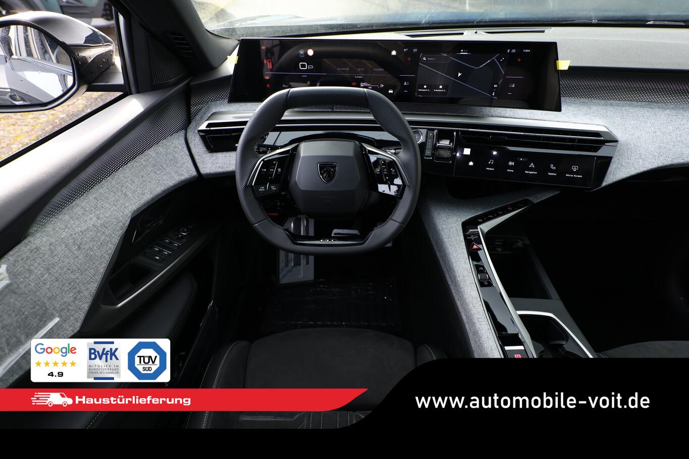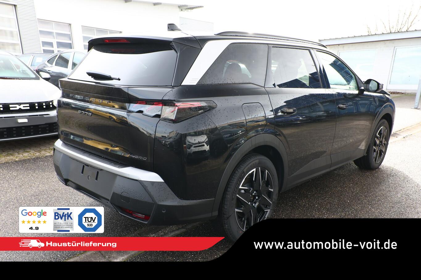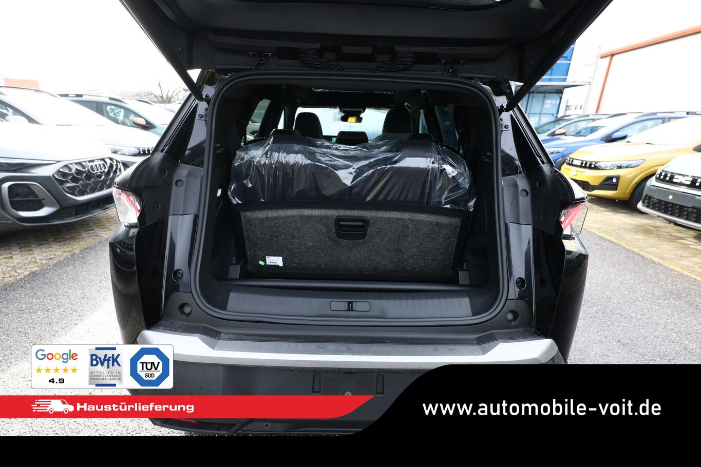 Komfort-Paket (Innenausstattung: Ziernähte farbig / Komfortsitze vorn / Lendenwirbelstütze Sitz vorn links und rechts, elektr. verstellbar / Sitze vorn mit ausziehbarer Oberschenkelauflage / Sitze vorn mit Massagefunktion / Sitz vorn links elektr. verstellbar (mit Memory) / Sitzheizung hinten), Anhängerkupplung (Kugelkopf senkrecht demontierbar, Ausführung verbessert), 21"-Panoramadisplay, 3. Sitzreihe, 6 Lautsprecher, Ambientenbeleuchtung, Dachreling schwarz, Einparkhilfe vorn, Fahrmodusschalter, Fensterheber elektr. hinten, Fensterzierleisten schwarz, Handschuhfach beleuchtet, Laderaumbeleuchtung, Lendenwirbelstütze Sitz vorn links, Lenkrad Leder, LM-Felgen 19 Zoll, Radioempfang digital (DAB+), Reifen 225/55 R19, Schadstoffarm nach Abgasnorm Euro 6e (EU6 EA), Schiebe-/Hebedach elektrisch (Glas), Smartphone Schnittstelle kabellos (Apple Car Play/Android Auto), Panorama Navigations-Paket (Induktionsladeschale für Smartphone / Radioempfang digital (DAB+) / Freisprecheinrichtung Bluetooth / Navigationssystem i-Connect Advanced / USB-Anschluss (Typ C, 2-fach) / USB-Anschluss (Typ C, 3-fach) / Audiobedienung am Lenkrad), Außenspiegel und Spiegelfuss in Perla-Nera-Schwarz, Dachfarbe schwarz, Dachhimmel schwarz, Gepäckraumboden verschiebbar, variabel, Getränkehalter vorn, Innenspiegel mit Abblendautomatik, Karosserie: 5-türig, Lenkrad heizbar, Mittelarmlehne hinten, Mobile Online Dienste Mirror Screen, Otto-Partikelfilter (GPF), Parkbremse elektrisch, Pedale Aluminium, Radstand Standard, Sitze vorn höhenverstellbar, Sonnenblenden mit Make-up-Spiegel, Steckdose (12V-Anschluß) im Koffer-/Laderaum, Warnanlage für Sicherheitsgurte, Anti-Blockier-System (ABS), Fahrassistenz-System: Aktiver Notbrems-Assistent (Active Safety Brake Plus), Antriebsart: Frontantrieb, Elektron. Stabilitäts-Programm (ESP, Bosch), Getriebe Automatik - Doppelkupplungsgetriebe (6-Stufen, Hybrid), Klimaautomatik, getrennt regelbar Fahrer-/Beifahrerseite, Airbag Beifahrerseite abschaltbar, Airbag Fahrer-/Beifahrerseite, Fensterheber elektr. vorn, links mit Impulsgeber, Isofix-Aufnahmen für Kindersitz, Kopf-Airbag-System, Kopf-Airbag-System hinten, Mittelarmlehne vorn, Rücksitzbank geteilt/klappbar automatisch (40:20:40), Seitenairbag vorn, Seitenscheiben hinten und Heckscheibe getönt, Sitzheizung vorn, Zentralverriegelung / Startanlage Keyless System, Zentralverriegelung mit Fernbedienung, Kofferraumdeckel / Heckklappe elektr. betätigt (öffnen + schliessen, sensorgesteuert), Fahrassistenz-System: Autom. Distanzregelung (ACC inkl. Stop&Go-Funktion), Fahrassistenz-System: Berganfahrhilfe, Fahrassistenz-System: Verkehrszeichenerkennung, Rückfahrkamera mit 180° Umgebungsansicht, Peugeot Connect-Box / SOS-Taste (Notruf für Lokalisierung Fahrzeug), Lenkrad mit Multifunktion, Lenkrad mit Schaltwippen/-tasten, Servolenkung elektrisch, Außenspiegel elektr. anklappbar, Außenspiegel elektr. verstell- und heizbar, beide, Außenspiegel mit Umfeldleuchte, Einschaltautomatik für Fahrlicht, Fahrassistenz-System: Fernlichtassistent, Scheibenwischer mit Regensensor, Scheinwerfer Full-LED, Tagfahrlicht LED, Einparkhilfe hinten, Fahrassistenz-System: aktiver Spurassistent (Lenkunterstützung), Fahrassistenz-System: Müdigkeitserkennungs-Sensor, Reifendruck-Kontrollsystem
