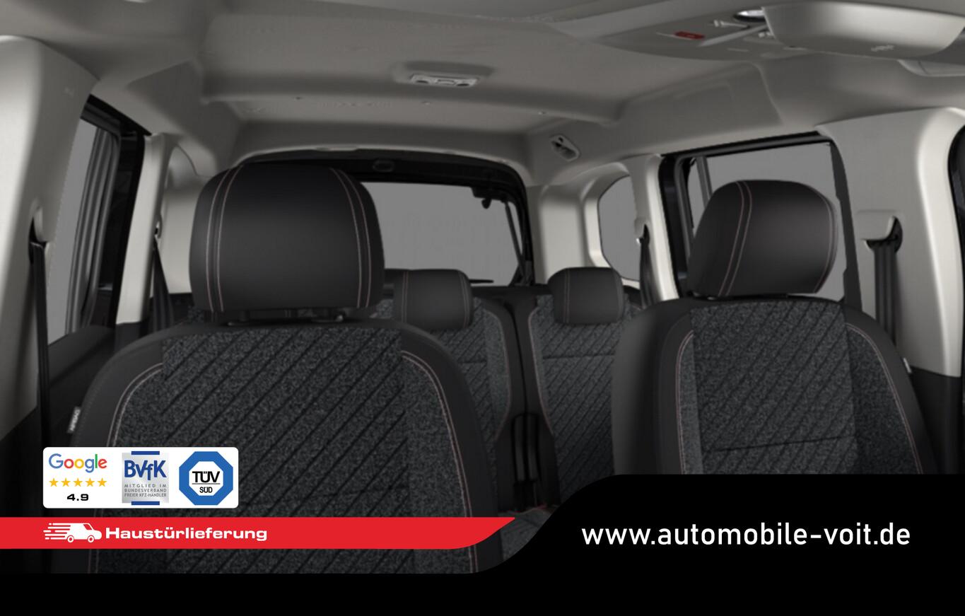 Style-Paket (Heckklappe, Scheibe ausstellbar / Heckscheibe aufstellbar / Heckscheibe heizbar / Heckscheibenwischer / Kindersicherung elektrisch / Schiebetüren links und rechts mit Verglasung / Verkleidung Schiebetürschiene in Wagenfarbe / LM-Felgen 6,5x16 (Taranaki) / Isofix-Aufnahmen für Kindersitz / Rücksitzbank klappbar 1/3-2/3 / Seitenscheiben hinten dunkel getönt und Heckscheibe stärker getönt / Dachreling schwarz, glänzend / Außenspiegel elektr. verstell-, heiz- und anklappbar), Rückfahrkamera mit 180° Umgebungsansicht, 6 Lautsprecher, Ablagetasche an Rückseite Vordersitzlehne, Außenspiegel in Schwarz, Fahrassistenz-System: Fernlichtassistent, Fahrassistenz-System: Müdigkeitserkennungs-Sensor, Fahrassistenz-System: Spurhalteassistent, Fensterheber elektrisch vorne & hinten, Freisprecheinrichtung Bluetooth, Geschwindigkeits-Regelanlage (Tempomat) inkl. Geschwindigkeits-Begrenzeranlage, Infotainment-System mit 10 Zoll Farb-Display HD, Leseleuchten vorn, Multikollisionsbremse, Navigation in Verbindung mit dem Smartphone (über Apple Carplay / Android Auto /...), Radioempfang Digital (DAB), Reifen 215/65 R16, Seitenairbag vorn, Sicht-Paket (Einschaltautomatik für Fahrlicht / Scheibenwischer mit Regensensor), Sitz vorn links höhenverstellbar (Lendenwirbelstütze Sitz vorn links, verstellbar / Mittelarmlehne für Fahrersitz), Elektron. Stabilitäts-Programm (ESP, Bosch) (Antischlupfregelung (ASR)), Airbag Fahrer-/Beifahrerseite (Airbag Beifahrerseite), Lenkrad mit Multifunktion (Lenkrad heizbar), Karosserie: 5-türig, Kombiinstrument digital (10,0 Zoll), Mobile Online Dienste Mirror Screen, Motor 1,5 Ltr. - 75 kW Blue-HDI FAP, Parkbremse elektrisch, Radstand 2785 mm, SCR-System (AdBlue-Technologie), Sitzbezug / Polsterung: Stoff, Türgriffe innen verchromt, Warnanlage für Sicherheitsgurte, Anti-Blockier-System (ABS), Fahrassistenz-System: Aktiver Notbrems-Assistent (Active Safety Brake), Getriebe 6-Gang, Klimaanlage, Airbag Beifahrerseite abschaltbar, Kopf-Airbag-System, Kopf-Airbag-System hinten, Super-Zentralverriegelung mit Fernbedienung, Verzurrösen Laderaum, Peugeot Connect-Box / SOS-Taste (Notruf für Lokalisierung Fahrzeug), Lenkrad (Leder), Servolenkung elektrisch, Nebelscheinwerfer, Tagfahrlicht LED, Einparkhilfe hinten, Reifendruck-Kontrollsystem, Rußpartikelfilter, Start/Stop-Anlage