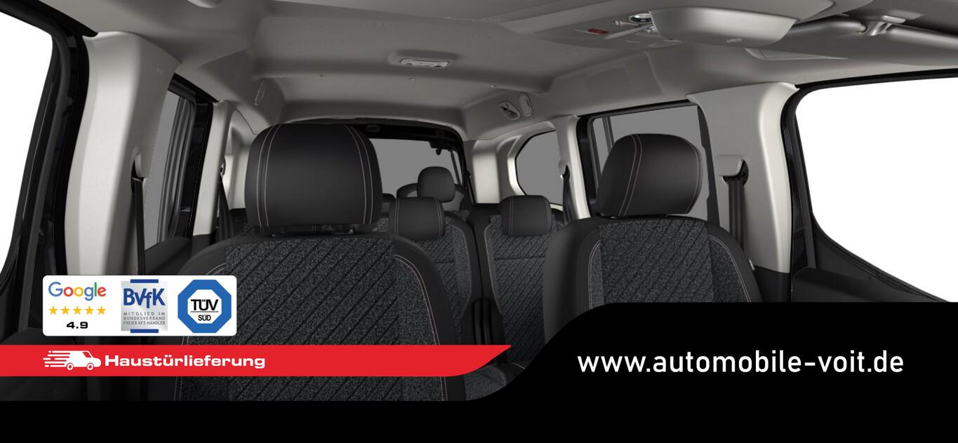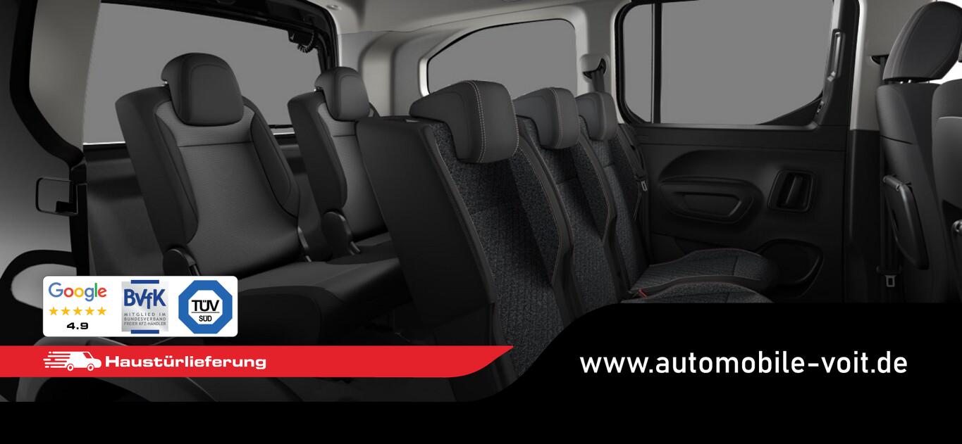 2 Zusatzsitze (7 Sitze), Style-Paket (Heckklappe, Scheibe ausstellbar / Heckscheibe aufstellbar / Heckscheibe heizbar / Heckscheibenwischer / Kindersicherung elektrisch / Schiebetüren links und rechts, mit elektr. Fensterhebern / Verkleidung Schiebetürschiene in Wagenfarbe / LM-Felgen 6,5x16 (Taranaki) / Fensterheber elektrisch hinten / Isofix-Aufnahmen für Kindersitz / Rücksitzbank klappbar 1/3-2/3 / Seitenscheiben hinten dunkel getönt und Heckscheibe stärker getönt / Dachreling schwarz, glänzend / Außenspiegel elektr. verstell-, heiz- und anklappbar), Anschlussgarantie 1 Jahre, Audiosystem mit 10 Zoll Farb-Touchscreen, Fensterheber elektrisch vorn, Lenkrad mit Multifunktion, Motor 1,5 Ltr. - 75 kW Blue-HDI FAP, Navigation in Verbindung mit dem Smartphone (über Apple Carplay / Android Auto /...), Reifen 205/60 R16, Schadstoffarm nach Abgasnorm Euro 6e (EU6 EA), Sicht-Paket (Einschaltautomatik für Fahrlicht / Scheibenwischer mit Regensensor), Sitz vorn links höhenverstellbar (Lendenwirbelstütze Sitz vorn links, verstellbar / Mittelarmlehne für Fahrersitz), Elektron. Stabilitäts-Programm (ESP, Bosch) (Antischlupfregelung (ASR)), Airbag Fahrer-/Beifahrerseite (Airbag Beifahrerseite), Sicherheits-Paket Plus (Fahrassistenz-System: Auffahrwarnsystem mit Bremsfunktion / Fahrassistenz-System: Verkehrszeichenerkennung / Fahrassistenz-System: Verkehrszeichenerkennung, erweitert (Geschwindigkeits-Regel-/Begrenzeranlage) / Geschwindigkeits-Regelanlage (Tempomat) inkl. Geschwindigkeits-Begrenzeranlage / Fahrassistenz-System: Fernlichtassistent / Fahrassistenz-System: Müdigkeitserkennungs-Sensor / Fahrassistenz-System: Spurassistent (AFIL) / Sicherheits-Paket), Ablagefach über den Sonnenblenden, Gepäckraumabdeckung / Rollo, Karosserie: 5-türig, Kombiinstrument digital (10,0 Zoll), Mobile Online Dienste Mirror Screen, Parkbremse elektrisch, Radstand 2975 mm, Anti-Blockier-System (ABS), Getriebe 6-Gang, Klimaanlage, Kopf-Airbag-System, Kopf-Airbag-System hinten, Fahrassistenz-System: Berganfahrhilfe, Lenkrad (Leder), Nebelscheinwerfer, Tagfahrlicht LED, Einparkhilfe hinten, Reifendruck-Kontrollsystem
