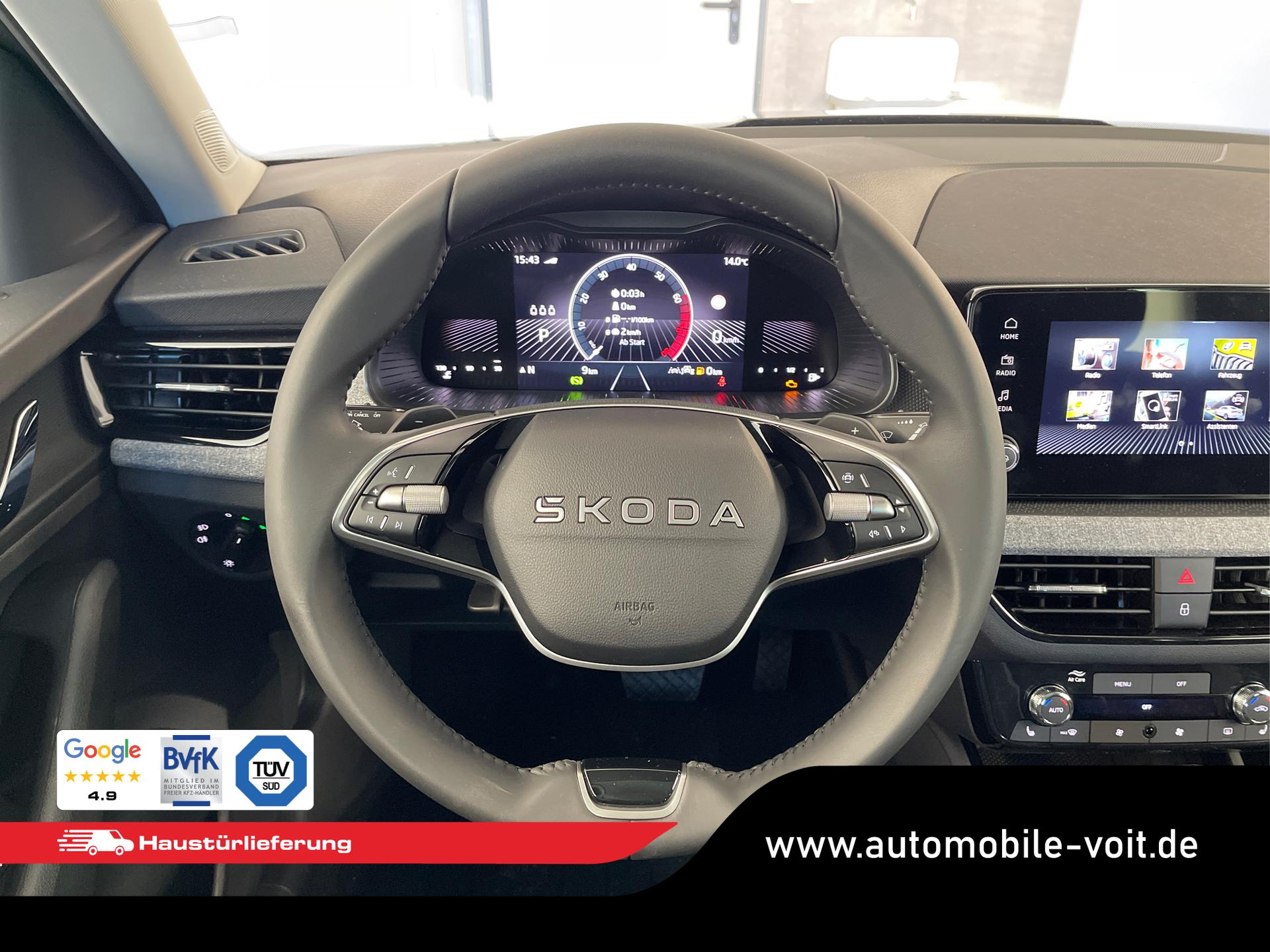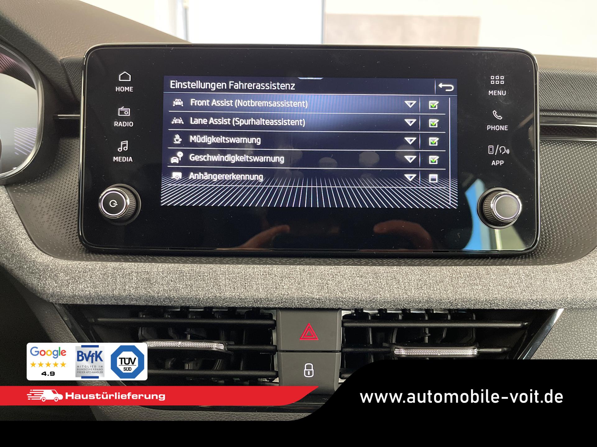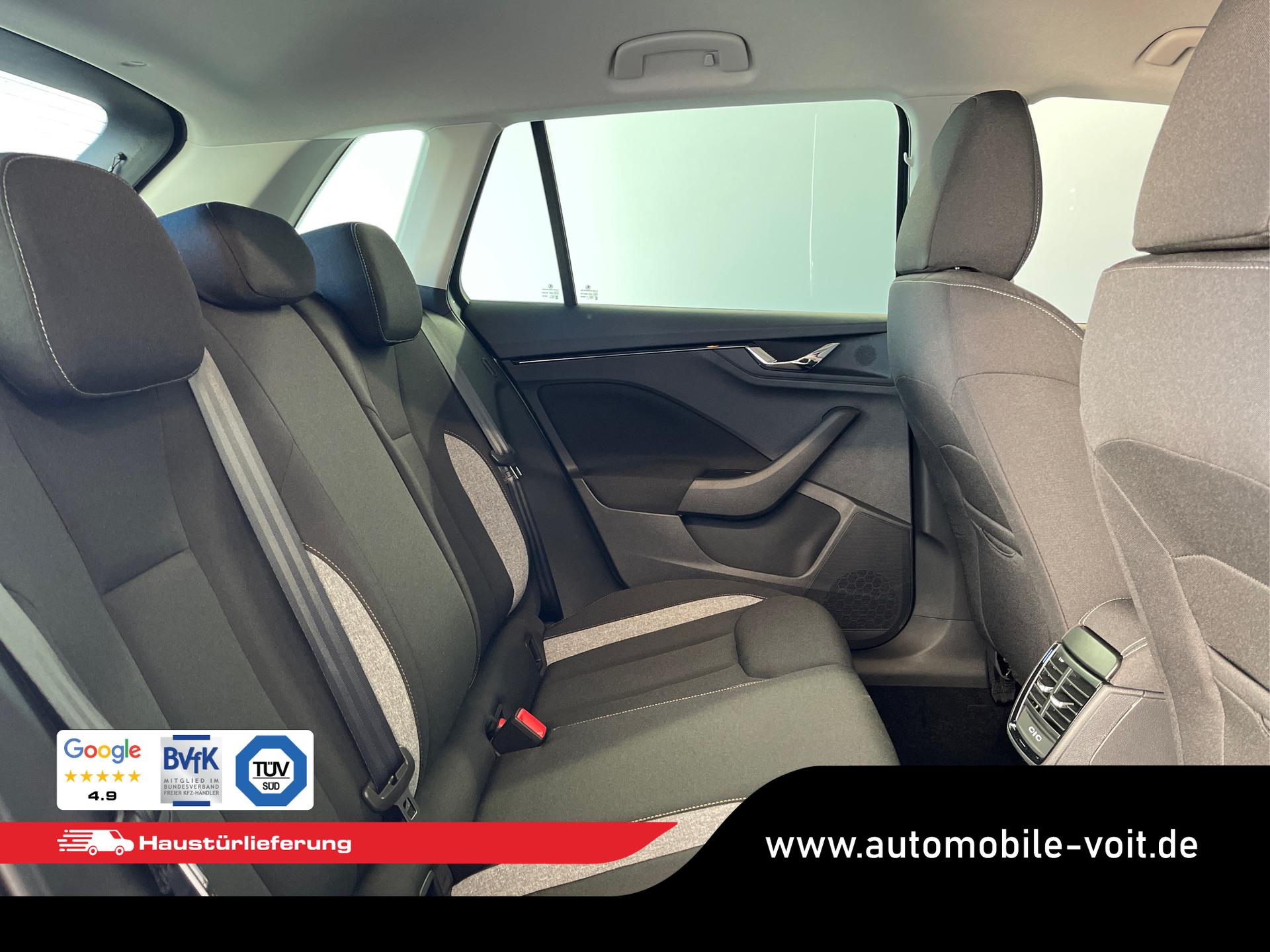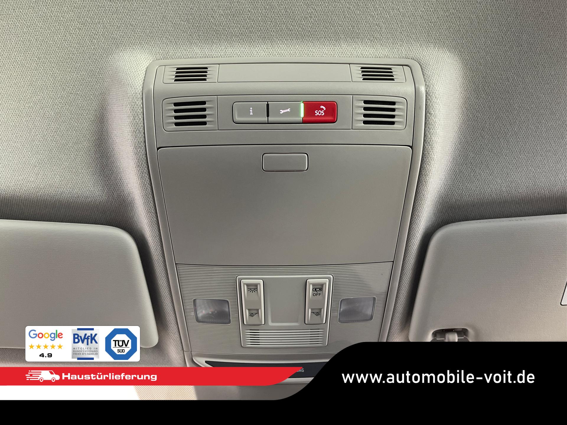 • Front Assist inkl. City-Notbremsfunktion, Mittelarmlehne vorne mit "Jumbo Box", Zentralverriegelung mit Funkfernbedienung, Scheibenbremsen vorn und hinten, ESP, ABS, ASR, Nebelscheinwerfer, Kopfstützen, Scheibenwischer-Intervallschaltung, Heckscheiben Wisch-Waschanlage, Lichtsensor, Airbag für Fahrer und Beifahrer, Beifahrerairbag-Deaktivierung, Seitenairbag vorn mit Kopfairbag, Reserverad als Notrad, Reifendruckkontrolle, 8 Lautsprecher, Freisprecheinrichtung Bluetooth, Klimaautomatik 2-Zonen-Climatronic, Geschwindigkeitsregelanlage inkl. Geschwindigkeitsbegrenzung, Lendenwirbelstütze für die Vordersitzlehnen, Fensterheber vorn und hinten elektrisch, Brillenfach, Wireless App-Connect, USB-C Schnittstelle, Start-Stopp-Anlage, Rücksitzlehne geteilt umklappbar, Außenspiegelgehäuse und Türgriffe in Wagenfarbe, Außenspiegel elektrisch einstell- und beheizbar, Wärmeschutzverglasung, Notrufsystem eCall, LED-Scheinwerfer inkl. Tagfahrlicht, 12 Volt Steckdose, Radio "Infotainment" (Farbdisplay, Touchscreen), Virtual Cockpit inkl. Bordcomputer, Multifunktions-Lederlenkrad inkl. Schaltwippen für DSG, Wegfahrsperre, Servolenkung, Innenraumfilter, Laderaumabdeckung, Uhr & Drehzahlmesser, Verkehrszeichenerkennung, Isofix Beifahrersitz, Dreipunkt-Sicherheitsgurte, Vordersitze höhenverstellbar, Dachreling in Schwarz, Sicherheitsinnenspiegel automatisch abblendend, Spurhalteassistent "Lane Assist", Ablenkungserkennung, Müdigkeitserkennung, Digitaler Radioempfang, Berganfahrassistent, Fußgängererkennung, Radfahrererkennung