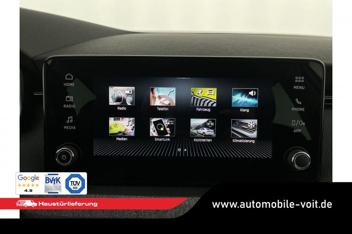 8'' Infotainmentsystem , Bluetooth, DAB, Smart Link, USB-C Anschlüsse, LED-Rückleuchten, LED-Scheinwerfer, Lichtsensor, Nebelscheinwerfer, Fensterheber vorne und hinten elektrisch , Sunset - abgedunkelte Scheiben, Innenspiegel automatisch abblendend, Lederlenkrad, Lenkradheizung, Mittelarmlehne vorne, Multifunktions-Lederlenkrad 2-Speichen, beheizbar , 2-Zonen Climatronic, beheizbare Frontscheibe, Leichtmetallräder 16'' Cortadero, Reserverad, Diebstahlwarnanlage, Innenausstattung Loft , Rücksitzlehne asymmetrisch geteilt umklappbar , Sitzheizung vorne, Vordersitze höhenverstellbar, Garantie 5 Jahre / 100.000km, Automatische Distanzregelung ACC, Berganfahrassistent, Einparkhilfe vorne und hinten, Fahrprofilauswahl, Keyless , Müdigkeitserkennung, Regensensor, Rückfahrkamera, Scheibenwaschdüsen beheizbar, Spurhalteassistent Lane Assist, Verkehrszeichenerkennung, Außenspiegel elektrisch einstell- und beheizbar, Dachreling silber, EU-Fahrzeug mit Tageszulassung