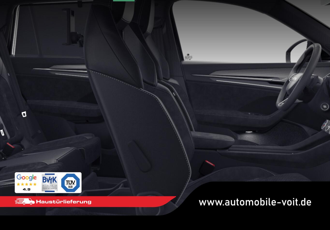 Fahrassistenz-Paket (Fahrassistenz-Paket: Travel Assist / Fahrassistenz-Paket: Stau- und Notfallassistent / Fahrassistenz-System: Autom. Distanzregelung (pACC) mit vorausschauender Geschw.-Regelung / Fahrassistenz-System: aktiver Spurhalteassistent (Lenkunterstützung) / Insassen-Schutzsystem proaktiv), Ausstattungs-Paket: Family (Abfallbehälter / Ablagebox hinten / Tablet-Halterung / Sonnenschutzrollo an Seitenscheiben hinten), Winter-Paket (Sitzheizung hinten), 12V Steckdose, Ablagebox im Gepäckraum, Allwetter-, Kurven- und Autobahnlicht, elektrische Sitzverstellung Fahrersitz, Heckspoiler, Infotainment-System mit 13 Zoll Farb-Display, Innenbeleuchtung vorn und hinten, Kofferraum / Heckklappe elektrisch betätigt (öffnen + schliessen), Lendenwirbelstütze pneumatisch verstellber vorn links, Lendenwirbelstütze vorn rechts, Lichtassistent (Coming, Leaving Home), Lichtautomatik mit Abbiegelicht (AFS), LM-Felgen 7,5x19 "Tirsuli", Navigationssystem 13 Zoll, Radioempfang Digigtal (DAB), Radschrauben diebstahlhemmend, Reifen 235/50 R19, Schadstoffarm nach Abgasnorm Euro 6e (EU6EA), Seitenscheiben hinten und Heckscheibe abgedunkelt (SunSet), Sitzbezug / Polsterung: Microfaser/ Kunstleder, Stoßfänger Sport, Tagfahrlicht, Vorbereitung für Skoda Connect, Licht- und Sicht-Paket (Fahrassistenz-System: Dynamischer Fernlichtassistent (Dynamic Light Assist) / Heckleuchten LED (Kristallglas-Optik) / Heckleuchten LED mit dynamischem Blinklicht / Matrix-LED-Scheinwerfer), Zentralverriegelung (Fernbedienung für Zentralverriegelung), 8 Lautsprecher, Ambiente-Beleuchtung LED, Anhängerkupplung Vorbereitung, Außenspiegel schwarz lackiert, Dachreling schwarz, hochglänzend, Edelstahlpedale Sportdesign, Einstiegsleisten (Edelstahl), Fahrassistenz-System: Abbiegebremsfunktion und Ausweichunterstützung, Fensterzierleisten schwarz, hochglänzend, Hybrid 150 kW (Motor 1,5 Ltr. - 110 kW TSI), Karosserie: 5-türig, Kombiinstrument digital (virtual cockpit plus), Kopfstützen hinten, Kopfstützen vorn, Ladekabel mit Schukostecker (Mode 2), Ladekabel mit Typ 2-Stecker (Mode 3), Lehnenentriegelung der Rücksitzlehne im Kofferraum, Otto-Partikelfilter (OPF), Radstand Standard, Reifen-Reparaturkit, Sonnenblenden mit Spiegel (LED-Beleuchtung), Warnanlage für Sicherheitsgurte hinten, Warnanlage für Sicherheitsgurte, Fahrer-/Beifahrerseite, USB-Schnittstelle vorn (2-fach, Typ C), Wireless SmartLink, Anti-Blockier-System (ABS), Bremsassistent, Antriebsart: Frontantrieb, Elektron. Stabilitäts-Programm (ESP), Getriebe 6-Gang - Doppelkupplungsgetriebe DSG, Klimaanlage Climatronic 3-Zonen, Airbag Beifahrerseite abschaltbar, Airbag Fahrerseite, Isofix-Aufnahmen für Kindersitz an Beifahrersitz, Isofix-Aufnahmen für Kindersitz an Rücksitz, Kopf-Airbag-System, Rücksitzlehne geteilt/klappbar, Schließ-/Startsystem Kessy inkl. Diebstahl-Warnanlage, Seitenairbag vorn, Seitenairbag vorn mitte (Center-Airbag), Sitzheizung vorn, Sportsitze, Fahrassistenz-System: Auffahrwarnsystem mit City-Notbremsfunktion (Frontradar-Assistent), Fahrassistenz-System: Berganfahr-Assistent (Hill-Holder), Fahrassistenz-System: Verkehrszeichenerkennung, Rückfahrkamera, Lenkrad heizbar (Sport/Leder) mit Multifunktion und Schaltfunktion, Servolenkung, Einparkhilfe vorn und hinten, Fahrassistenz-System: Müdigkeitserkennung, Fahrassistenz-System: Spurhalteassistent (Lane Assist), Fahrassistenz-System: Spurwechselassistent inkl. Auspark-Assistent und Ausstiegswarnung, Reifendruck-Kontrollsystem (Aktiv), Start/Stop-Anlage