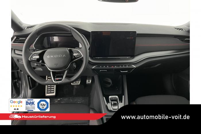 Infotainmentdisplay, Navigationssystem, SmartLink sowie Wireless Smart Link, Sprachsteuerung, LED Ambientebeleuchtung, LED Matrix Scheinwerfer, Lichtassistent, Akustikverglasung in den vorderen Seitenscheiben und Sunset, Ablagefach unter dem Beifahrersitz, Dachhimmelschwarz, Gepäcknetztrennwand, Supersport Lederlenkrad, var. Ladeboden im Gepäckraum inkl. Alu Querträger, 2-Zonen Climatronic, Infotainment Plus & Fahrassistenz Plus, 19'' Leichtmetallräder Elias anthrazit/schwarz, Bremssättel rot lackiert, Alarmanlage, Rücksitzlehnenmit Fernentriegelung, Sportsitze RS Stoff mit roten Ziernähten, beheizbare Vordersitze, Garantiezeit 5 Jahre max. 100.000 km Laufleistung, Digital Cockpit Plus, Fahrprofilauswahl, Head-Up Display, Intelligenter Geschwindigkeitsassistent (ISA), Intelligenter Parkassistent, Kessy, Parksensoren vorne und hinten, Rückfahrkamera, Speedlimiter, Stoßfänger RS, elektrische Heckklappenbedienung mit Komfortöffnung, Adaptives Fahrwerk DCC, Außenspeigel schwarz glänzend, Außenspiegel elektrisch anklappbar, Außenspiegel elektrisch beheizbar, Außenspiegel elektrisch einstellbar, Dachreling schwarz glänzend, Kühlergrillrahmen schwarz glänzend, Pedale im Alu Design, Sportauspuff Endrohr links/rechts, Vorbereitung Anhängerzugvorrichtung, EU-Fahrzeug mit Tageszulassung