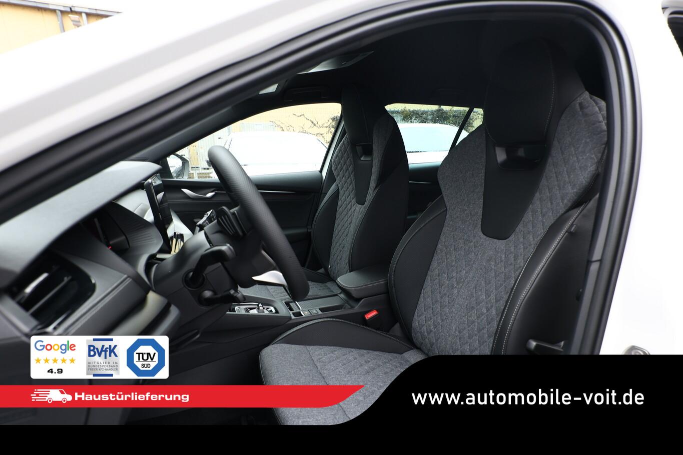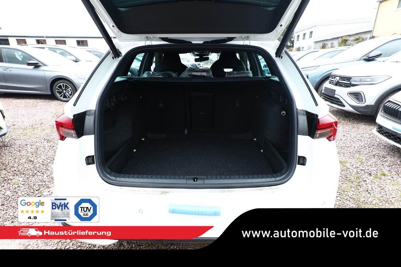 Licht- und Sicht-Paket (Leuchtweitenregelung automatisch / Abbiege- und Allwetterlicht / Schlechtwetter-Licht / Fahrassistenz-System: Dynamischer Fernlichtassistent (Dynamic Light Assist) / Matrix-LED-Scheinwerfer / Scheinwerfer-Reinigungsanlage (SRA)), Ambientebeleuchtung, Diebstahl-Warnanlage mit Innenraumüberwachung und Abschleppschutz, Fahrassistenz-System: Spurwechselassistent, Fahrassistenz-System: Stau- und Notfallassistent, Garantieverlängerung 1 Jahr/ 60.000 KM, Gepäckraumabdeckung, Kindersicherung elektr. betätigt, Kombiinstrument digital (virtual cockpit), Komfortöffnung für elektr. Heckklappe/-Deckel, Lendenwirbelstützen vorn, Licht- und Regensensor, LM-Felgen 7x17, Mittelarmlehne hinten, Navigationssystem inkl. 13"-Touchscreen, Sprachsteuerung, USB-Schnittstelle, Reifen 205/55 R17, Schließ-/Startsystem Kessy mit Safesicherung, Seitenairbag vorn, Seitenscheiben hinten und Heckscheibe abgedunkelt (SunSet), Serviceintervall 30.000 km oder 2 Jahre, Sitze vorn höhenverstellbar, Sportsitze vorn, Umfeldbeleuchtung, Fahrassistenz-Paket: Travel Assist (Fahrassistenz-System: Autom. Distanzregelung (pACC) mit vorausschauender Geschw.-Regelung / Fahrassistenz-System: aktiver Spurhalteassistent (Lenkunterstützung)), Motor 1,5 Ltr. - 110 kW 16V TSI mHEV Mild-Hybrid (DXDB) (Mild-Hybrid 110 kW (Motor 1,5 Ltr. - 110 kW TSI mHEV)), 3-Punkt-Sicherheitsgurte hinten, 8 Lautsprecher, Ablagefächer (Gepäck-/Laderaum), Dachreling schwarz, hochglänzend, Doppeltonfanfare, Einstiegsleisten (Aluminium-Design), Fahrassistenz-System: Abbiegebremsfunktion und Ausweichunterstützung, Fensterzierleisten schwarz, hochglänzend, Fußraumbeleuchtung vorn und hinten, Heckscheibenwischer, Induktionsladeschale für Smartphone, Innenspiegel mit Abblendautomatik, Karosserie: 5-türig, Kofferraumbeleuchtung, Lehnenentriegelung der Rücksitzlehne im Kofferraum, Motor-Schleppmoment-Regulator (MSR), Parkbremse elektronisch, Progressivlenkung, Radioempfang digital (DAB+), Sonnenblenden mit Spiegel (LED-Beleuchtung), Steckdose (12V-Anschluß) im Koffer-/Laderaum, Vorbereitung für Alkohol-Wegfahrsperre (Alcolock), Warnanlage für Sicherheitsgurte hinten, Warnanlage für Sicherheitsgurte, Fahrer-/Beifahrerseite, Freisprechanlage Telefon mit Bluetooth, Wireless SmartLink, Anti-Blockier-System (ABS), Antriebs-Schlupfregelung (ASR), Antriebsart: Frontantrieb, Elektron. Querdifferentialsperre (XDS), Elektron. Stabilitäts-Programm (ESP), Sport-Fahrwerk, Getriebe 7-Gang - Doppelkupplungsgetriebe DSG, Klimaanlage Climatronic 2-Zonen, Airbag Beifahrerseite abschaltbar, Airbag Fahrer-/Beifahrerseite, Fensterheber elektrisch vorn + hinten, Isofix-Aufnahmen für Kindersitz an Beifahrersitz und Rücksitze außen (inkl. Top Tether), Knieairbag Fahrerseite, Kopf-Airbag-System, Mittelarmlehne vorn, Rücksitzlehne geteilt/klappbar, Seitenairbag vorn mitte (Center-Airbag), Sitzbezug / Polsterung: Stoff/Kunstleder Sportline schwarz, Sitzheizung vorn, Fahrassistenz-System: Fahrprofilauswahl, Fahrassistenz-System: Auffahrwarnsystem mit City-Notbremsfunktion (Frontradar-Assistent), Fahrassistenz-System: Berganfahr-Assistent (Hill-Holder), Fahrassistenz-System: Intelligente Geschwindigkeitsanpassung (ISA) inkl. Speed-Limiter, Fahrassistenz-System: Verkehrszeichenerkennung, Frontkamera, Rückfahrkamera, Lenkrad (Sport/Leder - 3-Speichen, unten abgeflacht) mit Multifunktion und Schaltfunktion, Servolenkung elektronisch (Servotronic), Außenspiegel elektr. anklappbar, Außenspiegel elektr. verstell- und heizbar, Außenspiegel mit Abblendautomatik, links, Heckleuchten LED (Kristallglas-Optik), Einparkhilfe vorn und hinten, Fahrassistenz-System: Kreuzungs-Assistent (Crossroad Assist), Fahrassistenz-System: Müdigkeitserkennung, Reifendruck-Kontrollsystem