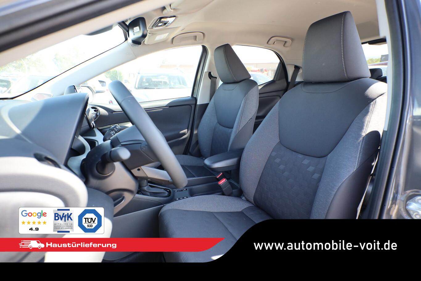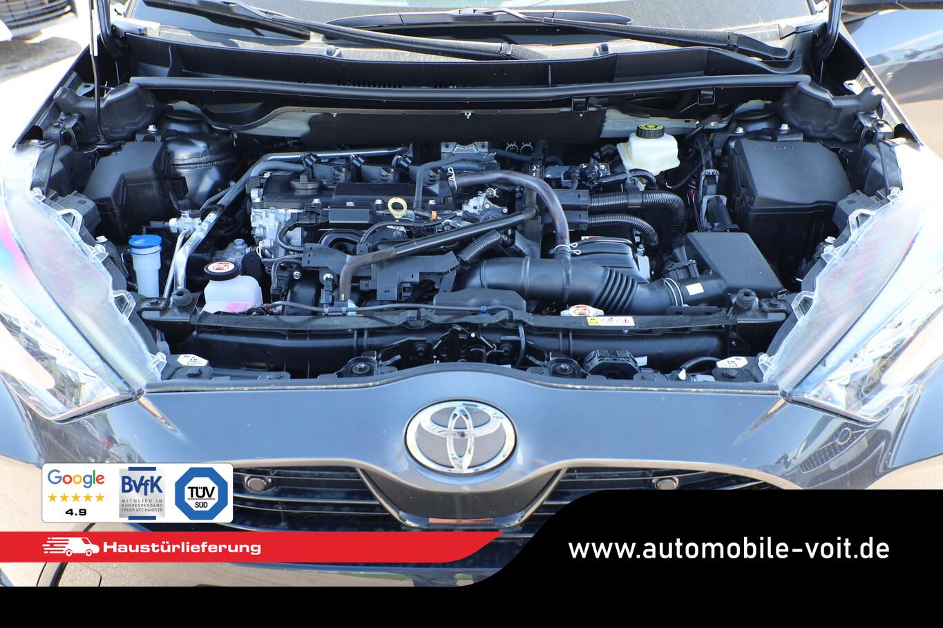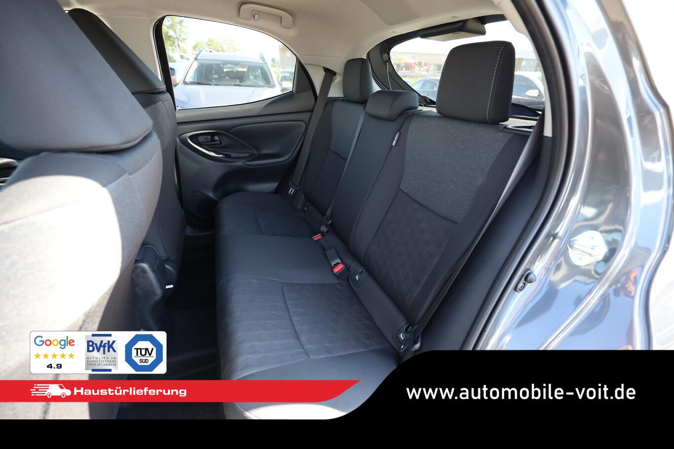 Außenspiegel in Wagenfarbe, Gepäckraumbeleuchtung, Getränkehalter vorn, Heckspoiler, Innenspiegel mit Abblendautomatik, Kindersicherung, Kopf-Airbag-System, Leuchtweitenregulierung, Mittelarmlehne vorn, Navigation in Verbindung mit dem Smartphone (über Apple Carplay / Android Auto /...), Ottopartikelfilter (OPF), Sitzbezug/Polsterung: Stoff, Sommerreifen 195/55 R16, Sonnenblenden mit Spiegel, Steckdose (12V-Anschluss) vorn, Zentralverriegelung mit Fernbedienung, Audiosystem TAS600 (Toyota Smart Connect) (DAB-Tuner (Radioempfang digital) / Smartphone-Integration x-connect (Apple CarPlay und Android Auto)), Motor 1,5 Ltr. - 68 kW (System: 85 kW) Hybrid (Hybrid 85 kW (Motor 1,5 Ltr. - 68 kW)), Toyota Safety Sense (Fahrassistenz-System: Pre-Collision-System (PCS) / Fahrassistenz-System: Auffahrwarnsystem (Forward Collision Warning, FCW) / Fahrassistenz-System: Verkehrszeichenerkennung (RSA) / Geschwindigkeits-Regelanlage (Tempomat) mit Abstandsregelung / Fahrassistenz-System: Fernlichtassistent (Abblendautomatik Fahrlicht, AHB) / Scheibenwischer mit Regensensor / Fahrassistenz-System: aktiver Spurhalteassistent (Lenkunterstützung) / Fahrassistenz-System: Autonome Notbremsfunktion (AEB) / Fahrassistenz-System: Kreuzungs-Assistent / Fahrassistenz-System: Spurhalteassistent (LDA)), 3. Bremsleuchte, 4 Lautsprecher, Anzeigeinstrumente digital, Blinkleuchten LED, Elektr. Bremskraftverteilung, Fahrassistenz-System: Nothalt-Assistent, Fahrassistenz-System: Sicherheitssystem Toyota Connect mit automatischem Notruf (eCall), Geschwindigkeits-Begrenzeranlage, Innenraumfilter: Staub- und Pollenfilter mit Aktivkohlefilter, Karosserie: 5-türig, Kühlergrill unten / oben Pianolack, Lenksäule (Lenkrad) verstellbar, Leseleuchte, Multimedia Display (9,0 Zoll), Parkbremse elektrisch (EPB), Schalt-/Wählhebelgriff Leder, Scheibenwischer mit Intervallschaltung, Sitz vorn links höhenverstellbar, Türverkleidung mit Stoffbezug, Warnanlage für Sicherheitsgurte hinten, Warnanlage für Sicherheitsgurte vorn, Freisprechanlage Bluetooth, USB-Schnittstelle, Anti-Blockier-System (ABS), Elektron. Stabilitäts-Programm mit Antriebs-Schlupfregelung (VSC mit TRC), LM-Felgen 6x16, Wegfahrsperre, Getriebe Automatik stufenlos - Multidrive ECVT, Klimaautomatik, Airbag Beifahrerseite abschaltbar, Airbag Fahrer-/Beifahrerseite, Fensterheber elektrisch vorn + hinten, Isofix-Kindersitz-System, Rücksitz geteilt, Rücksitz klappbar, Seitenairbag vorn, Verglasung hinten abgedunkelt, Fahrassistenz-System: Eco-Anzeige für verbrauchsoptimiertes Fahren, Fahrassistenz-System: Berganfahrkontrolle (HAC), Rückfahrkamera, Audiobedienung am Lenkrad, Lenkrad (Leder), Servolenkung elektrisch, Außenspiegel elektr. verstell- und heizbar, Autom. Begleitfunktion der Beleuchtung (Follow me home, FMH), Blinkleuchte in Außenspiegel integriert, Heckleuchten LED, Nebelscheinwerfer LED, Scheinwerfer LED, Tagfahrlicht LED, Fahrassistenz-System: Müdigkeitserkennungs-Sensor, Reifendruck-Kontrollsystem