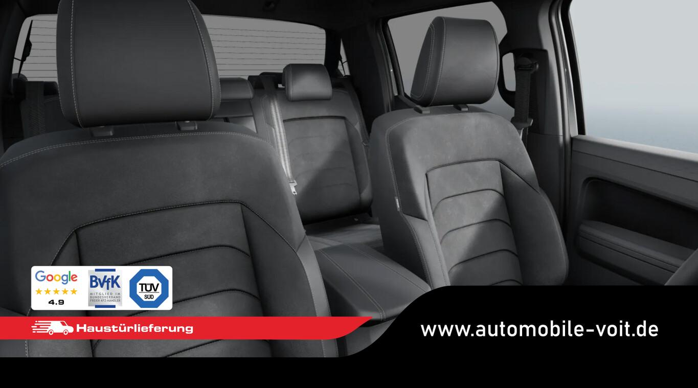 Laderaumjalousie (Roll Cover System elektrisch, Pick-Up) (Laderaumauskleidung Kunststoff / Steckdose 12V im Koffer-/Laderaum), Unterfahrschutz Motor / Verteilergetriebe aus Stahl, für Tank aus Kunststoff, Reifen 255/55 R20, Vorbereitung für VW Connect (Vorbereitung Onlinedienste), LM-Felgen 8x20 (Bendigo, schwarz matt) (Reserverad in Fahrbereifung (Leichtmetall)), Sitz-Paket ArtVelours (Fahrersitz elektrisch) (Sitz vorn links mit Kartentasche / Warnanlage für Sicherheitsgurte vorn und hinten / Sitz vorn links elektr. verstellbar 10-Wege, rechts manuell 8-Wege / Sitzheizung vorn), 2.Sitzreihe Sitzbank (3 Sitzplätze), Anhängersteckdose 13-polig, Antennen-Diversity, Armaturentafel Standard, Aufsatzbügel Styling Bar (Pulverbeschichtet, schwarz), Außenspiegel und Türgriffe außen schwarz unlackiert, Dachhimmel Stoff, schwarz, Diebstahlsicherung für Räder (Felgenschlösser), Digital Cockpit (Farbdisplay 12,3 Zoll), Fahrassistenz-System: Multikollisionsbremse (Multi Collision Brake), Funkschlüssel / Handsender (2), Haltegriff A-Säule, Beifahrerseite, Handschuhfach abschließbar und beleuchtet, Heckklappe abschließbar über Zentralverriegelung (Pick-Up), Heckklappengriff unlackiert schwarz (Pick-Up), Heckscheibe heizbar, Induktionsladeschale für Smartphone (Wireless Charging), Infotainment-System mit Touchscreen-Farbdisplay 12 Zoll für Navigation, Innenraumfilter: Staub- und Pollenfilter, Innenspiegel mit Abblendautomatik, Karosserie/Aufbau: Doppelkabine (Double-Cab), Karosserie/Aufbau: Pick-Up, Kopfstützen hinten (3-fach), Kühlergrill schwarz mit Chromleiste, Ladeflächenbeleuchtung LED (außen), Laderaumabdeckung (Softcover) für Pick-Up, Lautsprecher (6), Leseleuchten vorn und Brillenfach, Leuchtweitenregelung automatisch, Mittelarmlehne hinten, Motor 3,0 Ltr. - 177 kW V6 TDI, Parkbremse elektrisch, Radioempfang digital (DAB+), Radstand Standard, Schalt-/Wählhebelgriff Leder, Schmutzfänger vorn und hinten, Sitzbezug / Polsterung: Stoff Dark Label / ArtVelours, Sonnenblenden mit Spiegel (beleuchtet), Steckdose 120V / 230V in Mittelkonsole hinten und Ladefläche, Stoßfänger hinten schwarz unlackiert, Stoßfänger vorn Wagenfarbe (X-Design), Türgriffe innen verchromt, Umfeldbeleuchtung über Infotainment-System einstellbar, Vorbereitung Online Diebstahl-Warnanlage, Navigationsfunktion, USB-Ladeanschluß (1) am Innenspiegel, Anhängerkupplung (Kugelkopf abnehmbar), Anti-Blockier-System (ABS), Antriebsart: Allradantrieb, Differentialsperre (Hinterachse), Elektron. Stabilitäts-Programm (ESP) mit Bremskraftverstärker elektro-mechanisch, Getriebe Automatik - (10-Stufen), Klimaanlage Climatronic 2-Zonen, Airbag und Knieairbag Fahrer-/Beifahrerseite, Beifahrerairbag abschaltbar, Kindersitzerkennung, Fensterheber elektrisch vorn und hinten, Isofix-Aufnahmen für Kindersitz an Rücksitze (inkl. i-Size-Kindersitze), Schließ-/Startsystem Keyless Access mit Safesicherung, Seitenairbag vorn mit Center-Airbag, Kopf-Airbag-Einheit vorn und hinten, Seitenscheiben hinten und Heckscheibe abgedunkelt, Verzurrösen auf Ladefläche / Laderaumboden, Zentralverriegelung, Fahrassistenz-System: Fahrprofilauswahl, Dachreling schwarz, Frontscheibe Dämmglas, Fahrassistenz-System: Autom. Distanzregelung (ACC inkl. Stop&Go-Funktion), Fahrassistenz-System: Verkehrszeichenerkennung, Rückfahrkamera (Rear View), Notrufsystem, Lenkrad (Leder) mit Multifunktion, Außenspiegel elektr. verstell-, heiz- und anklappbar und Umfeldleuchte, Fahrassistenz-System: Dynamische Fernlichtregulierung (Dynamic Light Assist), Fahrassistenz-System: Fernlichtregulierung (Light Assist), Matrix-LED-Scheinwerfer (IQ.Light), Nebelscheinwerfer LED, Scheibenwischer mit Regensensor, Einparkhilfe vorn und hinten inkl. Auspark-Assistent, Fahrassistenz-System: Notbremsassistent Front assist mit Fußgänger- und Fahrraderkennung, Fahrassistenz-System: Spurhalteassistent (Lane Assist) inkl. Side Assist, Reifendruck-Kontrollsystem, Rußpartikelfilter