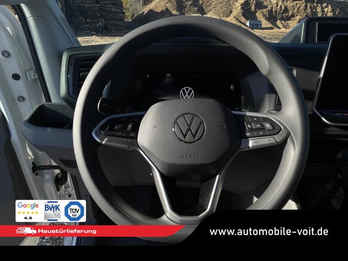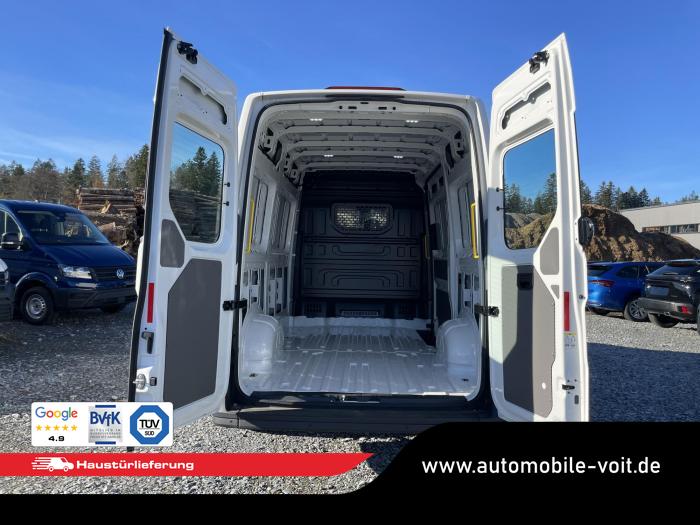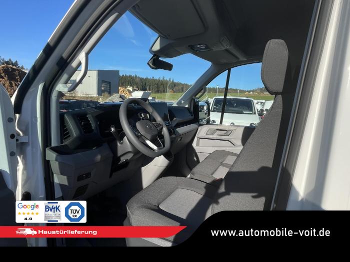 2 USB-C Daten-/Ladebuchsen (Mittelkons.) mit erhöhter Ladeleistung und 2 USB-C Ladebuchsen (Mitte, Frontscheibe), Digitaler Radioempfang (DAB+), Infotainment mit 26 cm (10,4) Touch-Farbdisplay, Mobiltelefonanbindung über Bluetooth mit induktiver Ladefunktion, Radio Composition mit 26 cm (10,4) Touch-Farbdisplay mit 4 Lautsprechern, Beleuchtung im Laderaum: 4 LED-Spots, Halogen-Doppelscheinwerfer, Tagesfahrlicht mit Assistenzfahrlicht u.Coming- u. Leaving-home Funktion automatisch, Verbundglas-Frontscheibe in Wärmeschutzverglasung, Wärmeschutzverglasung, Bodenbelag im Fahrerhaus aus Gummi, Einstieggriffe an den Hecksäulen, Multifunktionslenkrad, Nichtraucherausführung, Schalttafel mit Zusatzkonsole inklusive 1 DIN-Schacht und 4 zusätzlichen Schalterplätzen, Trennwand, mit festem Fenster (mit Schutzgitter), Verzurrösen zur Ladegutsicherung, Heckfenster, beheizbar, Klimaanlage Air Care Climatronic, Ablagenpaket 2: Dachgalerie mit zwei 1 DIN-Schächten und Leseleuchte, Assistenzpaket Basic inkl. Intelligent Speed Assist und Geschwindigkeitsregelanlage, 16'' Stahlräder mit 1.050 kg Traglast, in Silber, Ganzjahresreifen, Reserverad (Stahlfelge) mit Fahrbereifung sowie Bordwerkzeug und Wagenheber, Airbag für Fahrer und Beifahrer, Diebstahl-Alarmanlage mit Back-up-Horn, Innenraumüberwachung und Abschleppschutz (für Crafter mit Trennwand) [7AQ] , Elektronisches Stabilitätsprogramm (ESP) inkl. ABS, ASR, EDS, SWA, Beifahrerdoppelsitzbank rechts mit Ablagefach und klappbarer Lehne mit Ablagetisch, Sitz links, in der 1.Sitzreihe, Sitzheizung, links und rechts, getrennt regelbar, in der 1.Sitzreihe, Fahrzeugzulassung mit einem zulässigen Gesamtgewicht von 3,5 t, Werksgarantie 5 Jahre, 2 12-V-Steckdosen insges. im Fahrerhaus (1 in Schalttafel, bei Linkslenker zusätzlich 2. im linken Sitzgestell) [EU4] , 2 Funkklappschlüssel, Ablenkungs- und Müdigkeitserkennung, Beheizbare Scheibenwaschdüsen vorn, Berganfahrassistent, Digital Cockpit Pro, Einparkhilfe im Front- und Heckbereich, Elektrische Klemmleiste, Front Assist mit Warnen und Bremsen auf Fahrzeuge, Fußgänger und Radfahrer, Geschwindigkeitsregelanlage (GRA) elektronisch, Kraftstofftank mit 75 l Tankvolumen, Reifendruck-Kontrollsystem (direkt messend), Scheibenwischer-Intervallschaltung mit Licht- und Regensensor, Seitenwindassistent, Spurhalteassistent Lane Assist, Vorbereitung Digitaler Tachograf (Smart TCO) für die Nachrüstung eines Digitalen Tachografen von Stoneridge, Zentralverriegelung mit schlüssellosem Startsystem Keyless Start, ohne Safesicherung [4I7] , Zulässiges Gesamtgewicht 3.500 kg, Motor-Start-Stopp-System mit Bremsenergie-Rückgewinnung, Außenspiegel links, konvex, mit integrierter LED-Blinkleuchte und Weitwinkelbereich, Außenspiegel rechts, konvex, mit integrierter LED-Blinkleuchte und Weitwinkelbereich, Außenspiegel, elektrisch einstell- und beheizbar, Heckflügeltüren mit Fensterausschnitten, Hochdach, außen in Wagenfarbe lackiert, Scharniere für Heckflügeltüren mit vergrößertem Öffnungswinkel (max. 270°), Schiebetür, rechts, im Lade-/Fahrgastraum, Stoßfänger vorne in Grau, Vorbereitung für Anhängevorrichtung (inkl. Gespannstabilisierung) mit Kabelsatz und Steuergerät, EU-Fahrzeug mit Tageszulassung