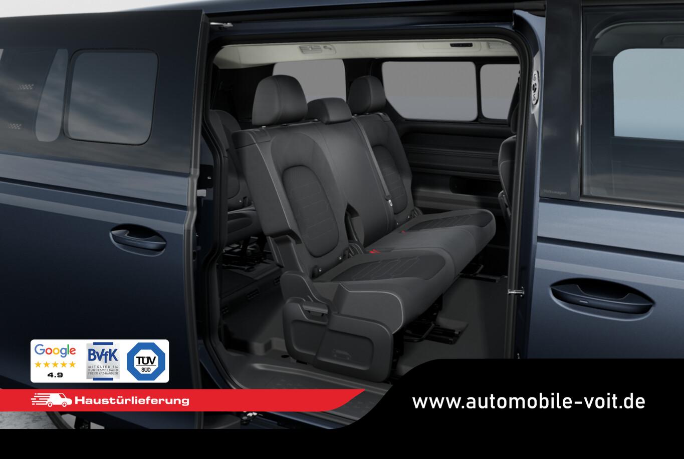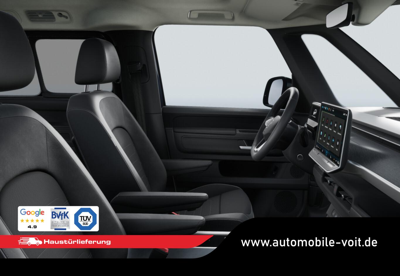 Ausstattungs-Paket: Easy Open & Close Plus (Fenster im Lade-/FG-Raum: - schiebbar, vorn links / Fenster im Lade-/FG-Raum: - schiebbar, vorn rechts / Schließ-/Startsystem Keyless Advanced mit Safesicherung / Umfeldleuchte in Heckklappe / Heckklappe elektr. betätigt Easy Open (öffnen + schliessen, sensorgesteuert) / Schiebetür Lade-/Fahrgastraum links elektr. betätigt Easy Open (sensorgesteuert) / Schiebetür Lade-/Fahrgastraum rechts elektr. betätigt Easy Open (sensorgesteuert)), Interieur-Paket Style Plus (Lenkrad schwarz) (Ambiente-Beleuchtung (30 Farben) / Sitzbezug / Polsterung: Stoff Seaqual / Sitze im Fahrerhaus: Fahrer- und Beifahrersitz Komfort / Sitze im Fahrerhaus: Fahrer- und Beifahrersitz mit Armlehnen beidseitig / Sitze vorn mit Massagefunktion / Sitze im Fahrerhaus: Fahrer- und Beifahrersitz elektr. verstellbar mit Memory, Einstiegshilfe links / Sitze im Fahrerhaus: Fahrer- und Beifahrersitz heizbar / Lenkrad heizbar (Leder) mit Multifunktion), Ausstattungs-Paket: Komfort-Paket Plus (Außenspiegel schwarz lackiert und Türgriffe außen in Wagenfarbe / Gepäckraum-Abtrennung / Trennnetz / Gepäckraumabdeckung / Rollo / Innenspiegel mit Abblendautomatik / Mittelkonsole vorn variabel (ID.Buzz Box) / Multiflex-Board / Scheibenwaschdüsen beheizt / Multimedia-Schnittstelle 2 x USB (Typ C) vorn, USB-Ladeanschluß (Typ C) 1 x vorn, hinten / Klimaanlage Climatronic 3-Zonen inkl. Fondbedienung / Sitze im Fahrerhaus: Fahrer- und Beifahrersitz heizbar / Lenkrad heizbar (Leder) mit Multifunktion / Regensensor), LM-Felgen vorn/hinten: 8x19 / 9x19 (Tilburg, schwarz glanzgedreht), Fahrassistenz-Paket Plus inkl. Travel Assist und Umgebungsansicht inkl. Rückfahrkamera (Schließ-/Startsystem Keyless Advanced mit Safesicherung / Türgriffschalen außen beleuchtet / Rückfahrkamera mit 360° Umgebungsansicht (Area View) / Lenkrad heizbar (Leder) mit Multifunktion / Fahrassistenz-System: Memoryfunktion für Park Assist / Fahrassistenz-System: Parklenkassistent (Park Assist) inkl. Einparkhilfe vorn und hinten / Fahrassistenz-Paket: Travel Assist, Emergency Assist und Lane Assist / Diebstahl-Warnanlage + Innenraumüberwachung / Abschleppschutz + Back-up-Horn), Ausstattungs-Paket: Design (Leuchtweitenregelung automatisch und Kurvenlicht dynamisch / Lichtleiste zwischen Scheinwerfer / Pedale Edelstahl / Fahrassistenz-System: Dynamische Fernlichtregulierung (Dynamic Light Assist) / Heckleuchten LED, Blinkleuchten dynamisch / Matrix-LED-Scheinwerfer (IQ.Light)), Sitz-Paket: 7-Sitzer (Sitzausstattung: 7-Sitzer / Sitze im Lade-/FG-Raum: 1.Reihe, 3er-Sitzbank, geteilt/klappbar + 2.Reihe, 2 Einzelsitze, herausnehmbar / Zul. Gesamtgewicht 3,34 t / Klimaanlage 2-Zonen mit 2 Zuheizer), Ladekabel mit Schukostecker (10 A, Mode 2), Ladekabel mit Typ 2-Stecker (32 A, Mode 3), Fahrassistenz-System: Parklenkassistent (Park Assist Pro) inkl. Einparkhilfe in Verbindung mit Onlinedienste, Diebstahl-Warnanlage + Innenraumüberwachung / Abschleppschutz, Elektron. Stabilitäts-Programm (ESP), Garantieverlängerung: 3 Jahre oder 100.000 km, Isofix-Aufnahmen für Kindersitz am Beifahrersitz, Navigation in Verbindung mit dem Smartphone (über Apple Carplay / Android Auto /...), Radschrauben mit Diebstahlsicherung, Scheibenwischer mit Intervallschaltung, Sommerreifen hinten 255/50 R19, Sommerreifen vorn 235/55 R19, Akustischer Fußgängerschutz, Außensound (e-sound), Audiosystem Ready 2 Discover (Touchscreen-Farbdisplay 12,9 Zoll), Audiosystem: Vorbereitung für spätere Freischaltung Navigationsfunktion Discover Pro, Außenspiegel konvex, links und rechts, Bidirektionales Laden (DC), Bodenbelag: Teppich verstärkt, DC / DC Wandler 3 kW, Elektromotor 210 kW (cont. 89 kW), Fahrassistenz-System: Ausweich-Assistent und Abbiege-Assistent, Funkschlüssel (2), Fußraumbeleuchtung vorn und hinten, Heckklappe mit Verglasung, Heckscheibenwischer mit Intervallschaltung, HV-Batterie 86 kWh netto, Innenausstattung: Bedienelemente, Lenkrad und Einfassung Instrumente schwarz, Innenleuchten im Lade-/FG-Raum: LED (Gepäckraum), Insassen-Schutzsystem proaktiv, Intelligent Speed Assist inkl. Geschwindigkeitsbegrenzer, Karosserie/Aufbau: Bus, Lautsprecher (9), Linkslenker, Mobile Online Dienste App-Connect inkl. App-Connect Wireless (Apple CarPlay, Android Auto), Nichtraucher-Paket, Radioempfang digital (DAB+), Radstand 3239 mm, Radstand lang, Schnellladevorrichtung (CCS-Ladedose), Sonnenblenden mit Spiegel (beleuchtet), Steckdose (12V-Anschluß) im Laderaum, Stoßfänger in Wagenfarbe, Umfeldbeleuchtung seitlich mit Projektionsfunktion, Vorbereitung für Alkohol-Wegfahrsperre (Alcolock), Vorbereitung Onlinedienste We Connect (Plus) oder VW Connect (Plus) und Online-Update-Fähigkeit, Warnanlage für Sicherheitsgurte vorn und hinten, Mobiltelefon Schnittstelle Bluetooth, Mobiltelefon Schnittstelle mit kabelloser Ladefunktion, Anti-Blockier-System (ABS), Antriebsart: Heckantrieb, Getriebe für Elektrofahrzeug, Airbag Fahrer-/Beifahrerseite, Beifahrerairbag abschaltbar, Isofix-Aufnahmen für Kindersitz an Rücksitz, Seitenairbag, Kopfairbag und Center-Airbag vorn, Wärmeschutzverglasung seitlich / hinten, Fahrassistenz-System: Autom. Distanzregelung (ACC inkl. Stop&Go-Funktion), Fahrassistenz-System: Verkehrszeichenerkennung, Multifunktionskamera / Frontkamera, Notrufsystem, Servolenkung elektro-mechanisch, geschwindigkeitsabhängig, Außenspiegel elektr. verstell-, heiz- und anklappbar mit Spiegelabsenkung, Fahrassistenz-System: Ablenkungs- und Müdigkeitserkennung, Fahrassistenz-System: Notbrems-Assistent (Front Assist) inkl. Fußgänger- und Fahrraderkennung, Fahrassistenz-System: Spurhalteassistent (Lane Assist), Fahrassistenz-System: Spurwechselassistent (Side Assist) mit Auspark-Assistent und Ausstiegswarnung, Reifenkontroll-Anzeige