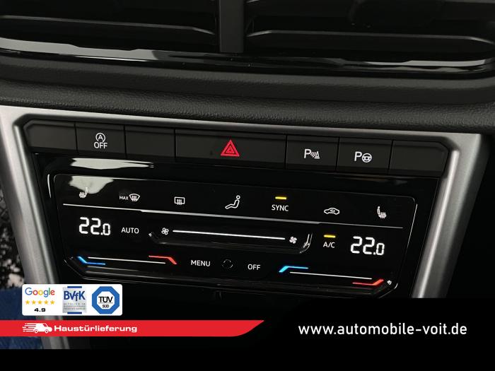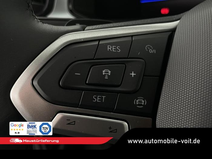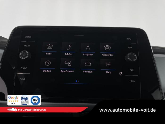 2 USB-C-Schnittstellen vorn, 2 USB-C-Ladebuchsen an der Mittelkonsole hinten Ladeleistung bis zu 45 W, 6 Lautsprecher, App-Connect Wireless für Apple CarPlay und Android Auto, DAB (digitaler Radioempfang), Infotainment-Paket Ready 2 Discover, Sound-System (12-Kanal-Verstärker, Subwoofer und 6 Lautsprecher), Telefonschnittstelle mit induktiver Ladefunktion, Vorbereitet für VW Connect und VW Connect Plus, Vorbereitet für spätere Freischaltung: Navigationsfunktion Discover Media, Fahrlichtschaltung automatisch, mit LED-Tagfahrlicht sowie Coming home- und Leaving home-Funktion, LED Scheinwerfer, LED-Rückleuchten dunkelrot, Umfeldbeleuchtung mit Logoprojektion, Fensterheber elektrisch, Frontscheibe in Verbundsicherheitsglas, wärmedämmend, Wärmeschutzverglasung grün, seitlich und hinten, Dekoreinlagen Pewter matt für Instrumententafel, Mittelkonsole und Türverkleidungen vorn, Gepäckraumboden in 2 Höhen einstellbar, für ebene Ladefläche, Innenspiegel automatisch abblendend, Make-up-Spiegel beleuchtet in den Sonnenblenden, Mittelarmlehne vorn, Multifunktionslederlenkrad mit Schaltwippen, Raucher-Paket, Schublade unter dem rechten Vordersitz, Klimaanlage Air Care Climatronic mit Aktiv-Kombifilter und 2-Zonen-Temperaturregelung, Fahrerassistenzpaket, Winterpaket, 16 Leichtmetallfelgen Chester, Tire Mobility Set: 12-Volt-Kompressor und Reifendichtmittel, Airbag für Fahrer und Beifahrer, mit Beifahrerairbag-Deaktivierung, Elektronisches Stabilisierungsprogramm mit Gegenlenkunterstützung, ABS, ASR, EDS, MSR und Gespannstabilisierung, ISOFIX-Halteösen (Vorrichtung zur Befestigung von 2 Kindersitzen auf der Rücksitzbank), Kopfairbagsystem für Front- und Fondpassagiere inkl. Seitenairbags vorn, Notruf-Service, Laufzeit 10 Jahre ab Erstauslieferung, Voraussetzung: Verfügbarkeit benötigter Mobilfunknetze, Proaktives Insassenschutzsystem in Verbindung mit Front Assist, Servolenkung elektromechanisch, geschwindigkeitsabhängig geregelt, Wegfahrsperre elektronisch, Komfortsitze vorn, Rücksitzlehne asymmetrisch geteilt umklappbar, mit Mittelarmlehne, Sitzmittelbahnen der Vordersitze und der äußeren Rücksitzplätze in Stoff Life, Vordersitze beheizbar, Vordersitze mit Höheneinstellung, Ablenkungs- und Müdigkeitserkennung, Automatische Distanzregelung ACC stop & go, mit Geschwindigkeitsbegrenzer, Berganfahrassistent, Digital Cockpit, mehrfarbig, verschiedene Info-Profile wählbar, Elektronische Parkbremse inkl. Auto-Hold-Funktion, Fernlichtassistent Light Assist, Fußgängererkennung, Notbremsassistent Front Assist (für automatische Distanzregelung ACC bis 210 km/h), Parklenkassistent Park Assist inkl. Einparkhilfe, Regensensor, Reifenkontrollanzeige, Rückfahrkamera Rear View, Spurhalteassistent Lane Assist, Verkehrszeichenerkennung, Zentralverriegelung ohne SAFE-Verriegelung, mit Funkfernbedienung und 2 Funkklappschlüsseln, Start-Stopp-System mit Bremsenergie-Rückgewinnung, Außenspiegel elektrisch einstell-, anklapp-, beheizbar, mit Memory-Funktion, Außenspiegelgehäuse in Dachfarbe, Dachreling schwarz, Stoßfänger in Wagenfarbe, mit Chromelementen, Türunterteile schwarz, EU-Fahrzeug mit Tageszulassung