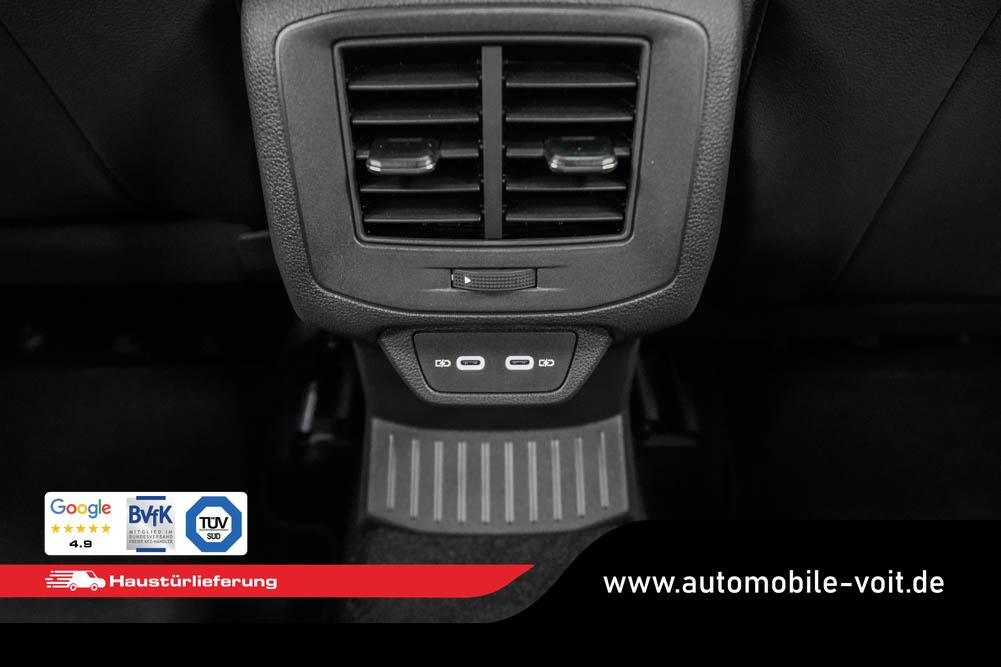Beifahrersitz höhenverstellbar, Fahrersitz höhenverstellbar, Sport-Lederlenkrad, Lendenwirbelstütze vorne, Mittelarmlehne vorne, Sitzbezug Stoff, Sportsitze, geteilt umklappbare Rücksitzlehne, Lenkrad höhenverstellbar, Ambiente-Beleuchtung, Multifunktionslenkrad, Isofix, Beifahrersitz umklappbar, abgedunkelte Scheiben, 19 Zoll Alufelgen Misano, Dachreling schwarz, Außenspiegel in Schwarz, Türgriffe in Wagenfarbe, ABS, Außenspiegel elektrisch einstell-/anklappbar, Fensterheber elektrisch, Klimaautomatik, Kopfairbags, Seitenairbags, Servolenkung, Sitzheizung, ESP, Wegfahrsperre, Zentralverriegelung mit Funk, Außenspiegel beheizbar, Beifahrerairbag, Fahrerairbag, Parkpilot hinten, Parkpilot vorne, Reifendruckkontrolle, Regensensor, Lichtsensor, Digital Cockpit, Anhängekupplung abnehmbar, Tempomat Abstand ACC, Fernlichtassistent, Notbremsassistent, Spurhalteassistent, Verkehrszeichenerkennung, LED PLUS-Scheinwerfer, LED-Tagfahrlicht, Pannenset, Rückfahrkamera, Park-Assistent, Panoramadach, Elektrische Heckklappe Virtual Pedal, Keyless Access, StartStopSystem, Winterpaket, Innenspiegel automatisch abbl., Müdigkeitswarnsystem, Notrufsystem, Schaltwippen, Geschwindigkeitsbegrenzer, Android Auto, Apple Carplay, Freisprecheinrichtung, Induktionsladestation, USB Typ-C, Radio DAB, Bluetooth inkl. Handykopplung, Bordcomputer, Navigation Media, App-Connect Wireless, LED-Rückleuchten, Dachhimmel schwarz, Black Style Paket, 4 Jahre bis max. 80.000km Herstellergarantie,