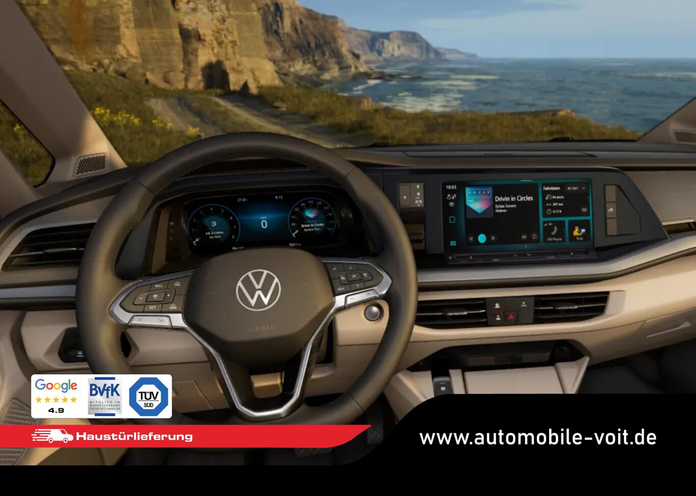 Fahrassistenz-Paket Advanced (Service-System: Intelligente Fahrzeugvernetzung (Car2X) / Fahrassistenz-System: Autom. Distanzregelung (ACC inkl. Stop&Go-Funktion) / Fahrassistenz-Paket: Travel Assist, Emergency Assist und Lane Assist / Fahrassistenz-System: Spurwechselassistent (Side Assist) mit Auspark-Assistent und Ausstiegswarnung), Ausstattungs-Paket: Top (Heckleuchten dunkel getönt / Leuchtweitenregelung automatisch und Kurvenlicht dynamisch / Schlechtwetter-Licht / Fahrassistenz-System: Dynamische Fernlichtregulierung (Dynamic Light Assist) / Matrix-LED-Scheinwerfer (IQ.Light)), Anhängerkupplung klappbar (elektr. Entriegelung), Markise (Gehäuse und Markisenleisten schwarz, links), Schließ-/Startsystem Keyless Advanced mit Safesicherung, Diebstahl-Warnanlage + Innenraumüberwachung / Abschleppschutz + Back-up-Horn, Insassen-Schutzsystem proaktiv, Adaptive Cruise Control (ACC), Fahrassistenz-System: Spurwechselassistent (Side Assist) mit Ausstiegswarnung, Fahrassistenz-System: Toter-Winkelassistent, LM-Felgen 16 Zoll, Navigation in Verbindung mit dem Smartphone (über Apple Carplay / Android Auto /...), Reifen: 215/65 R16, Reifendruck-Kontrollsystem, Schiebefenster links, rechts, Zentralverriegelung mit Fernbedienung, Aufstelldach manuell betätigt mit Bugfenster und Frontöffnung, Faltenbalg grau, Außenspiegel schwarz lackiert, Diebstahlsicherung für Räder (Felgenschlösser), Digital Cockpit Pro (Instrumentenanzeige Digital), Fahrassistenz-System: Ausweich-Assistent und Abbiege-Assistent, Funkschlüssel (2), Heckklappe mit Verglasung und Zuziehhilfe, Innenbeleuchtung an Aufstelldach, Heckklappe und Sommerküche (Coast / Ocean), Karosserie/Aufbau: Motor Caravan, Kraftstofftank: 58 Ltr., Lautsprecher (8), Mobile Online Dienste App-Connect inkl. App-Connect Wireless (Apple CarPlay, Android Auto), Motor 2,0 Ltr. - 110 kW TDI, Radioempfang digital (DAB+), Radstand 3124 mm, Schiebetür Lade-/Fahrgastraum links mit Zuziehhilfe, Schiebetür Lade-/Fahrgastraum rechts mit Zuziehhilfe, Sitzbezug / Polsterung: Stoff Melange, Sommerküche mit Außenklapptisch und 230V Steckdose, Dachstaufach, in Raven / Frizo Sandwick, Steckdose 230V (mit Einspeisung für Batterieaufladung), Steckdose 230V im Fahrerhaus, Verdunkelungssystem: Rollos und Thermomatten, Warnanlage für Sicherheitsgurte vorn und hinten, Zierleiste zwischen Scheinwerfern: schwarz lackiert und Chromleisten, Multimedia-Schnittstelle 2 x USB vorn und 4 x USB-Ladeanschluß Fahrgastraum (Typ C), Antriebsart: Frontantrieb, Getriebe 7-Gang - Doppelkupplungsgetriebe DSG, Klimaanlage Climatronic 3-Zonen inkl. Fondbedienung, Standheizung für Dauerbetrieb und kraftstoffbetriebene Zusatzheizung, Airbag Fahrer-/Beifahrerseite, Beifahrerairbag abschaltbar, Seitenairbag / Kopfairbag / Center-Airbag vorn und Kopfairbag hinten, Sitze im Fahrerhaus: Armlehnen beidseitig Fahrer- und Beifahrersitz und elektr. Lendenwirbelstütze, Sitze im Fahrerhaus: Fahrer- und Beifahrersitz heizbar, Sitze im Fahrerhaus: Fahrersitz drehbar, Notrufsystem, Lenkrad (Leder) mit Multifunktion und Schaltfunktion, Regensensor, Tagfahrlicht und Assistenzfahrlicht mit Coming Home / Leaving Home, Fahrassistenz-System: Ablenkungs- und Müdigkeitserkennung, Fahrassistenz-System: Notbrems-Assistent (Front Assist) inkl. Fußgänger- und Fahrraderkennung, Start/Stop-Anlage Motor