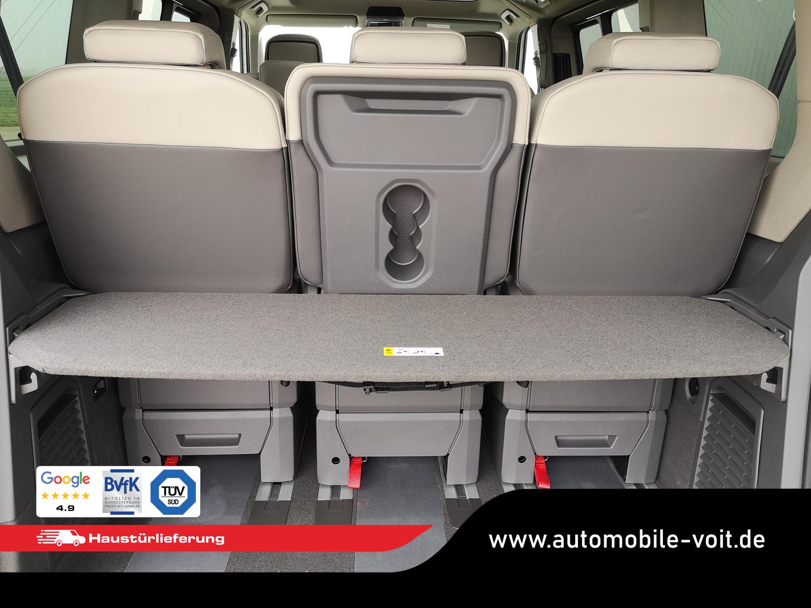 IQ.Light - LED-Matrix-Scheinwerfer, Automatische Distanzregelung ACC mit ""stop & go"" und Geschwindigkeitsbegrenzer, Schiebetür links und rechts sowie Heckklappe mit Zuziehhilfe, Spurhalteassistent ""Lane Assist"", Spurwechselassistent ""Side Assist"" inkl. ""Blind Spot Detection"" (Totwinkelerkennung im Spiegel), Spurhalteassistent ""Lane Assist"", Spurwechselassistent ""Side Assist"" inkl. ""Blind Spot Detection"" (Totwinkelerkennung im Spiegel), Standklima/Heizung: Steuerung im Infotainment-System und über die Volkswagen App (Vertrag von VW Connect Plus erforderlich). Bei gestecktem Ladestecker wird das Fahrzeug etwa 30 Minuten lang klimatisiert bzw. geheizt, bei nicht gestecktem Ladestecker verkürzt sich die Laufzeit der Klimatisierung auf etwa 10 Minuten, Werksanschlussgarantie auf 5 Jahre / max. 100.000 km.