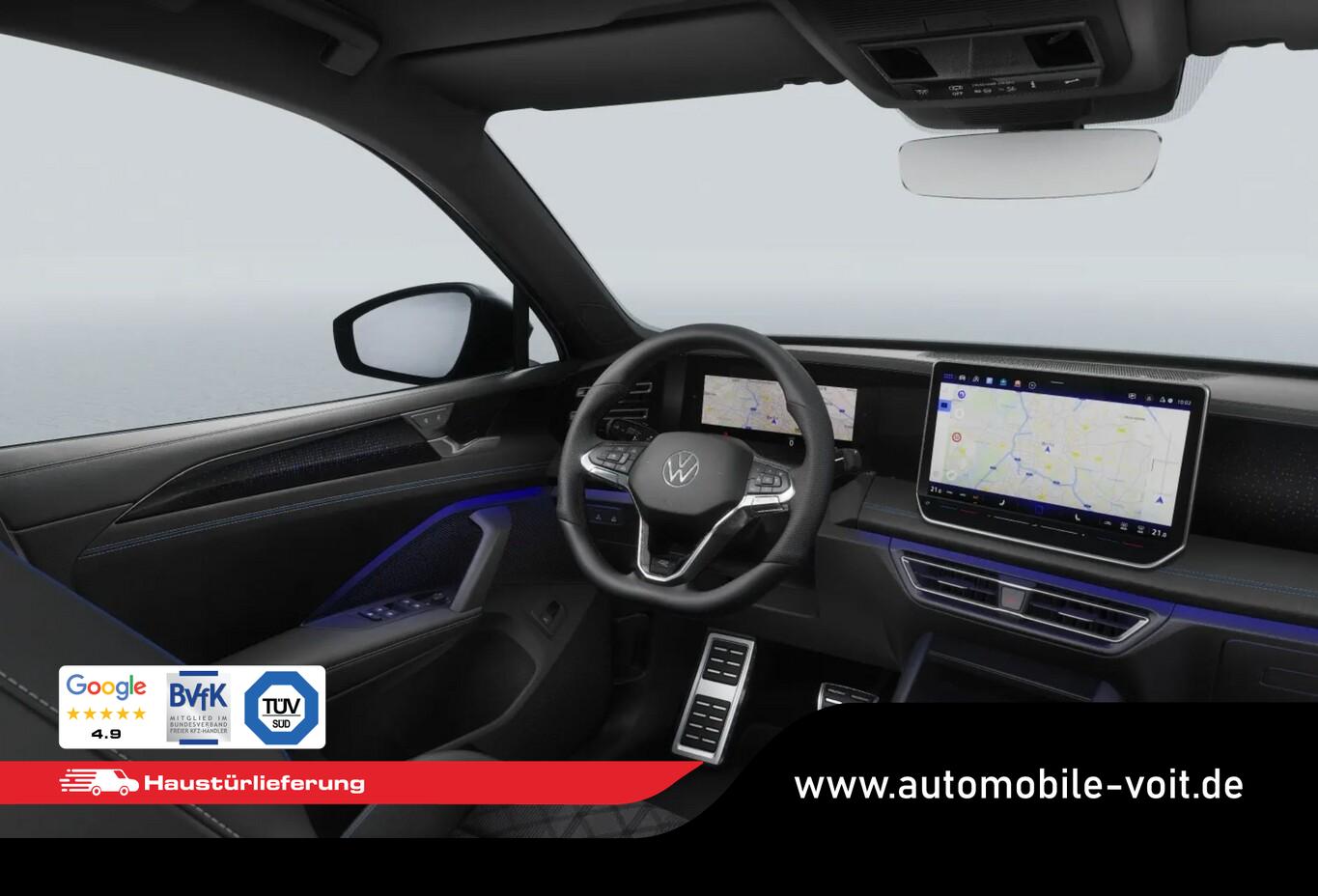 Infotainment-Paket Discover (Mobiltelefon Schnittstelle Comfort mit kabelloser Ladefunktion für 2 Geräte (15 Watt) / Multimedia-Schnittstelle 2 x USB (Typ C) vorn und 2 x USB-Ladeanschluß (Typ C) Mittelkonsole hinten (45 W) / Navigationsfunktion / Sprachassistent IDA und elektronische Sprachverstärkung), Anhängerkupplung mit elektr. Entriegelung, schwenkbar, inkl. Anhänger-Rangierassistent (Trailer Assist), Design-Paket Black Style (Fensterzierleisten schwarz glänzend / Innenausstattung: Designelemente in Schwarz / Dark Anodized / Seitenscheiben und Heckscheibe Verbundglas, hinten abgedunkelt / Stoßfänger R-Line mit Zierleisten schwarz glänzend / Dachreling schwarz), LM-Felgen 8,5x20 (York, schwarz) (Diebstahlsicherung für Räder (Felgenschlösser)), Matrix-LED-Scheinwerfer (IQ.Light HD) (Fahrassistenz-System: Dynamische Fernlichtregulierung (Dynamic Light Assist) / Heckleuchten LED in 3D-Optik, Blinkleuchten dynamisch), Außenspiegel elektr. verstell-, heiz- und anklappbar, mit Beifahrerspiegelabsenkung, Bluetooth-Schnittstelle, Einparkhilfe vorn und hinten, Fahrassistenz-System: Emergency Assist, Fahrassistenz-System: Parklenkassistent (Park Assist Pro), Fahrassistenz-System: Travel Assist, Freisprecheinrichtung Bluetooth, Isofix-Aufnahmen für Kindersitz an Beifahrersitz und Rücksitze außen, Lenkrad (Sport/Leder) mit Multifunktion, Schließ-/Startsystem Keyless Access, Sommerreifen 255/40 R20, Steckdose (12V-Anschluss) vorn, Umgebungsansicht Area View inkl. Rückfahrkamera Rear View, 3-Punkt-Sicherheitsgurt hinten mitte, Ambiente-Beleuchtung (30 Farben, Armaturenbrett und Türverkleidung, Dekoreinlagen durchleuchtet), App-Connect Wireless (Apple CarPlay, Android Auto), Außenspiegel mit Umfeldleuchte und Projektionsfunktion, Dachhimmel Stoff, schwarz, Digital Cockpit PRO (Instrumentenanzeige digital), Einstiegsleisten vorn (Aluminium), Fußgänger-Schutzmaßnahmen erweitert, Infotainment-System mit Touchscreen-Farbdisplay 12,9 Zoll, Innenspiegel mit Abblendautomatik, Karosserie: 5-türig, Kopfstützen hinten (3-fach), Lautsprecher (8), LED Lichtleiste zwischen Scheinwerfer und Türgriffschalen außen beleuchtet, Lendenwirbelstützen vorn, pneumatisch verstellbar, Mobile Online Dienste Vorbereitung We Connect und We Connect Plus, Motor 2,0 Ltr. - 142 kW TDI, Parkbremse elektrisch mit Auto-Hold-Funktion, Pedale Edelstahl, Radioempfang digital (DAB+), Radstand Standard, SCR-System (AdBlue-Technologie), Sicherheitsgurte hinten außen mit Gurtstraffer, Sitzbezug / Polsterung: Stoff R-Line, Sitze vorn höhenverstellbar, ErgoActive Sitz links, Sitze vorn mit Massagefunktion, Steckdose 12V im Koffer-/Laderaum, VW Logo vorn / hinten, Leiste zwischen Scheinwerfer / Rückleuchten beleuchtet mit Animation, Anti-Blockier-System (ABS), Adaptive Fahrwerksregelung (DCC Pro) inkl. Fahrprofilauswahl, Antriebsart: Allradantrieb, Elektron. Stabilitäts-Programm (ESP) mit Bremskraftverstärker elektro-mechanisch, Getriebe 7-Gang - Doppelkupplungsgetriebe DSG, Klimaanlage Air Care Climatronic 3-Zonen inkl. Fondbedienung und Aktiv-Kombi-Filter, Airbag Fahrer-/Beifahrerseite, Beifahrerairbag abschaltbar, Mittelarmlehne vorn, Rücksitz geteilt / klappbar, verschiebbar, Mittelarmlehne und Durchladefunktion, Seitenairbag und Kopfairbag vorn und hinten, Center-Airbag vorn, Sitze: Sport-Komfortsitze vorn, Zentralverriegelung, Frontscheibe Verbundglas, wärmedämmend, Kofferraumdeckel / Heckklappe elektr. betätigt (Schließen, sensorgesteuert öffnend, Fernentriegelung), Fahrassistenz-System: Autom. Distanzregelung (ACC inkl. Stop&Go-Funktion), Fahrassistenz-System: Berganfahr-/Abfahr-Assistent, Fahrassistenz-System: Verkehrszeichenerkennung, Notrufsystem, Abbiege- und Allwetterlicht / Schlechtwetter-Licht, Automatische Fahrlichtschaltung mit Leaving Home / Coming-Home-Lichtfunktion, Tagfahrlicht LED, Leuchtweitenregelung automatisch und Dynamisches Kurvenlicht, Scheibenwischer mit Regensensor, Fahrassistenz-System: Ablenkungs- und Müdigkeitserkennung, Fahrassistenz-System: Notbremsassistent Front assist mit Fußgänger- und Fahrraderkennung, Fahrassistenz-System: Spurhalteassistent (Lane Assist), Fahrassistenz-System: Spurwechselassistent (Side Assist) mit Auspark-Assistent und Ausstiegswarnung, Reifendruck-Kontrollsystem, Insassen-Schutzsystem proaktiv, Rußpartikelfilter, Start/Stop-Anlage mit Rekuperation